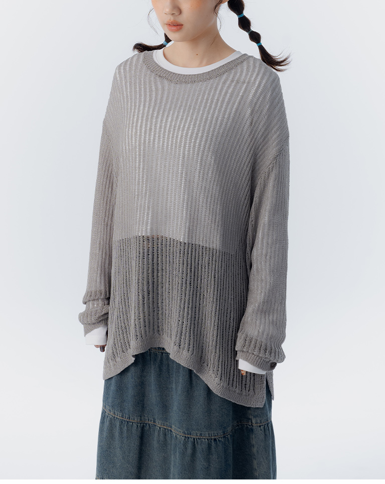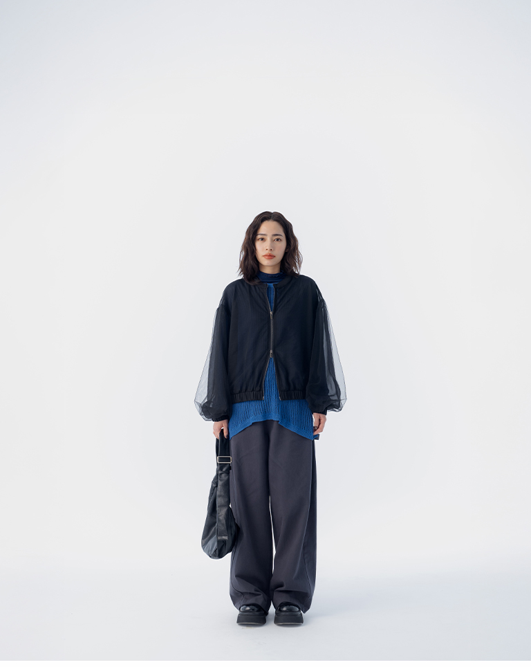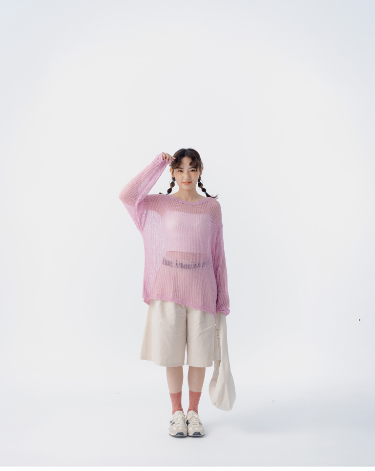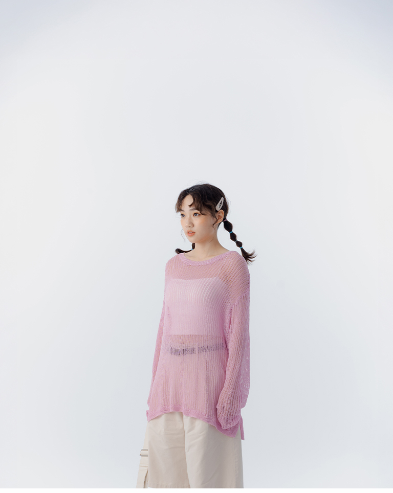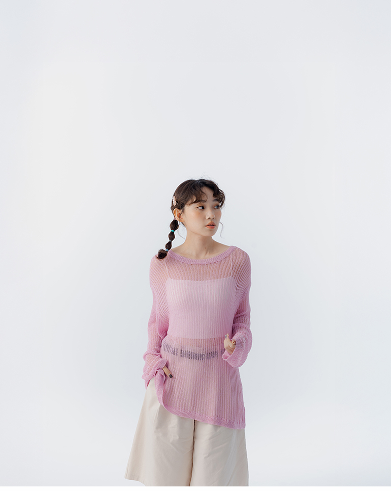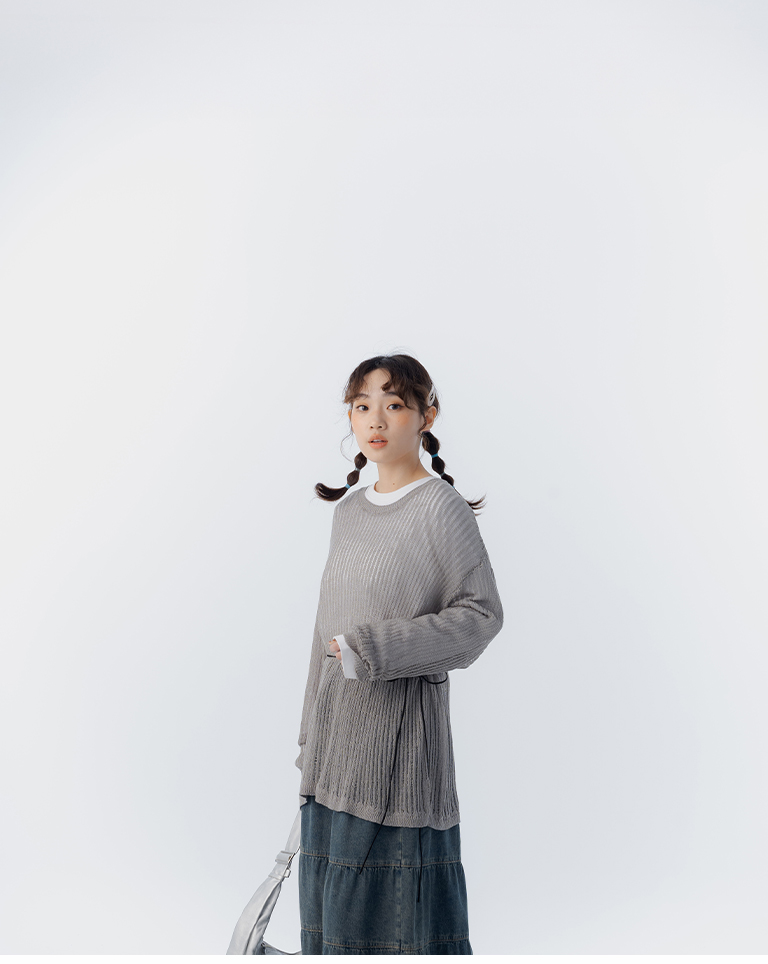 S~L身形實測!分尺寸皺皺木耳邊透膚高領長袖上衣