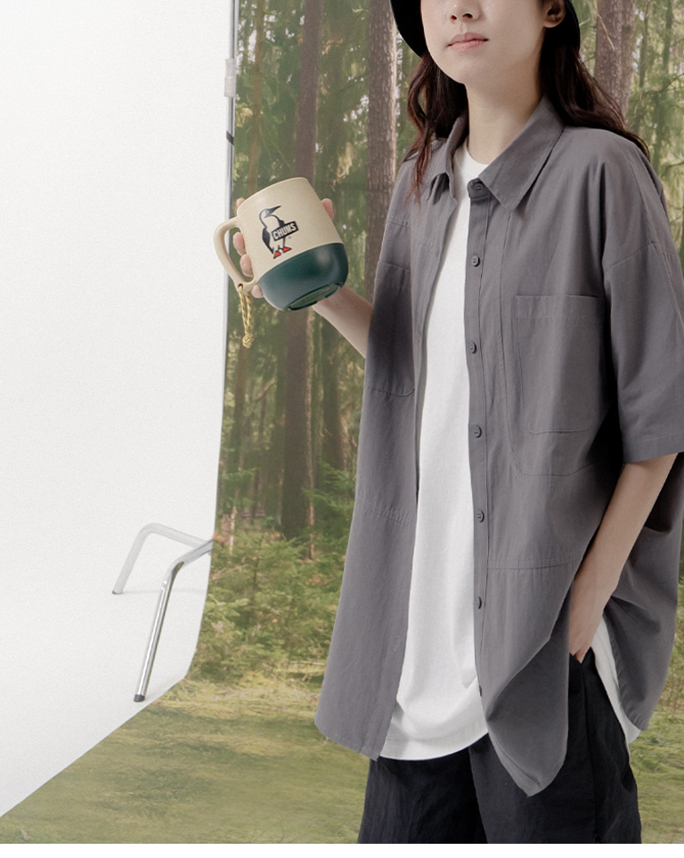 拼接設計口袋短袖襯衫 兩色售 1/2