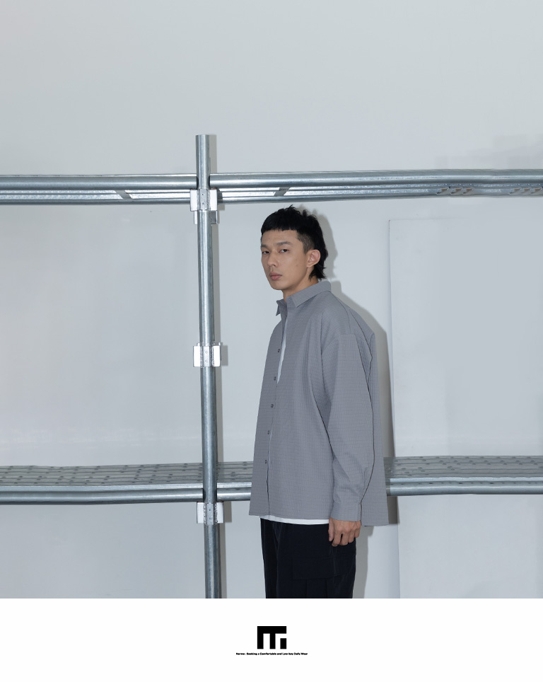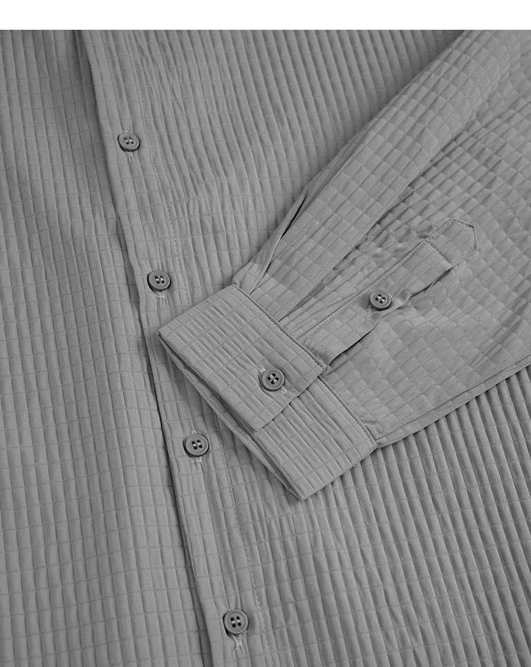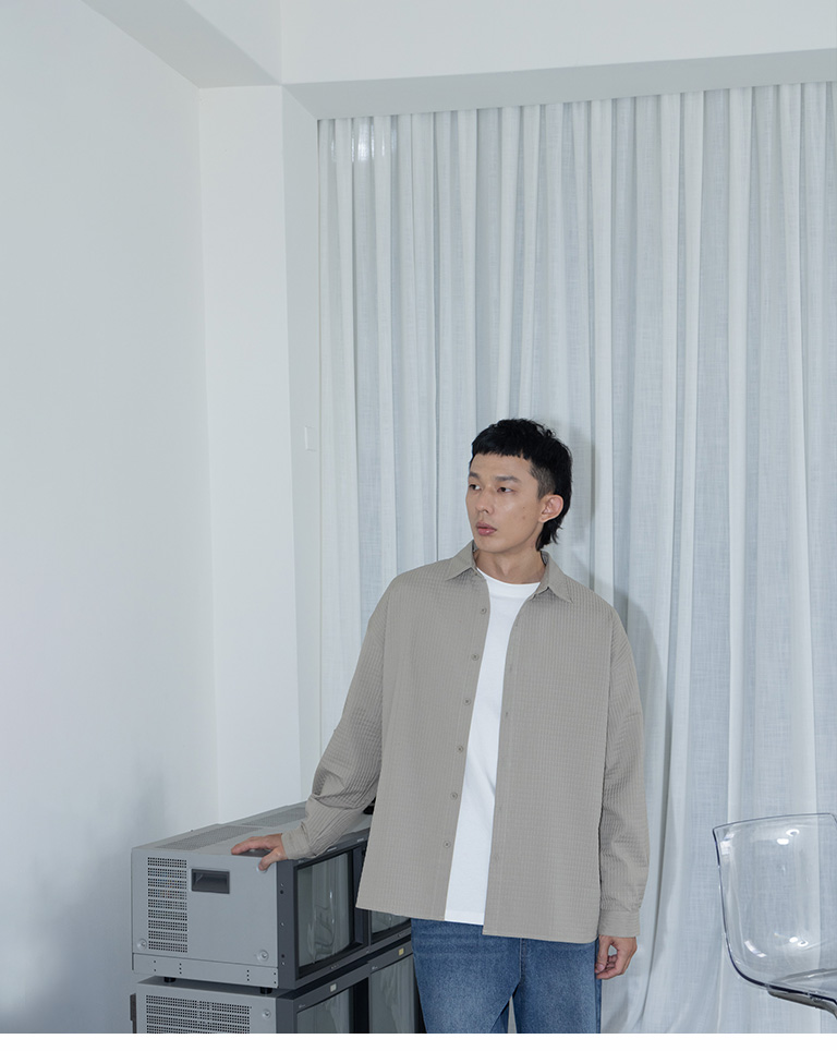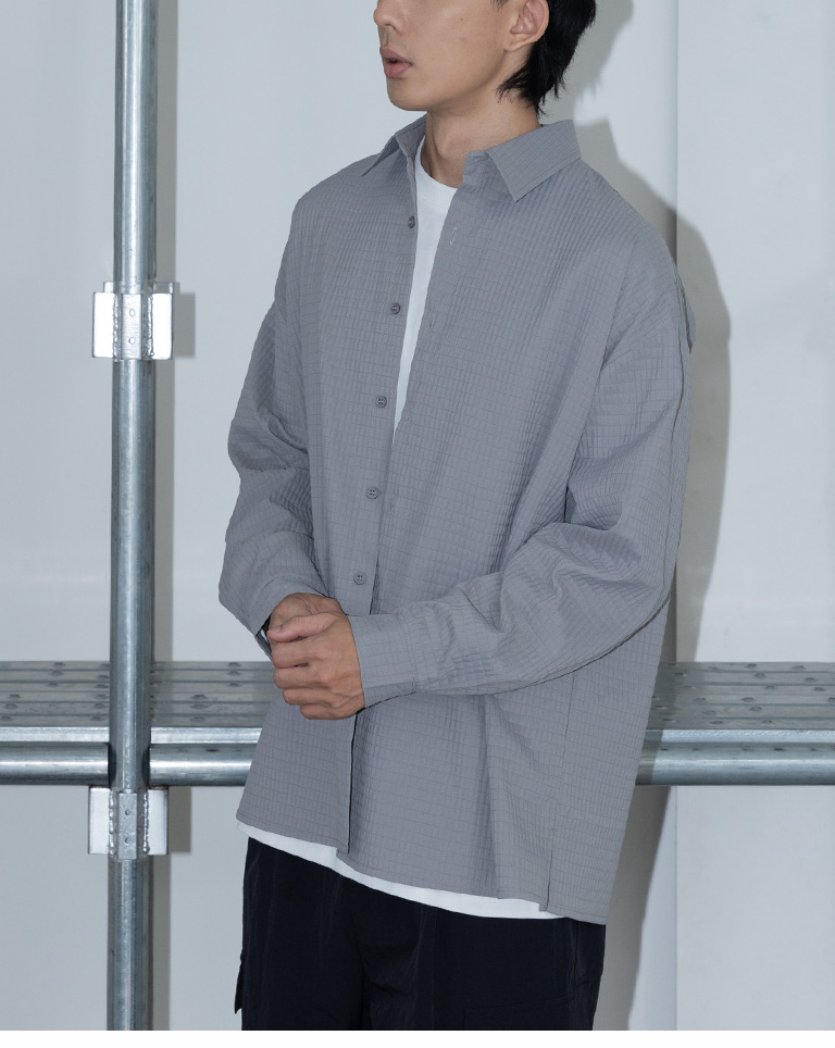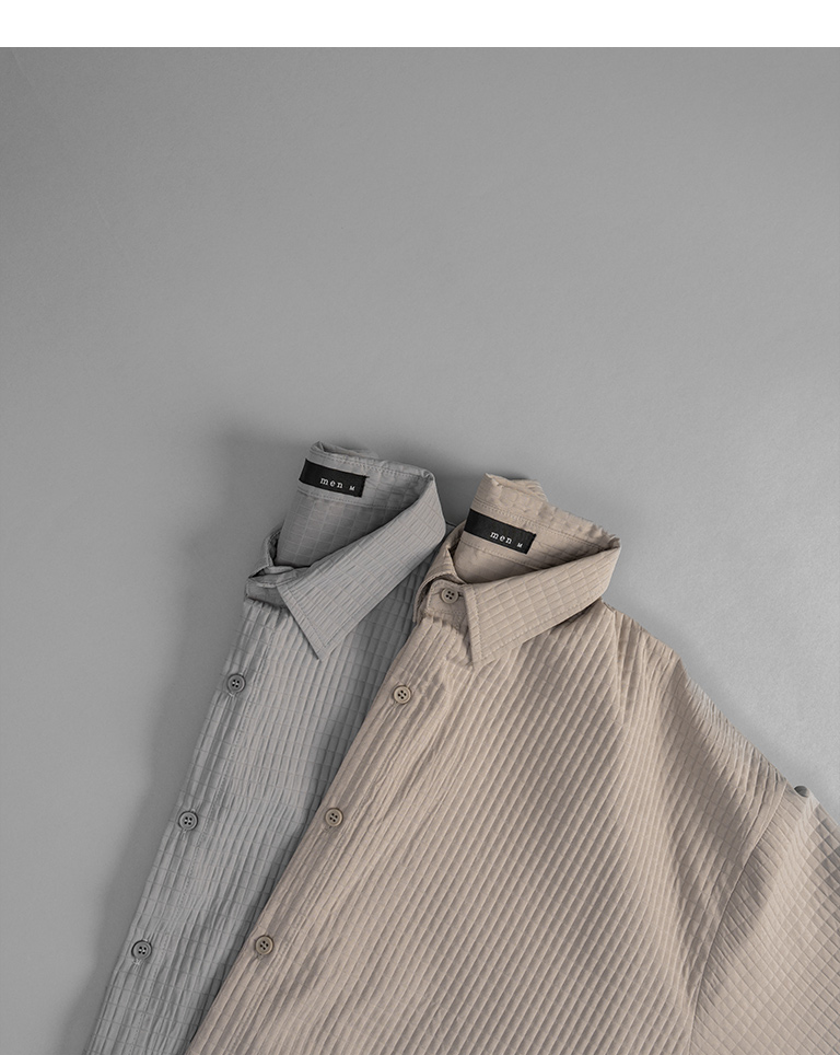 格紋紋理造型素面襯衫 兩色售 M/L/XL