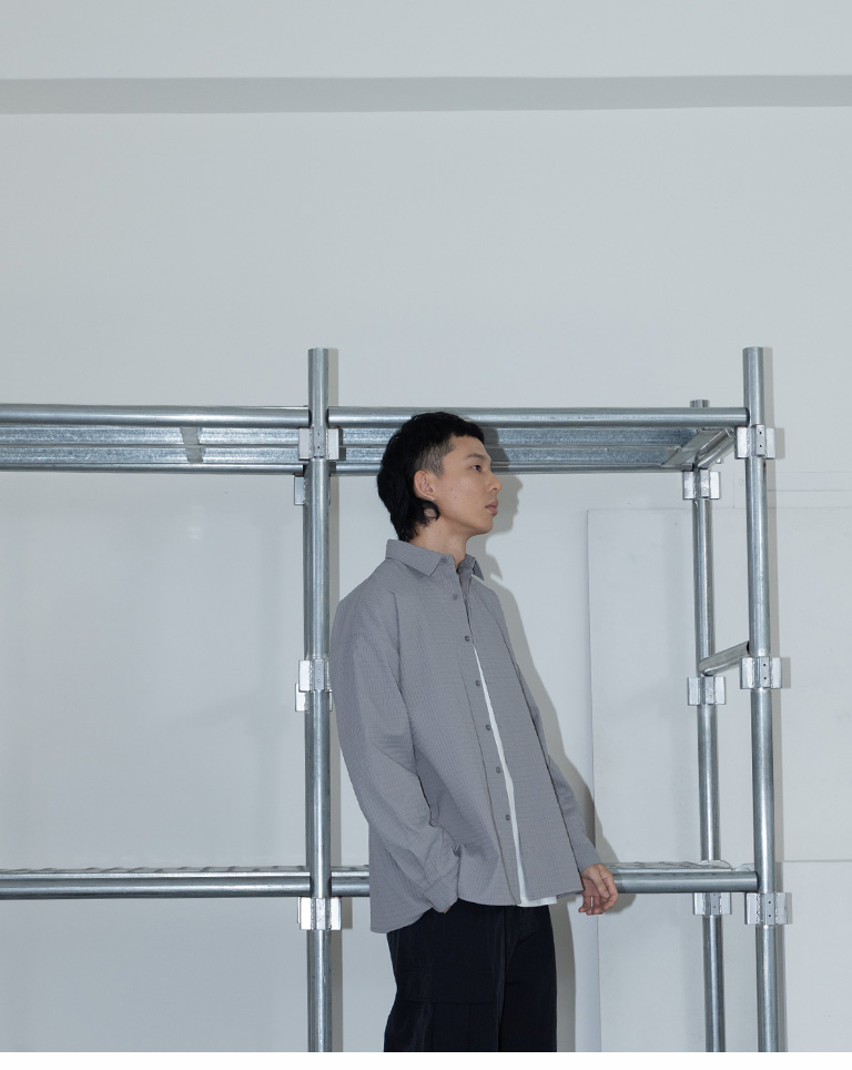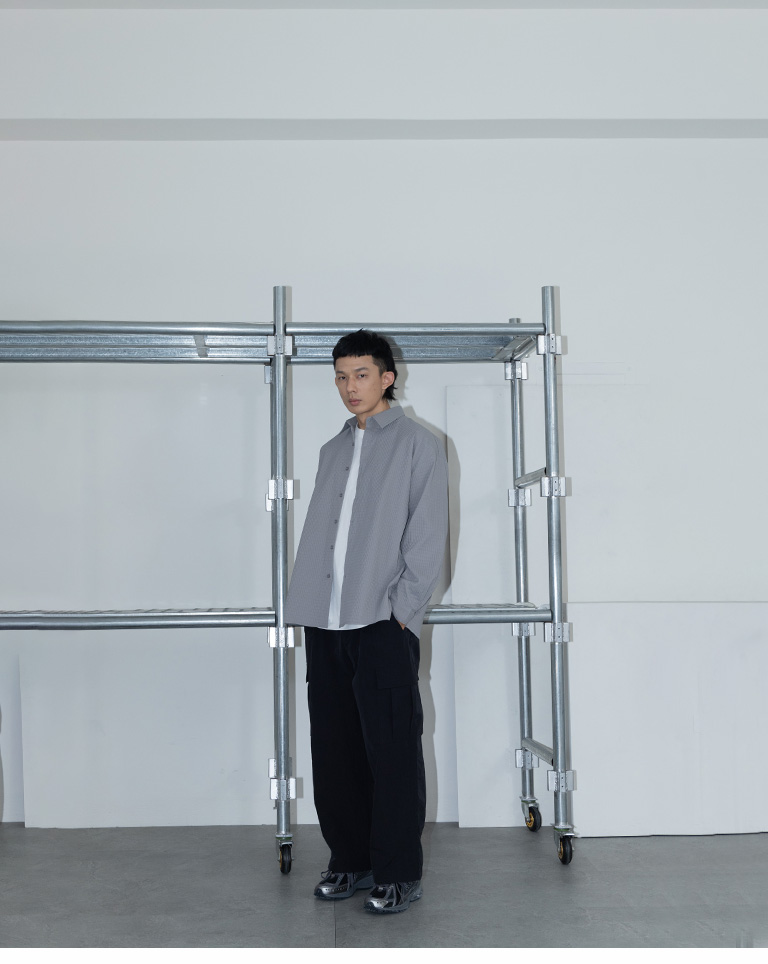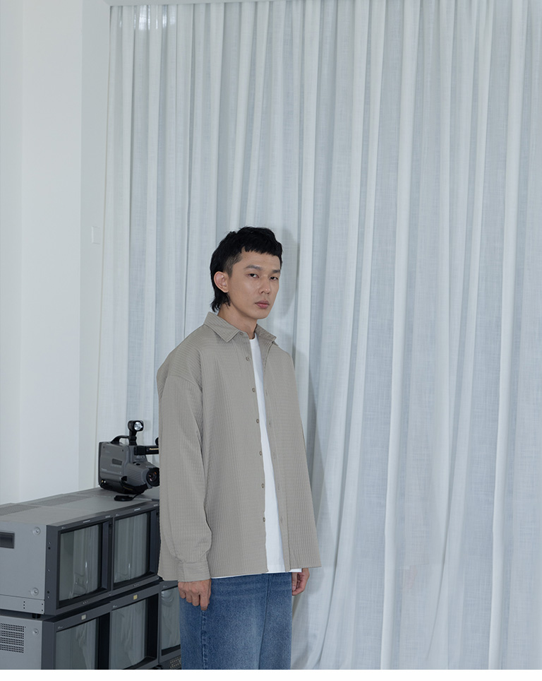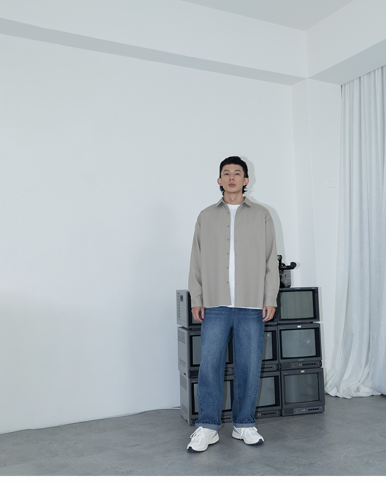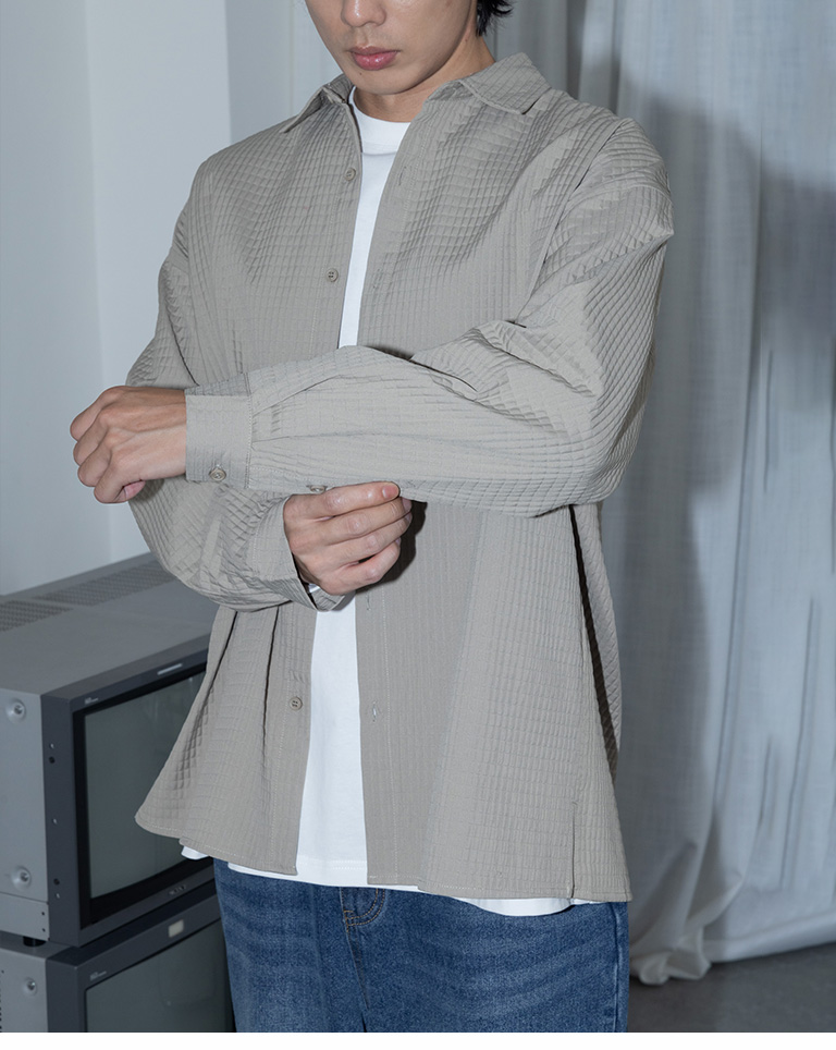 格紋紋理造型素面襯衫 兩色售 M/L/XL