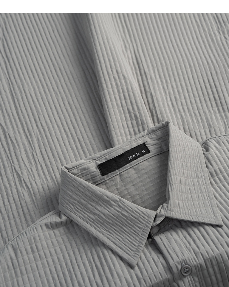 男裝 格紋紋理造型素面襯衫