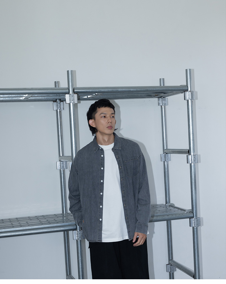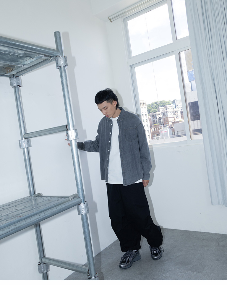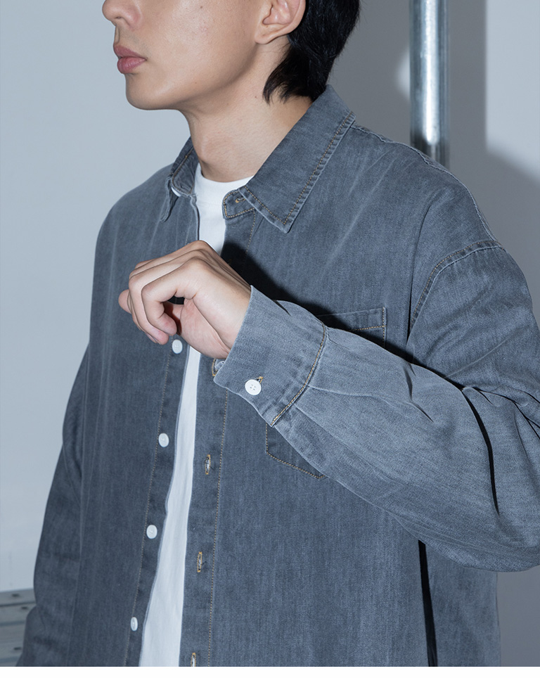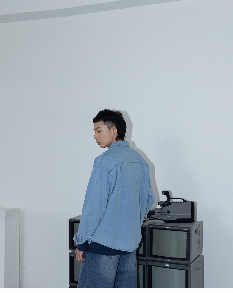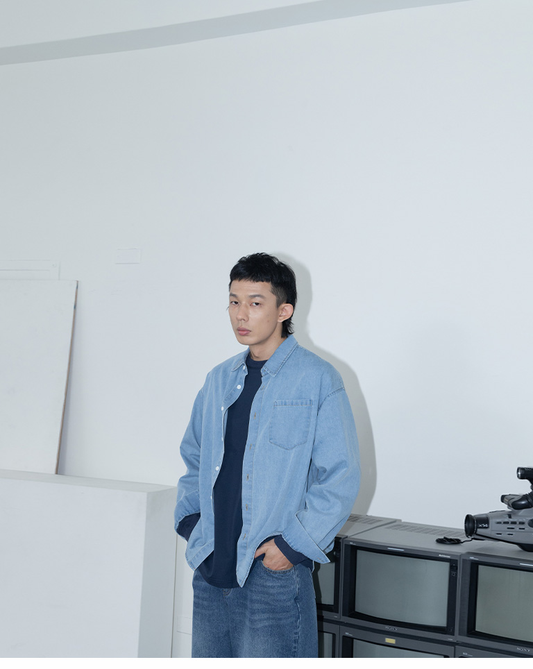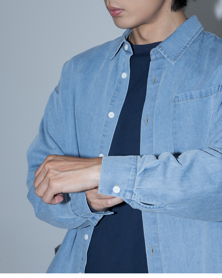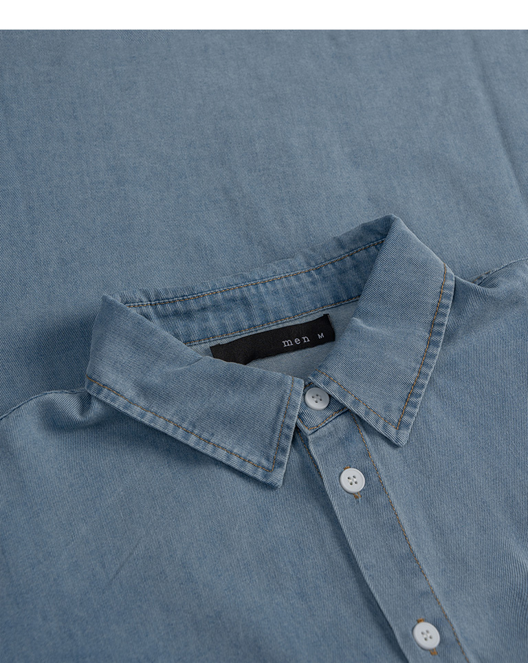 男裝 單口袋洗水造型牛仔襯衫