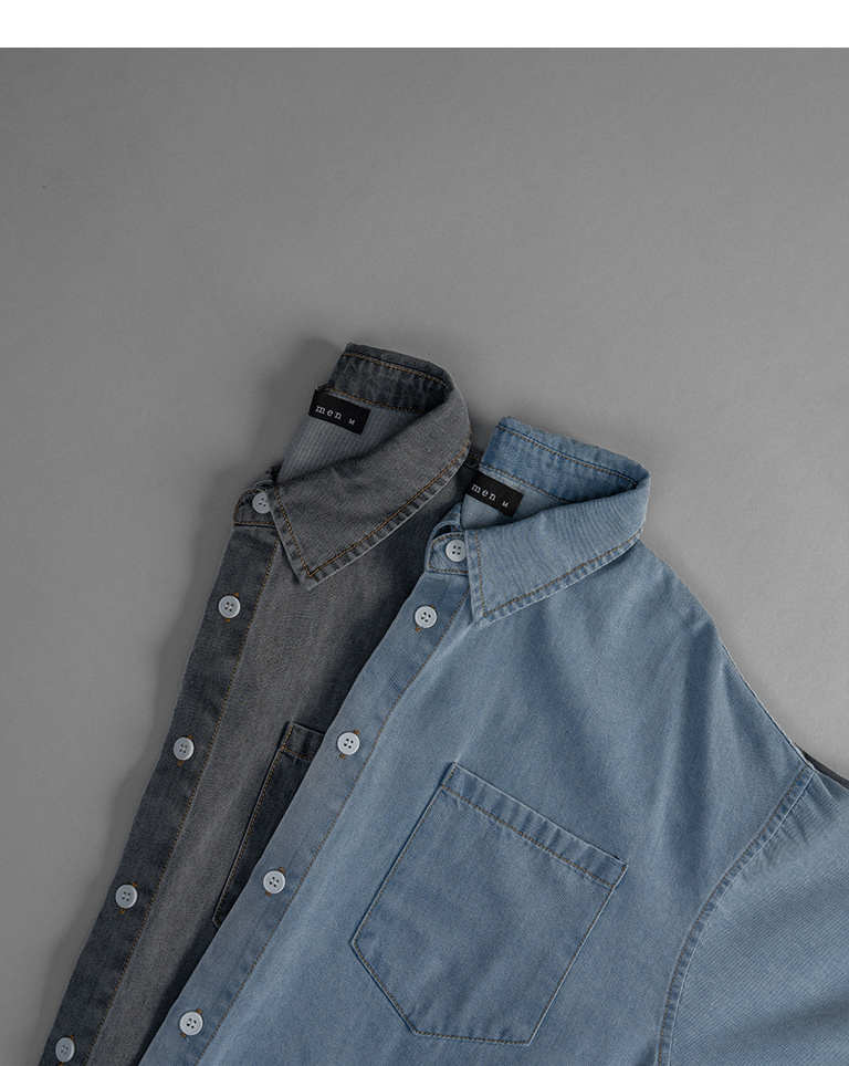 單口袋洗水造型牛仔襯衫 兩色售 S/M/L/XL