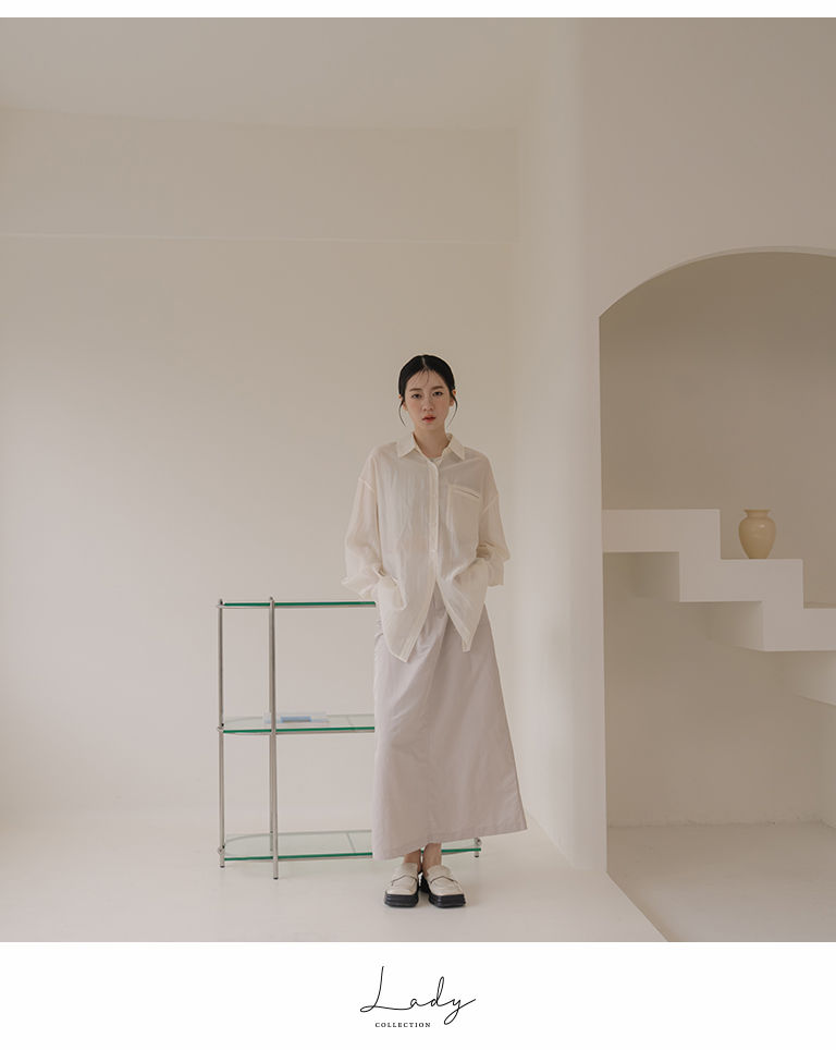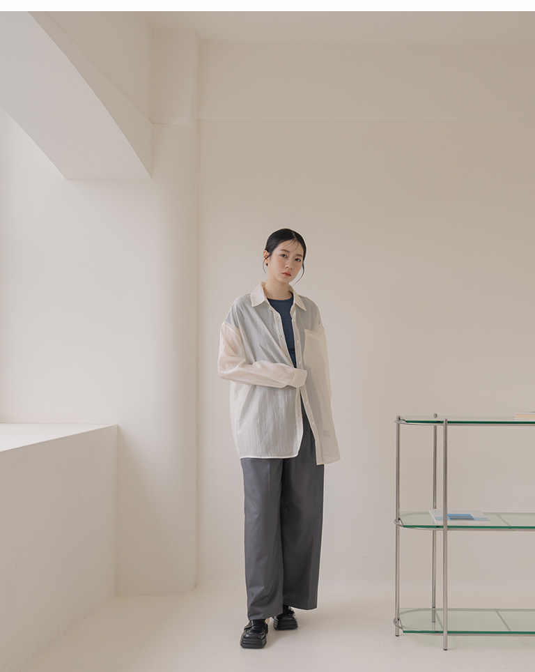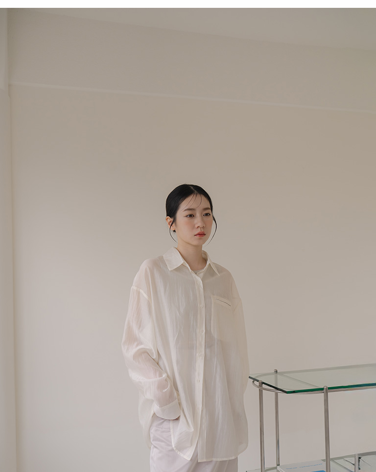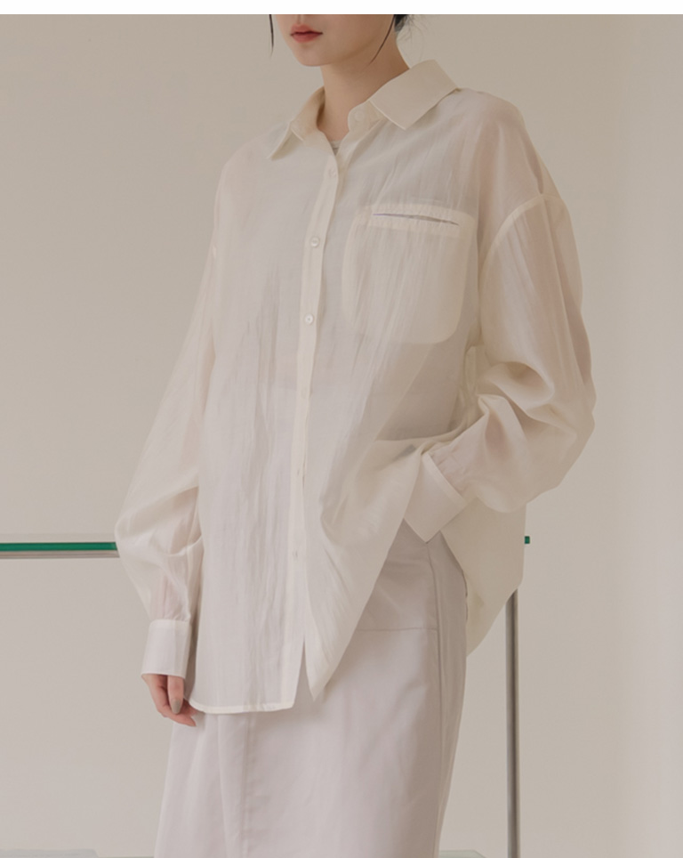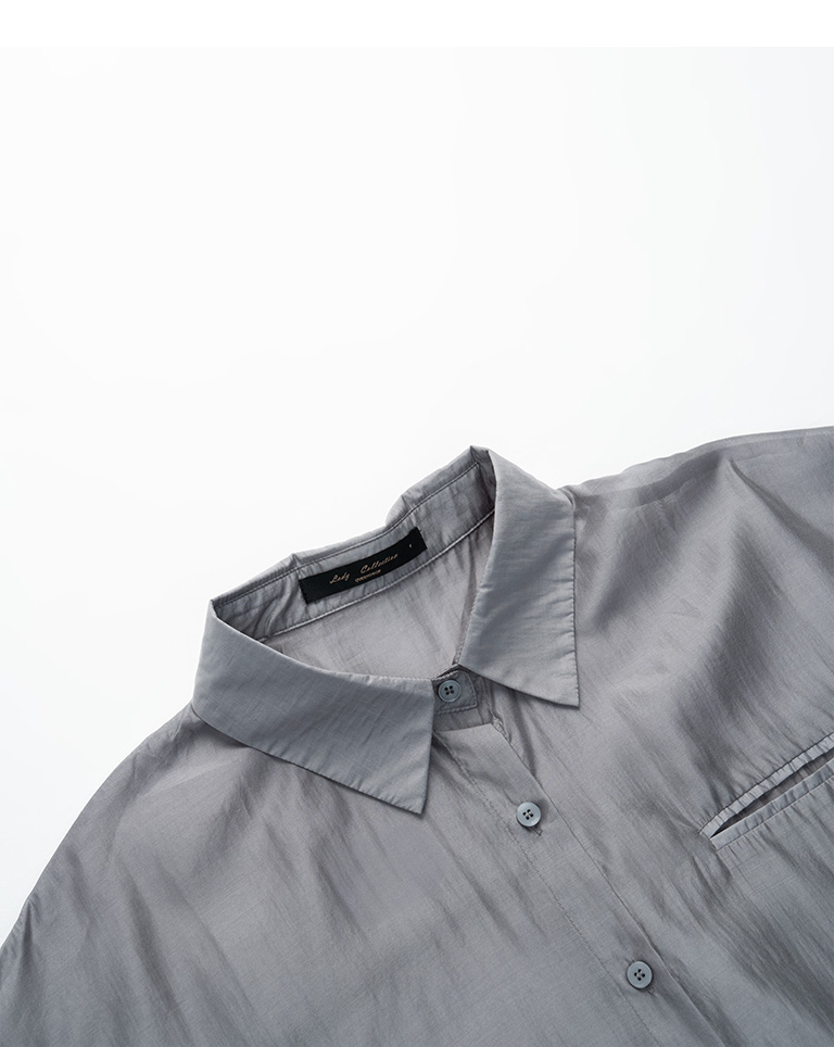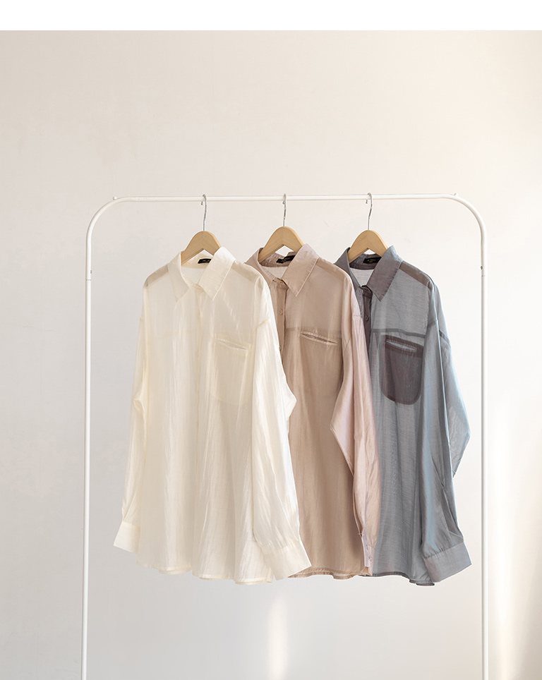 質感光澤單口袋透膚襯衫
