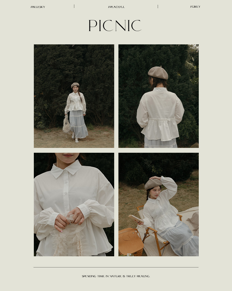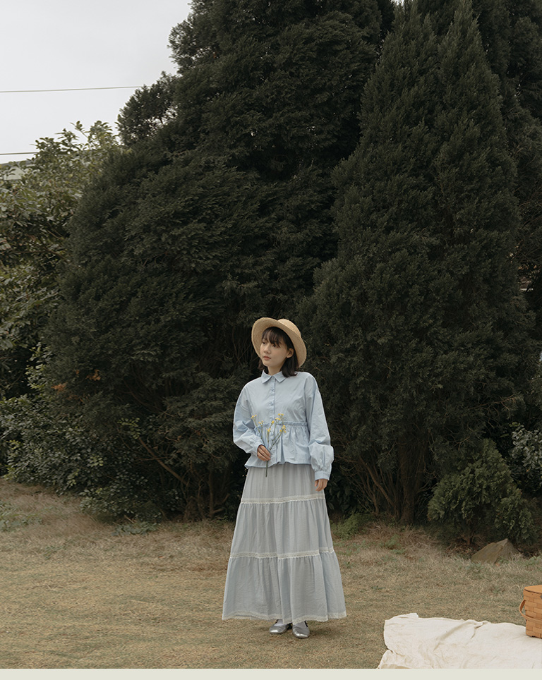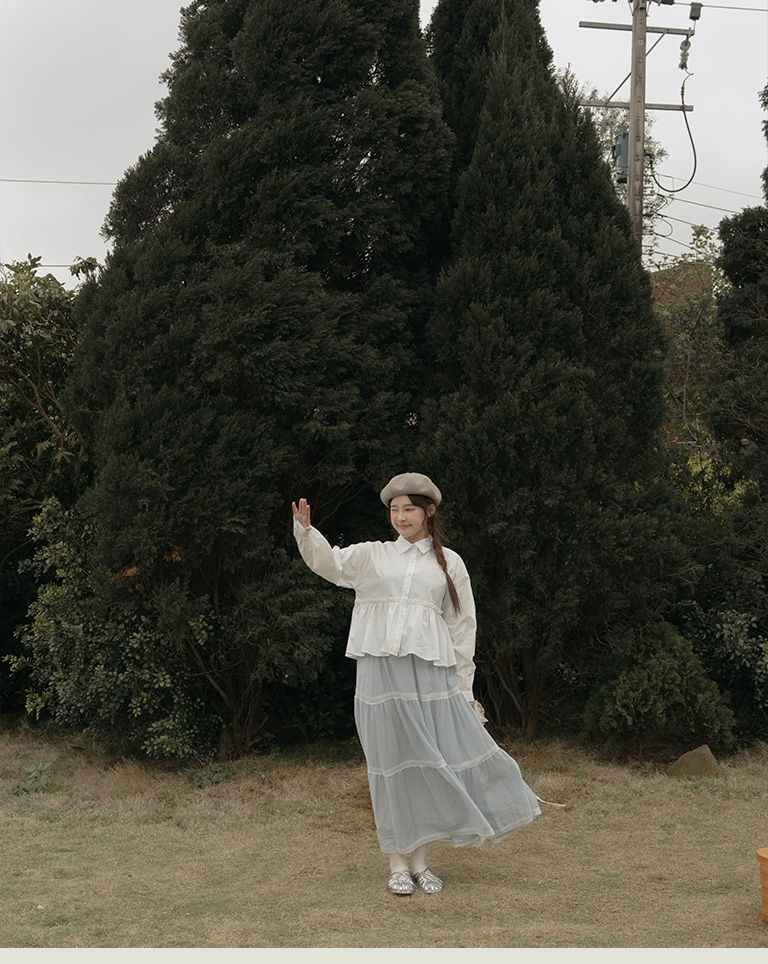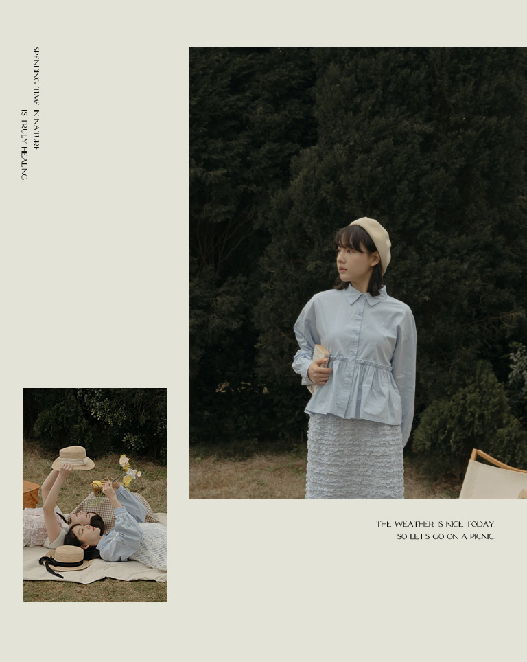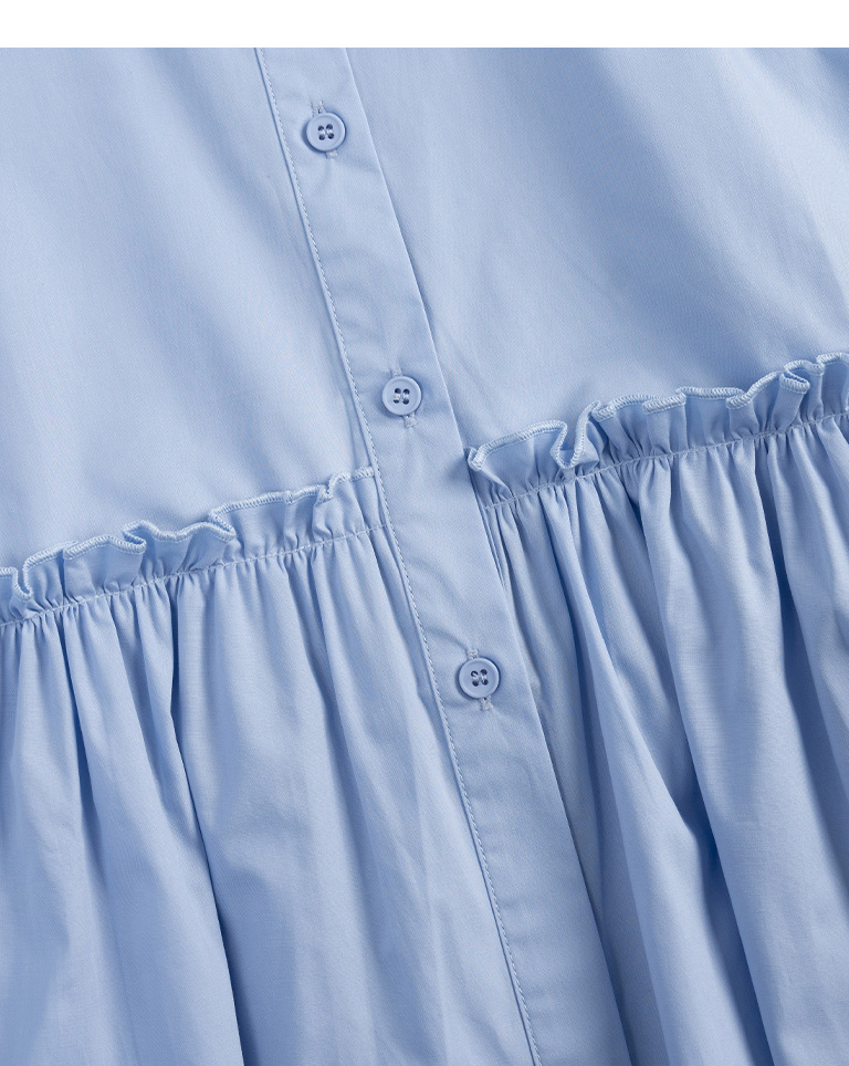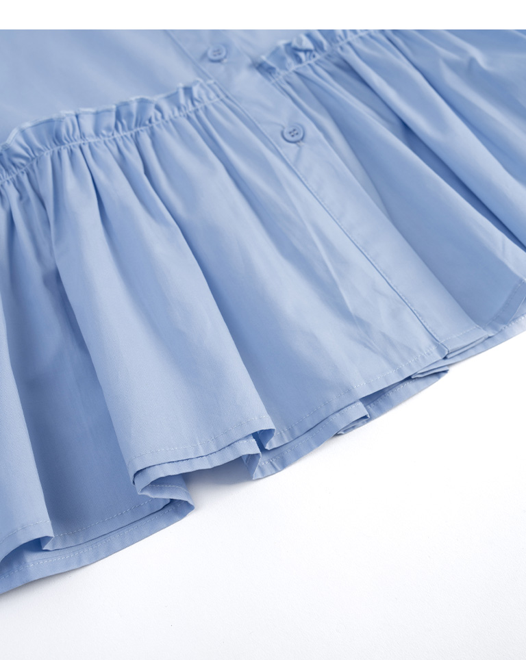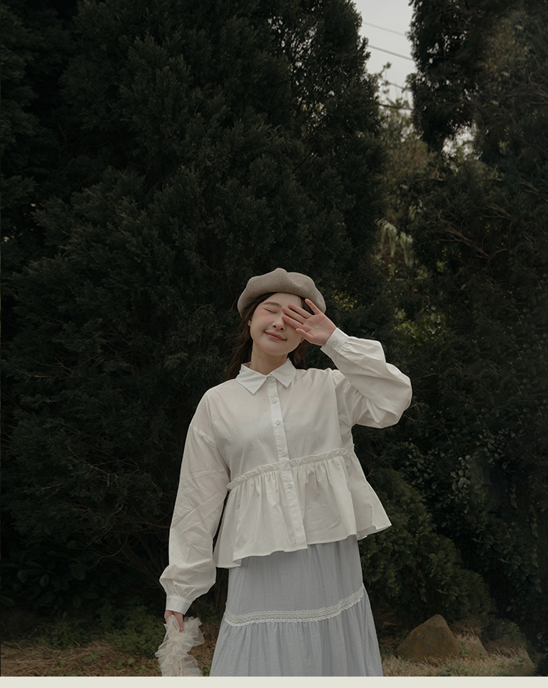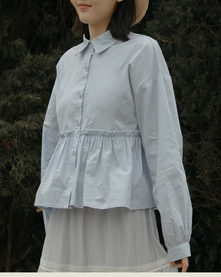 荷葉抽皺剪接傘擺襯衫 兩色售