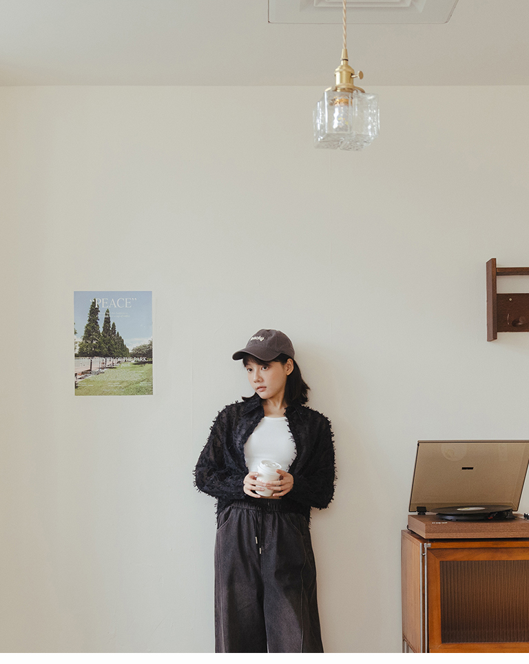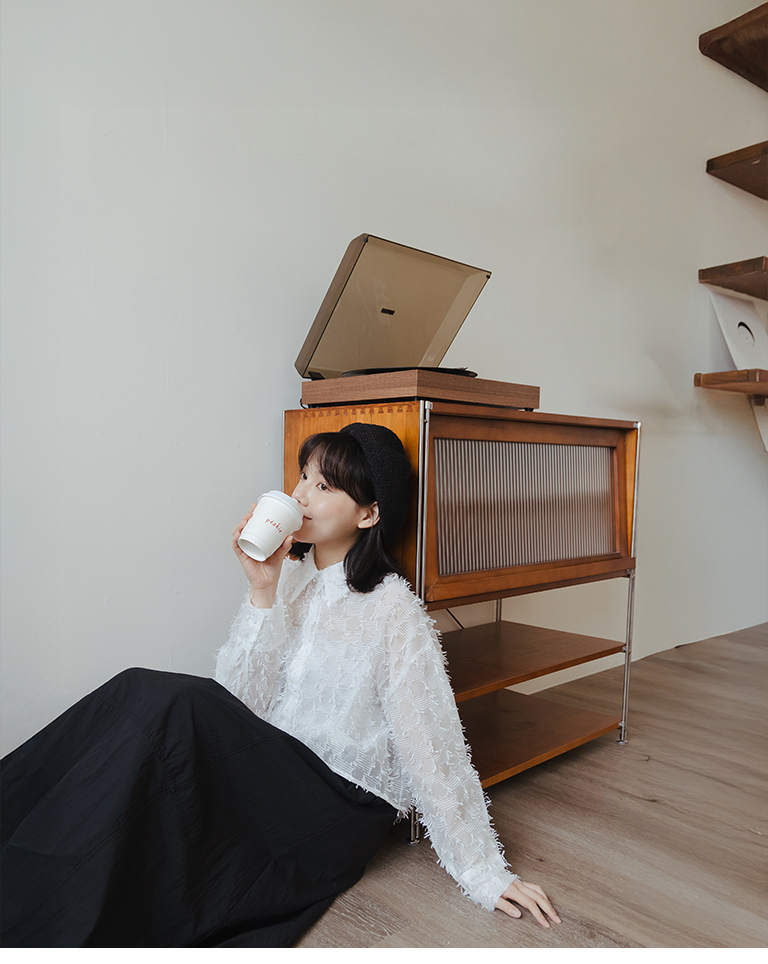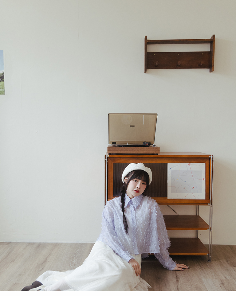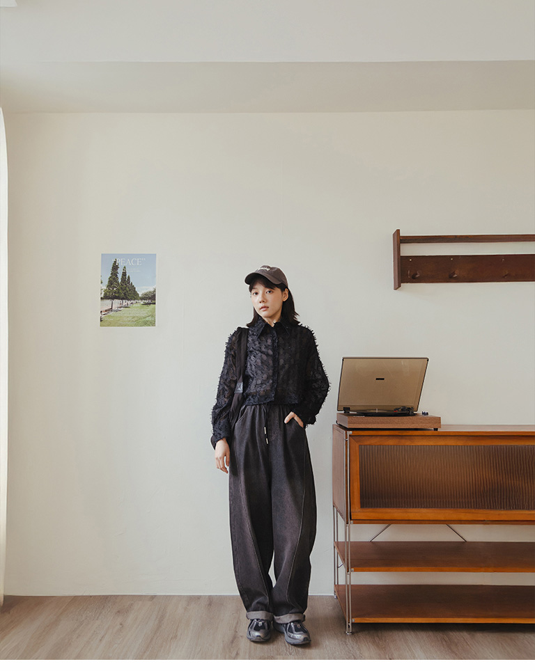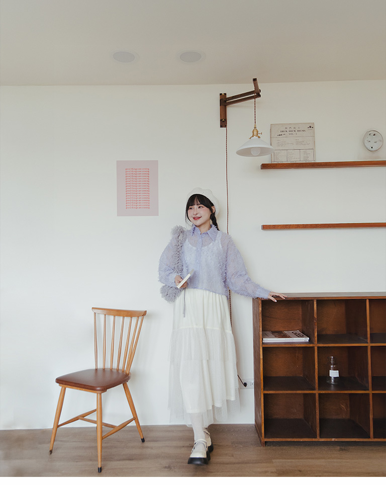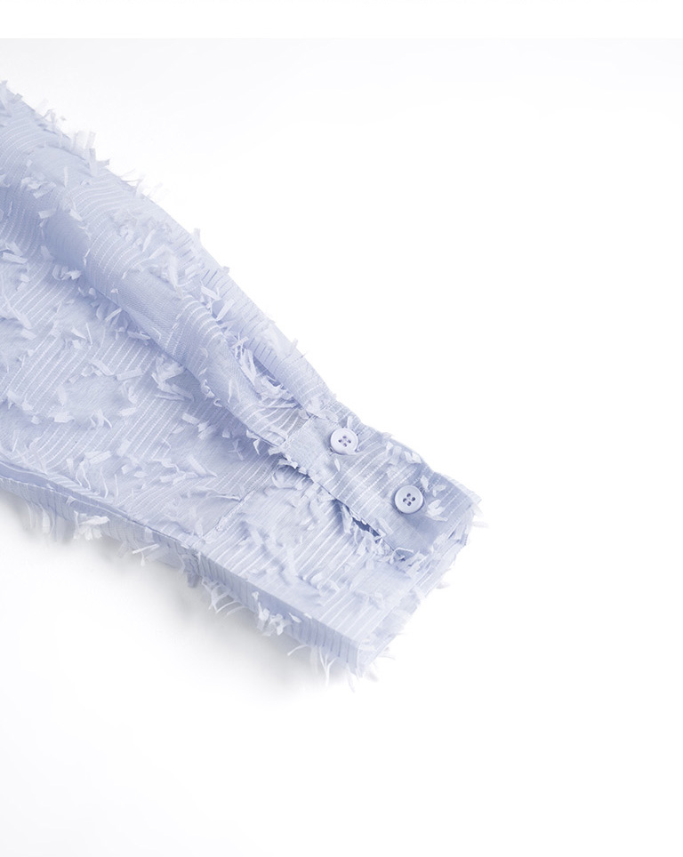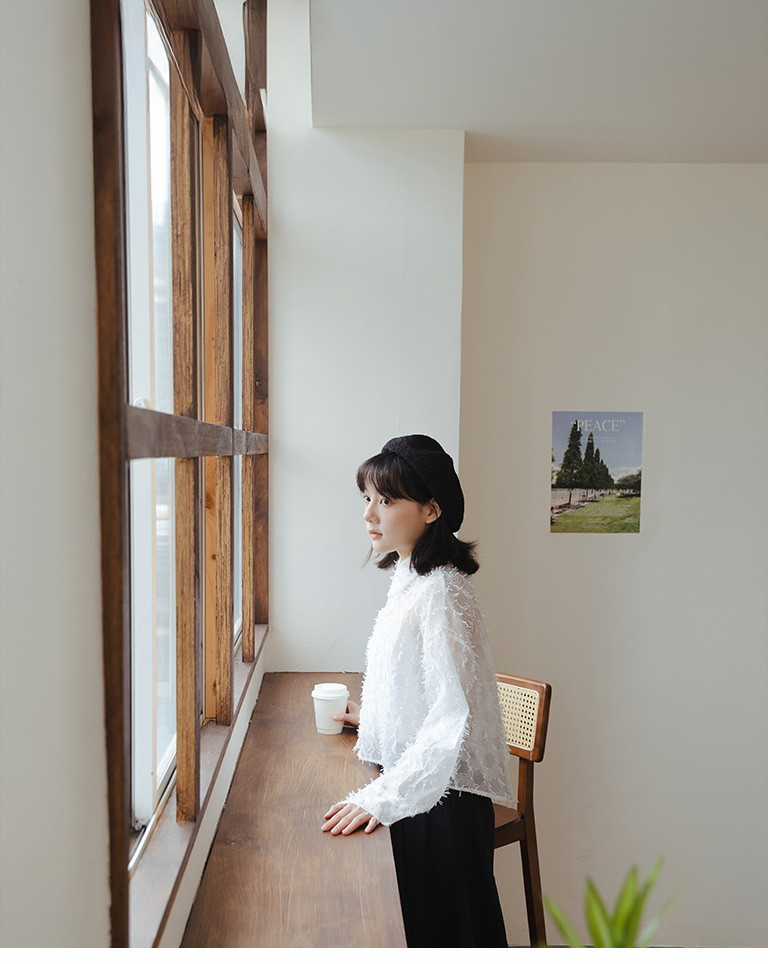 立體羽毛鬚設計透膚短版襯衫 三色售