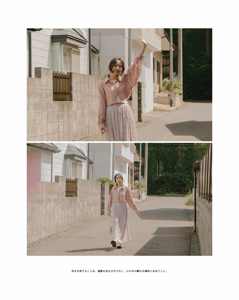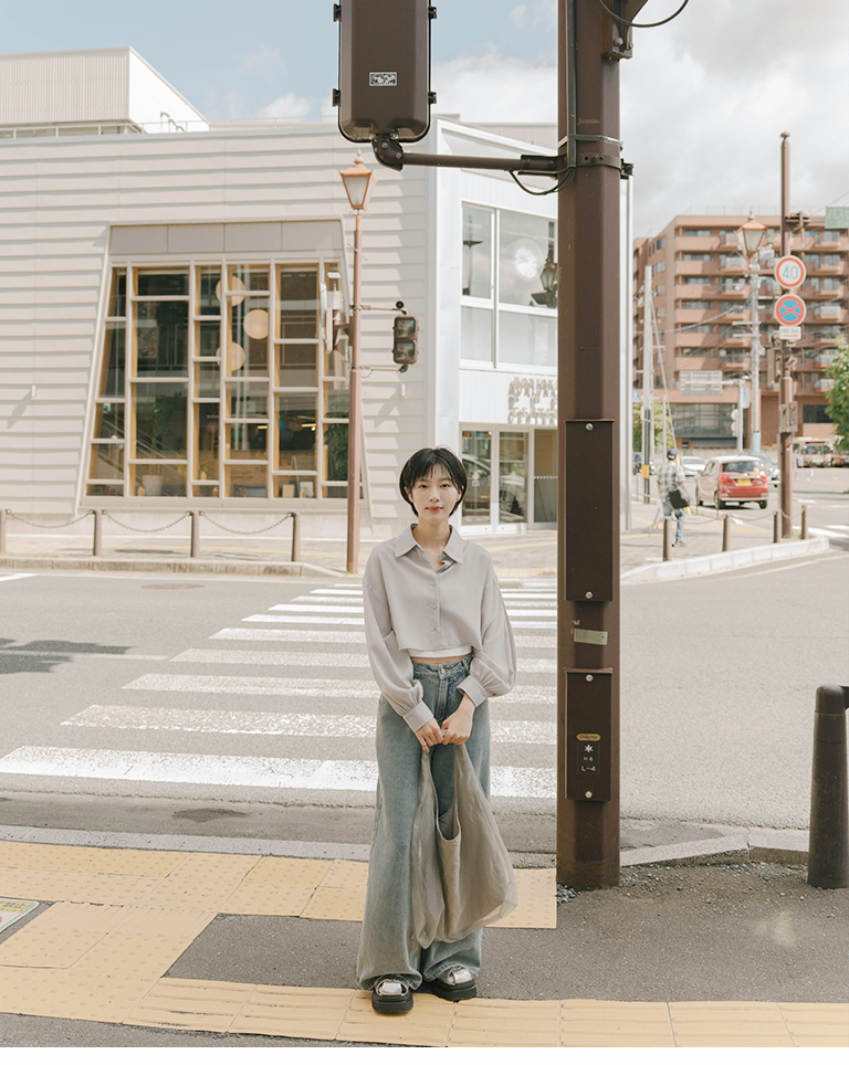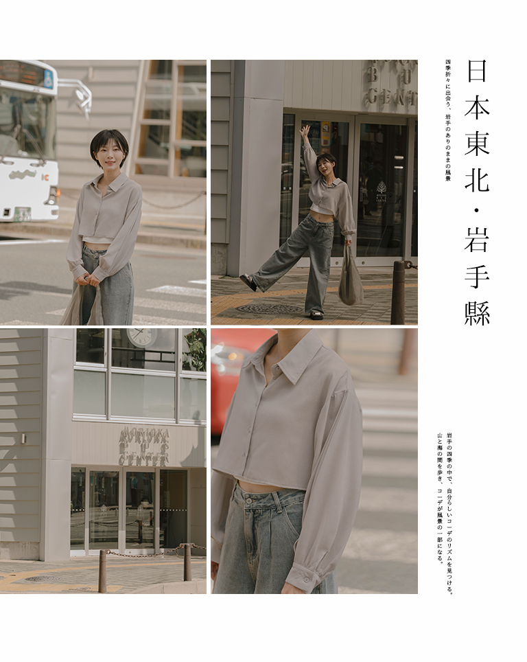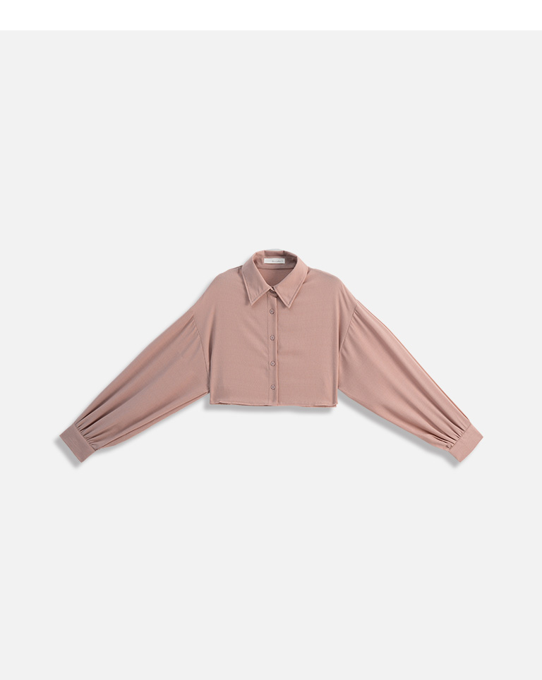 袖壓摺設計短版長袖襯衫