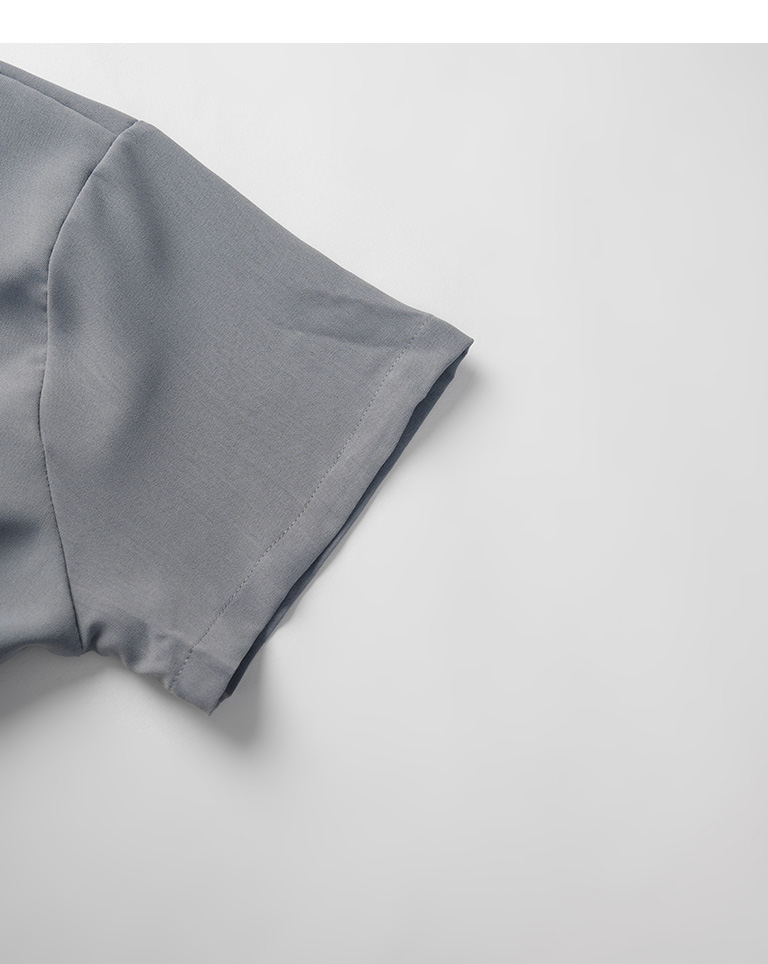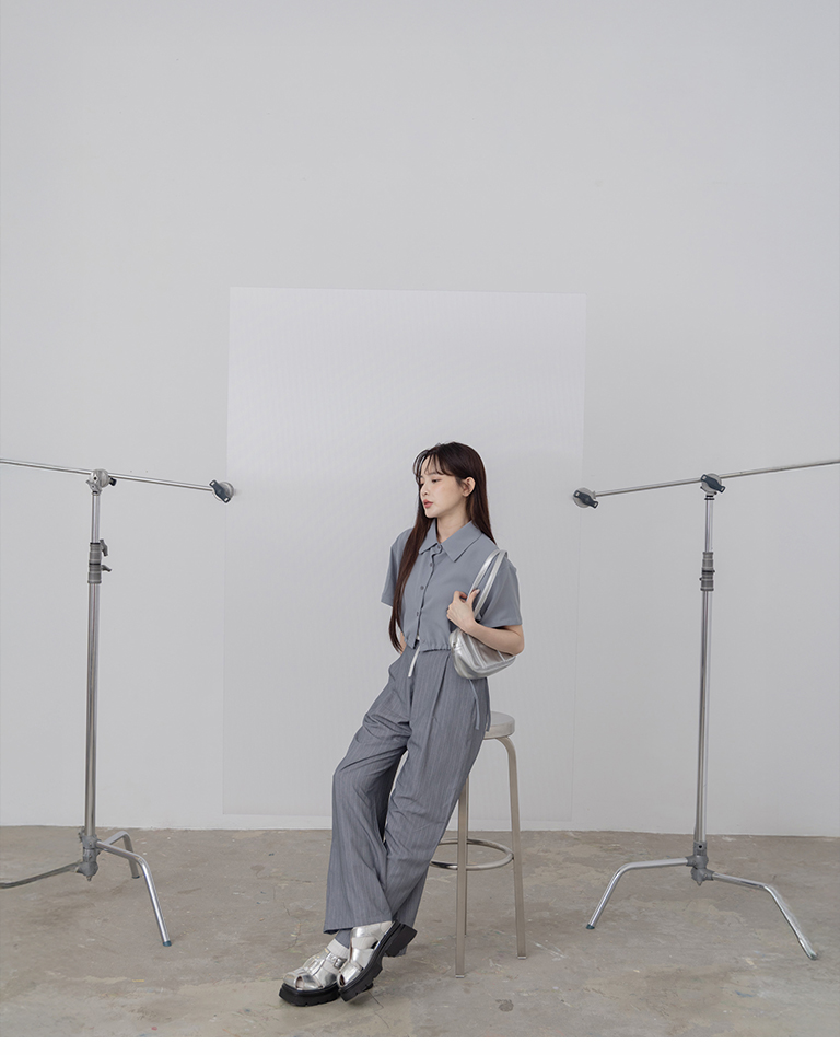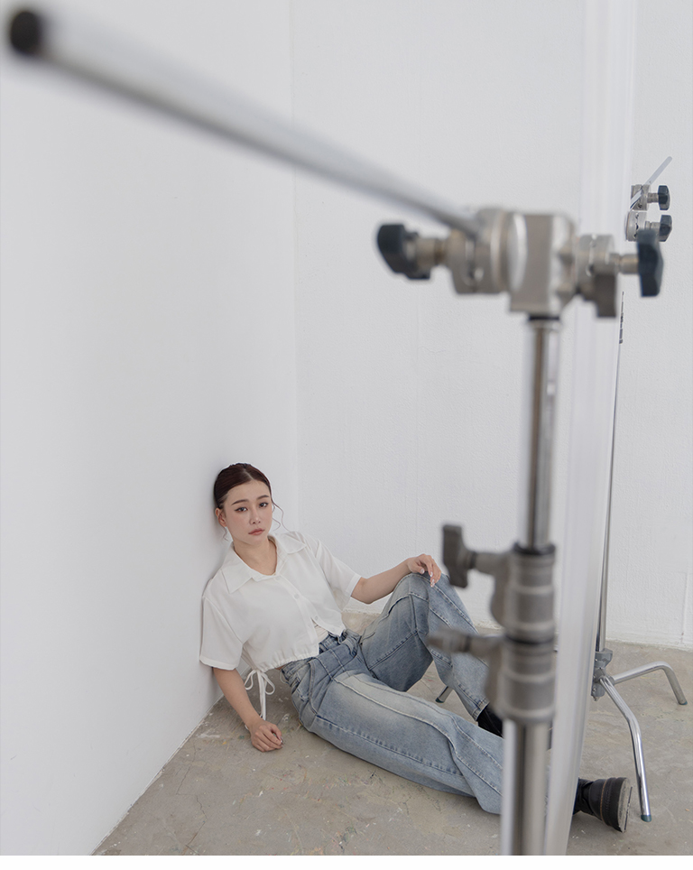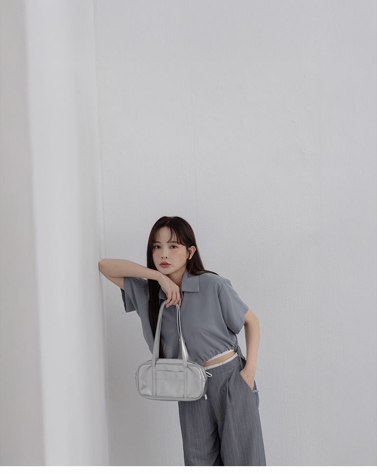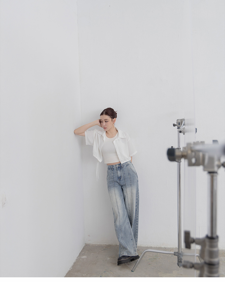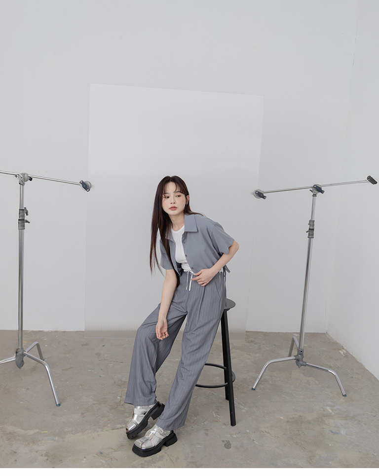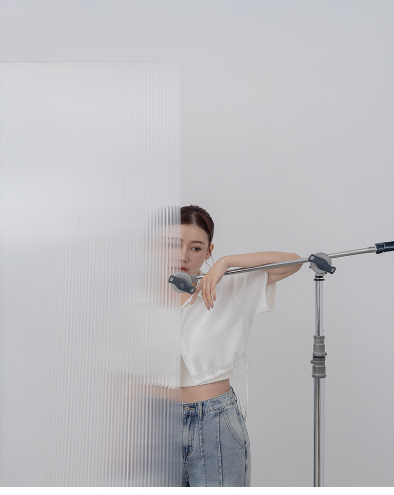 側抽繩綁帶設計短版短袖襯衫