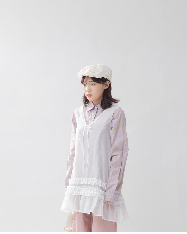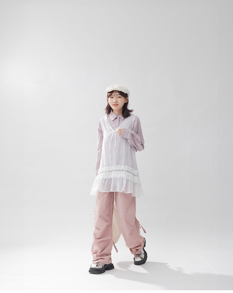 S~L身形實測!分尺寸皺皺木耳邊透膚高領長袖上衣