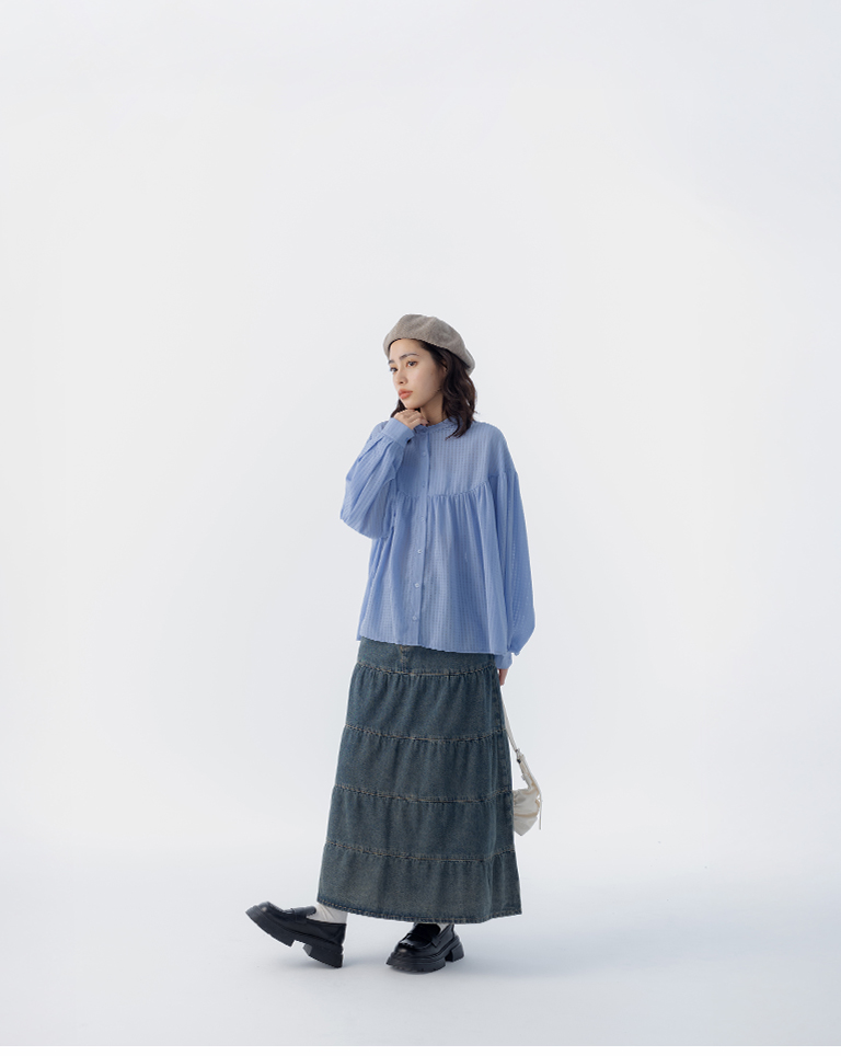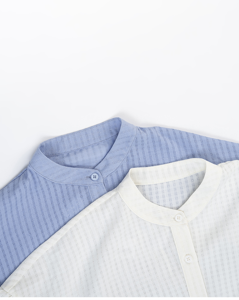 小方格紋理傘襬排釦襯衫 兩色售