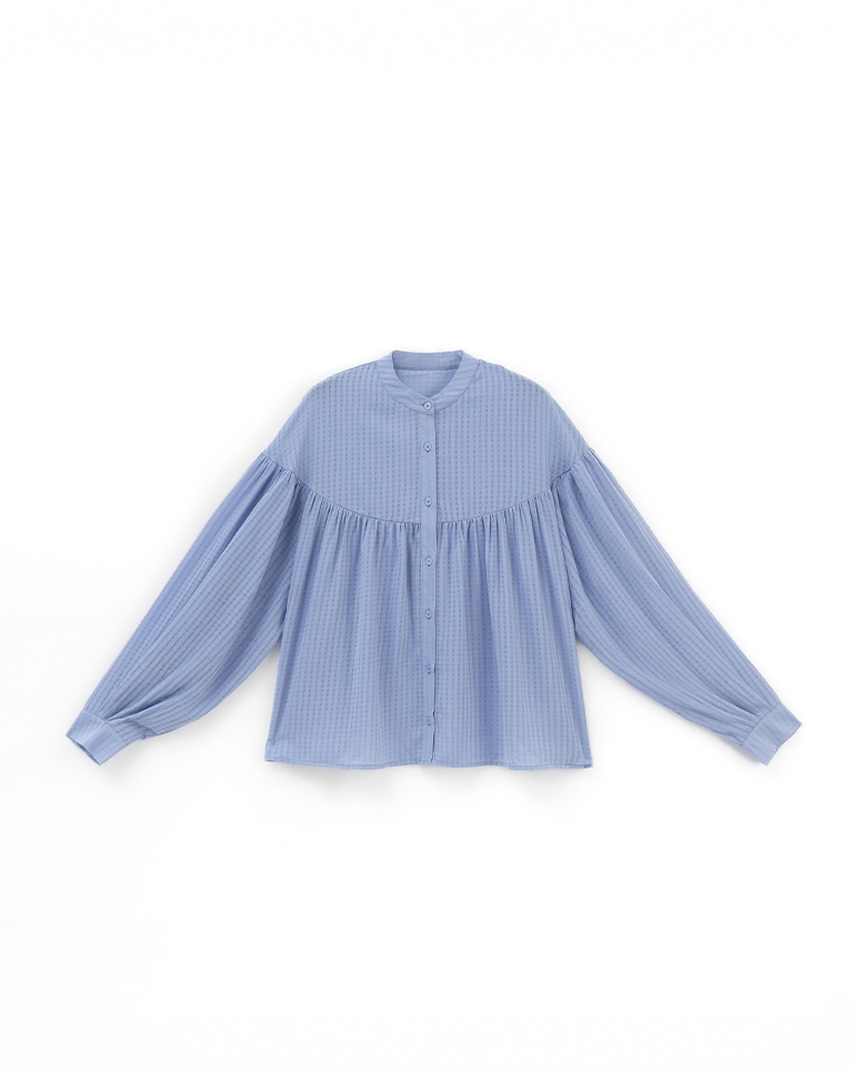 小方格紋理傘襬排釦襯衫