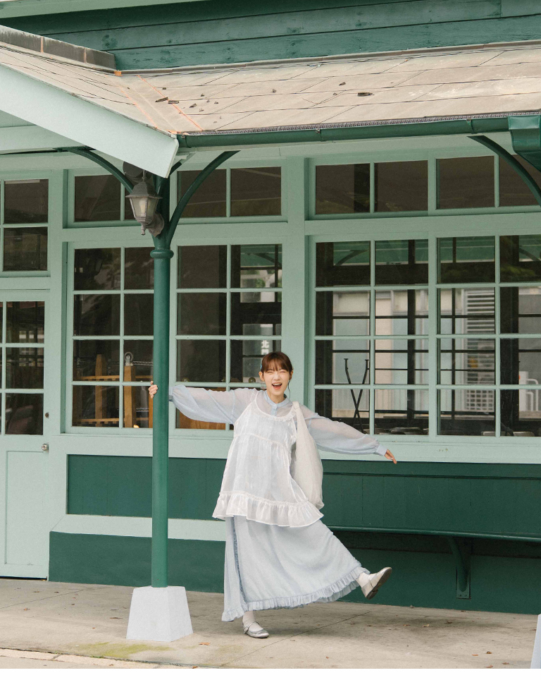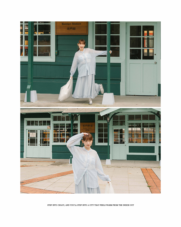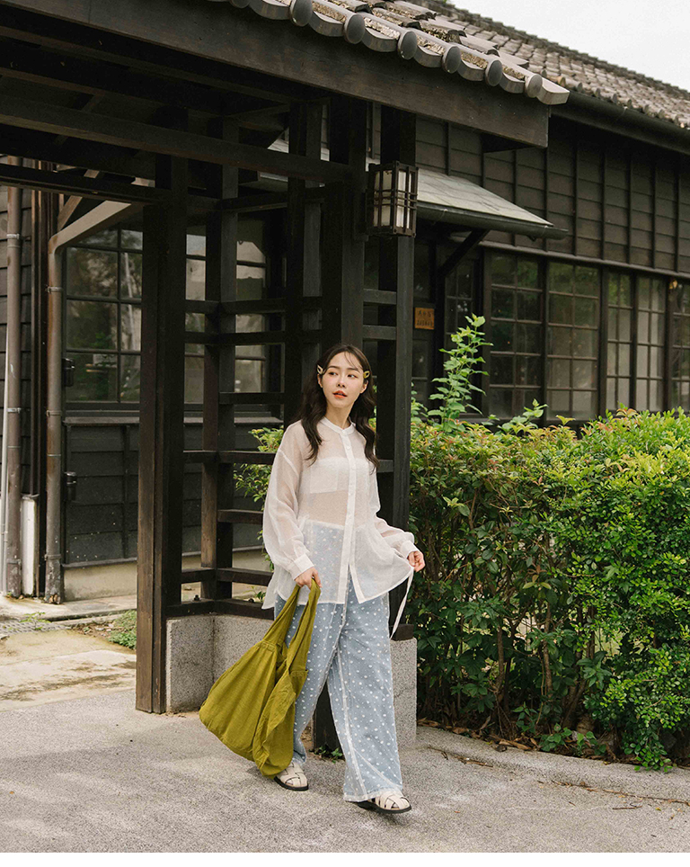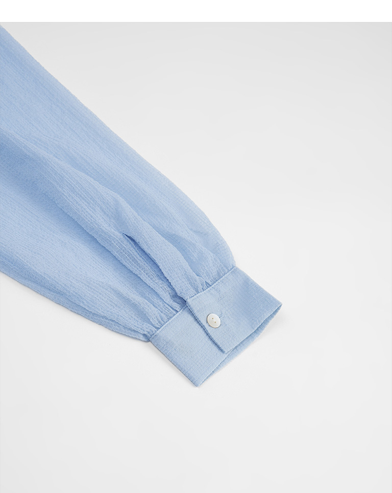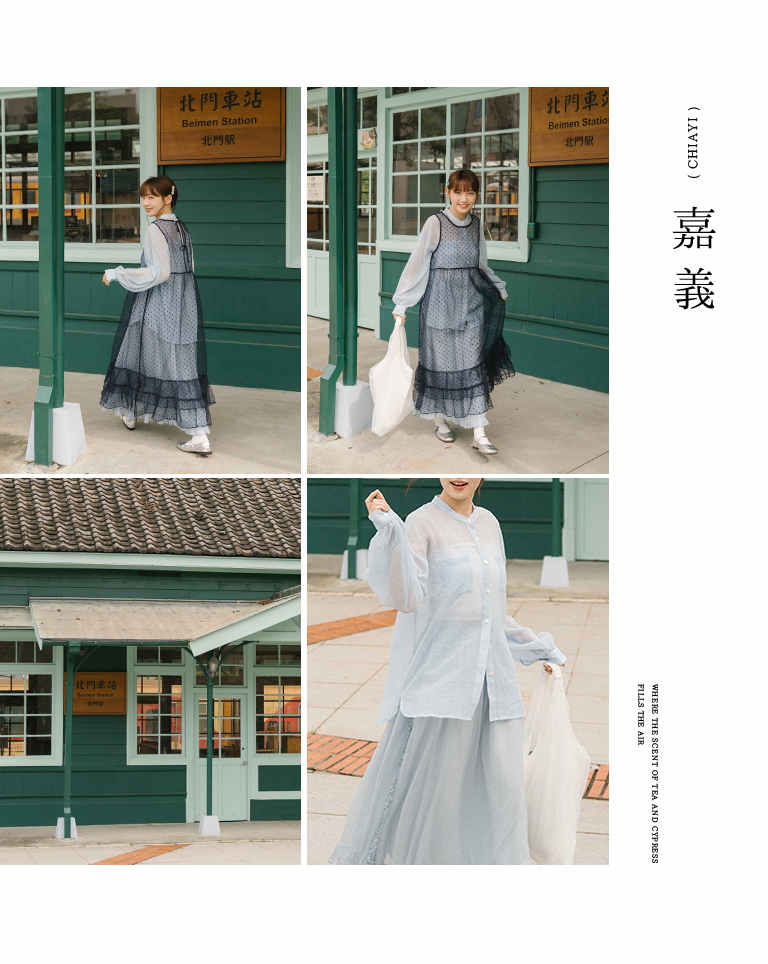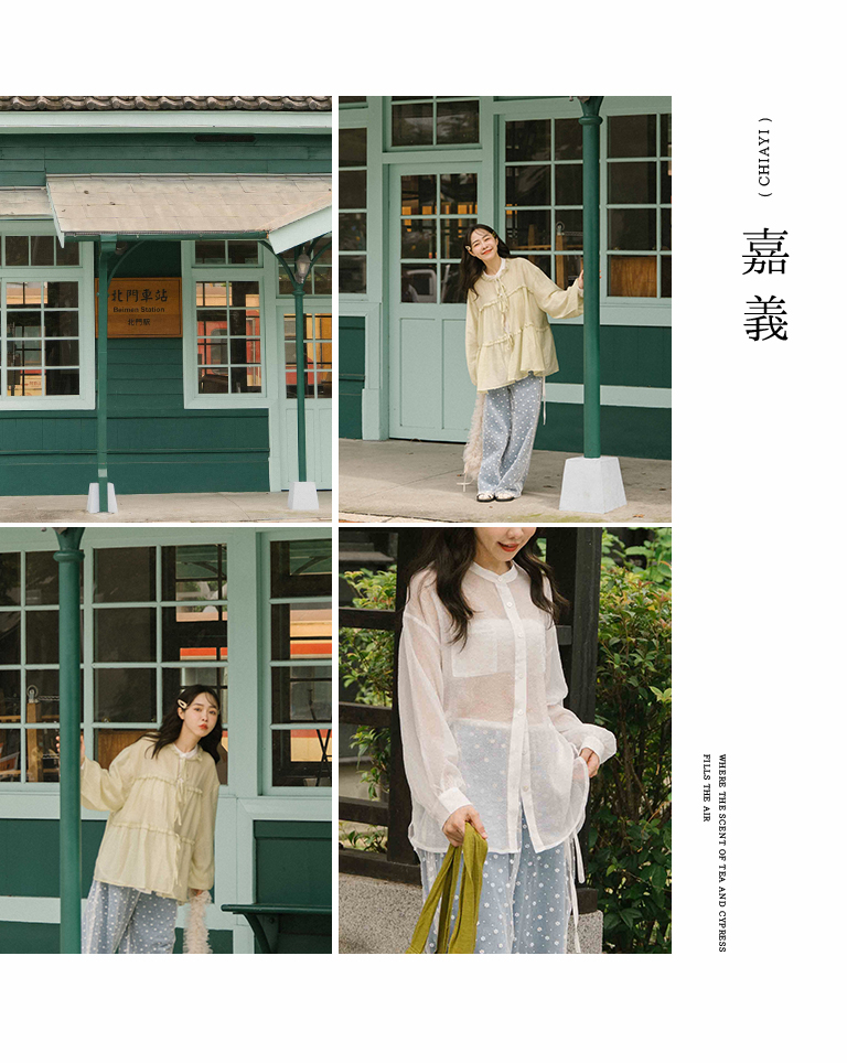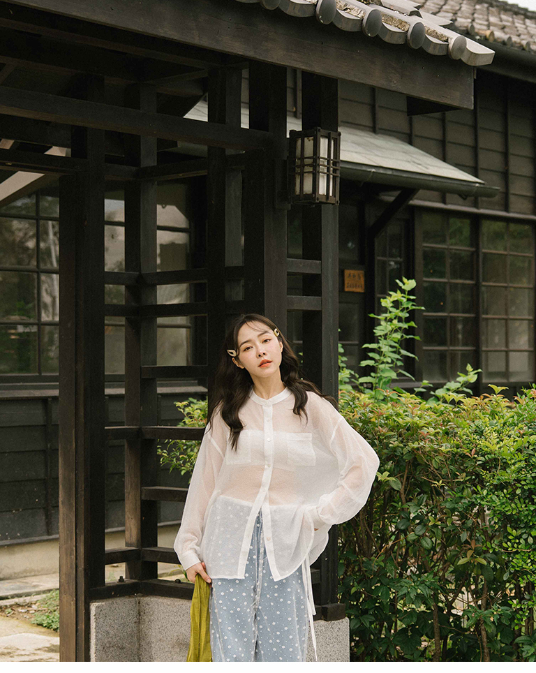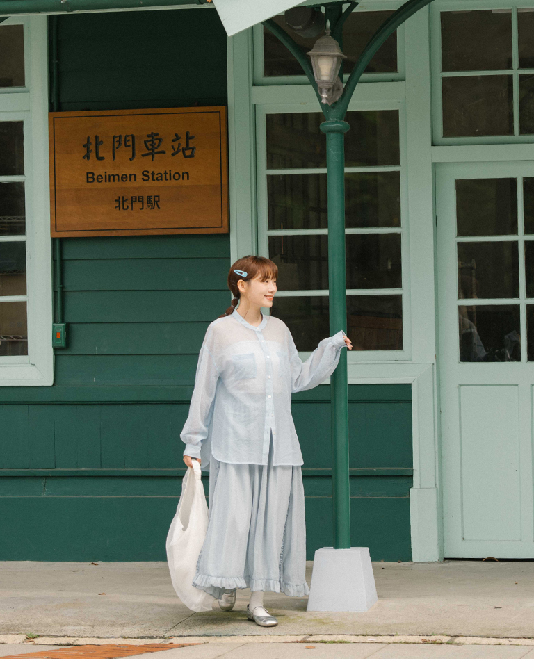S~L身形實測!分尺寸皺皺木耳邊透膚高領長袖上衣
