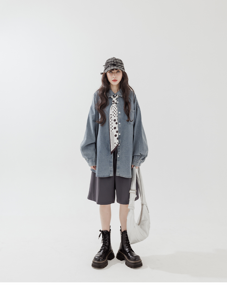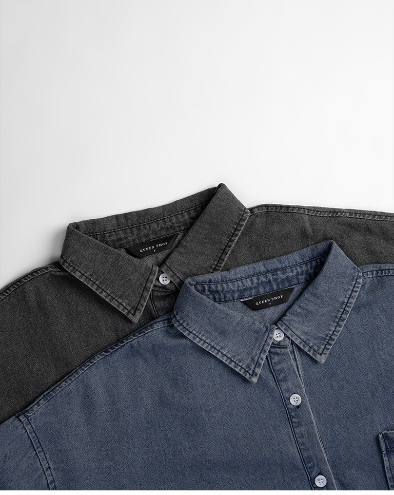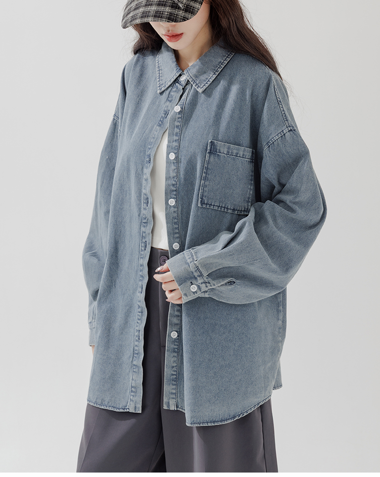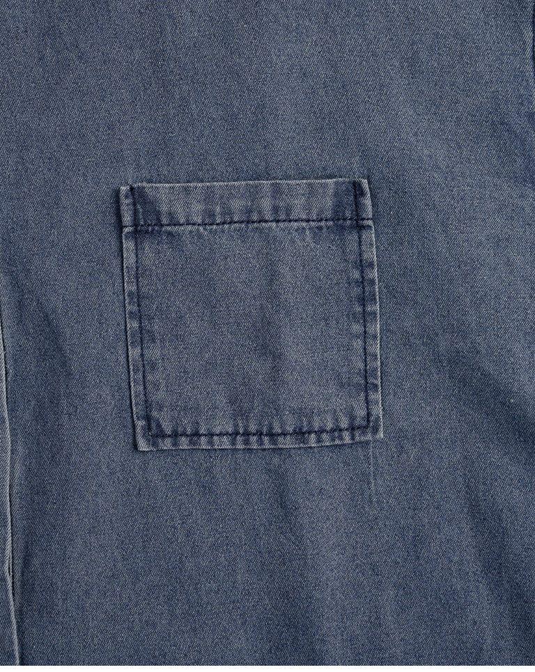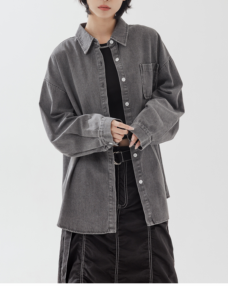 洗舊感純棉單口袋牛仔襯衫 兩色售