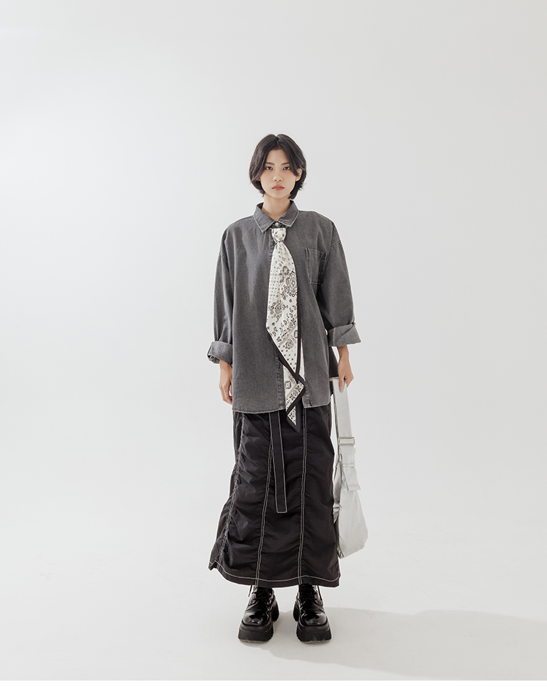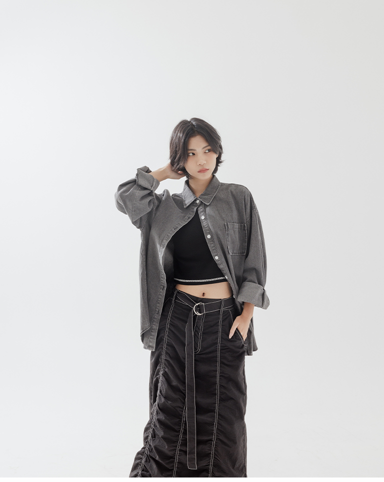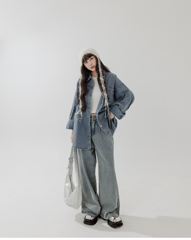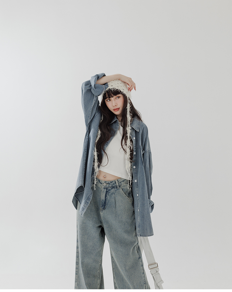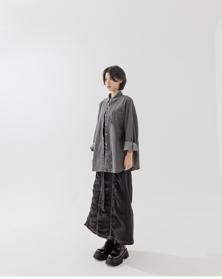 洗舊感純棉單口袋牛仔襯衫 兩色售