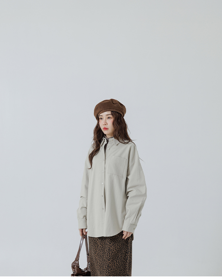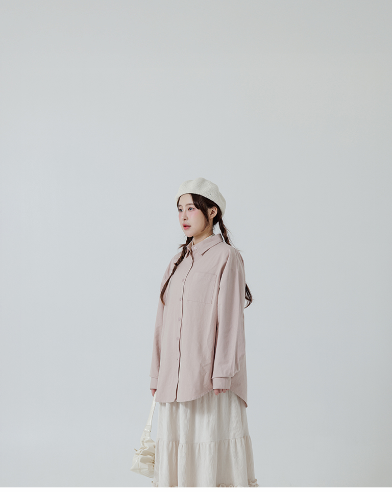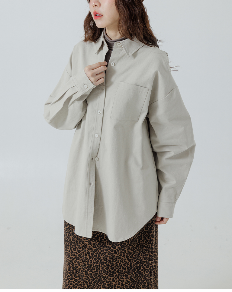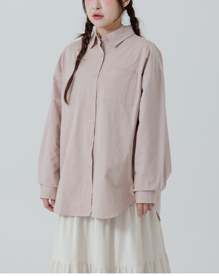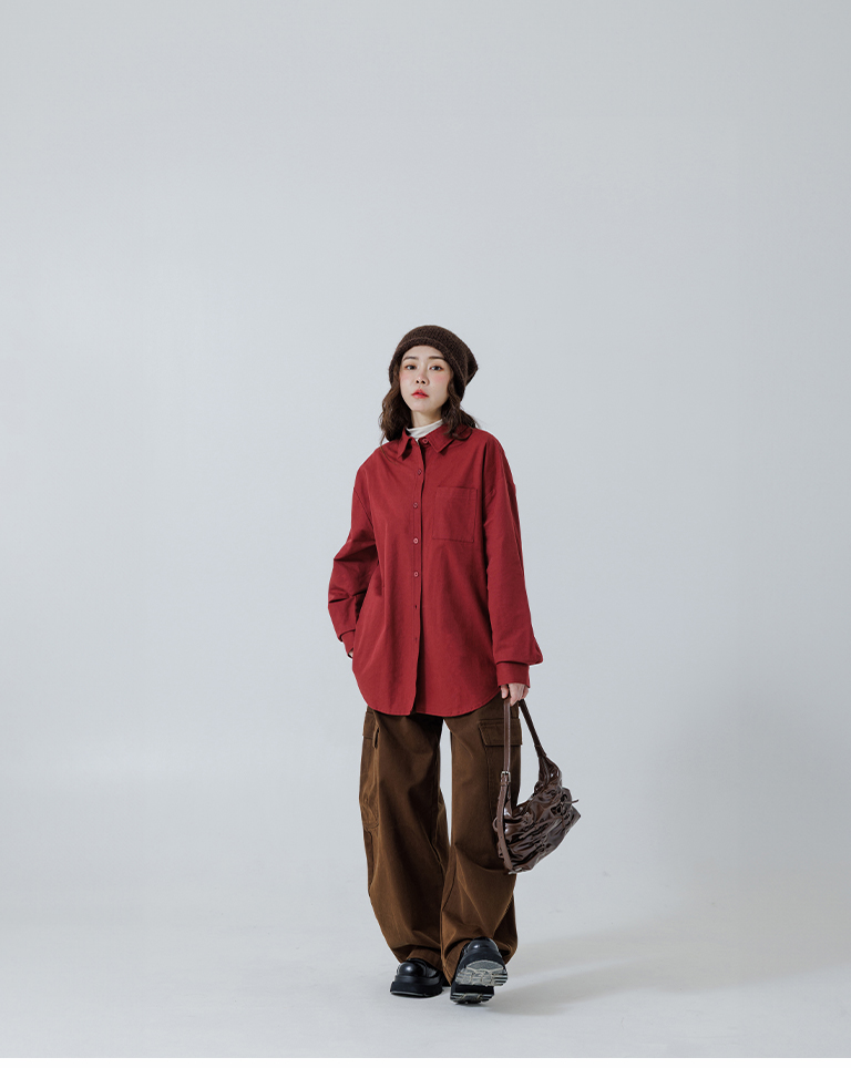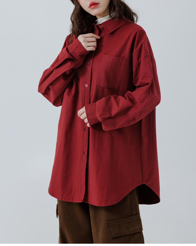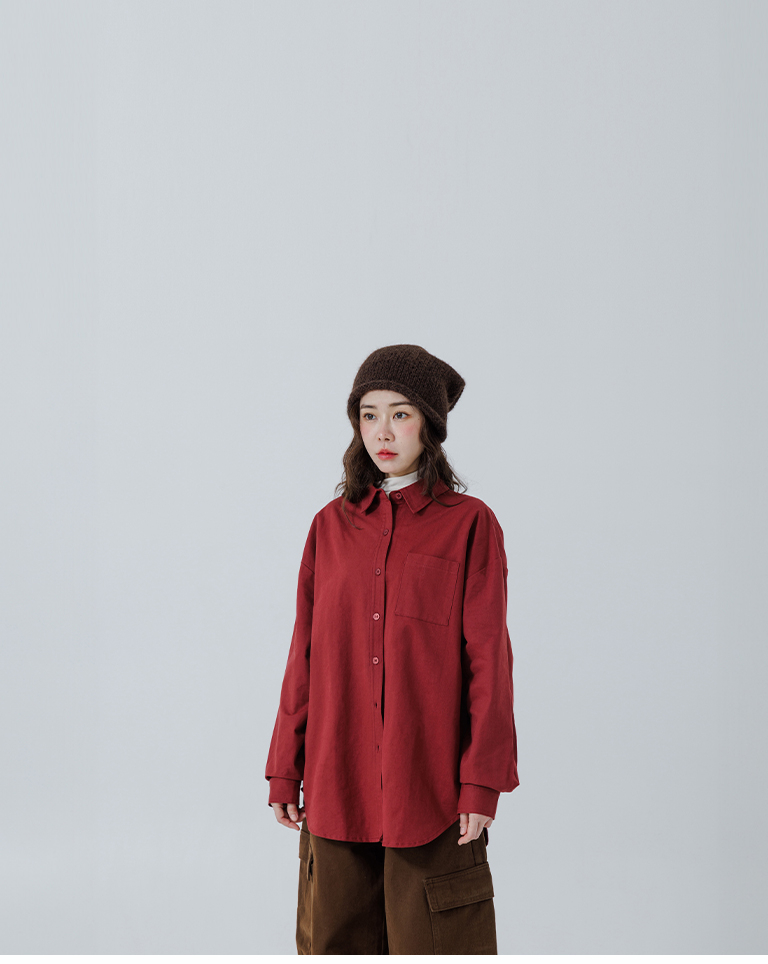 素面單口袋厚棉寬版長袖襯衫