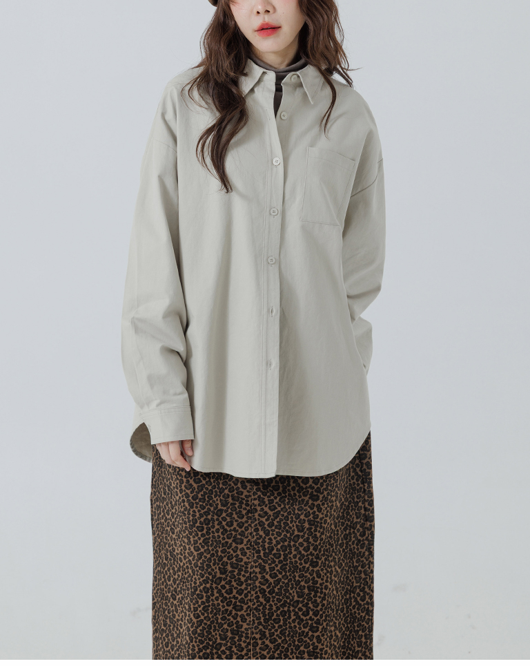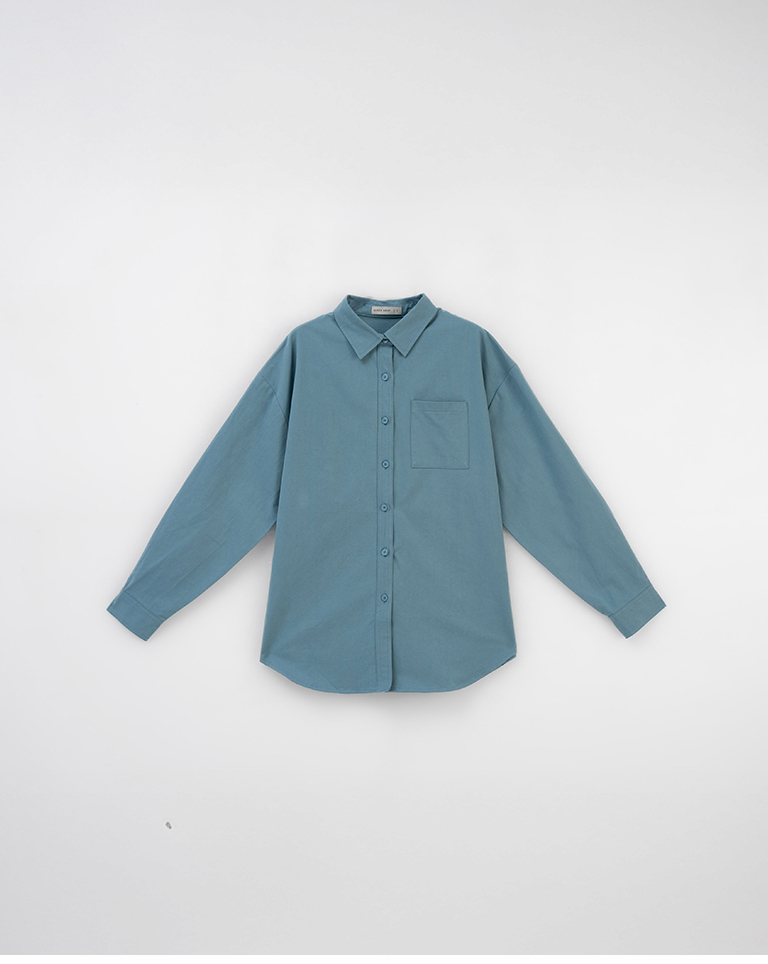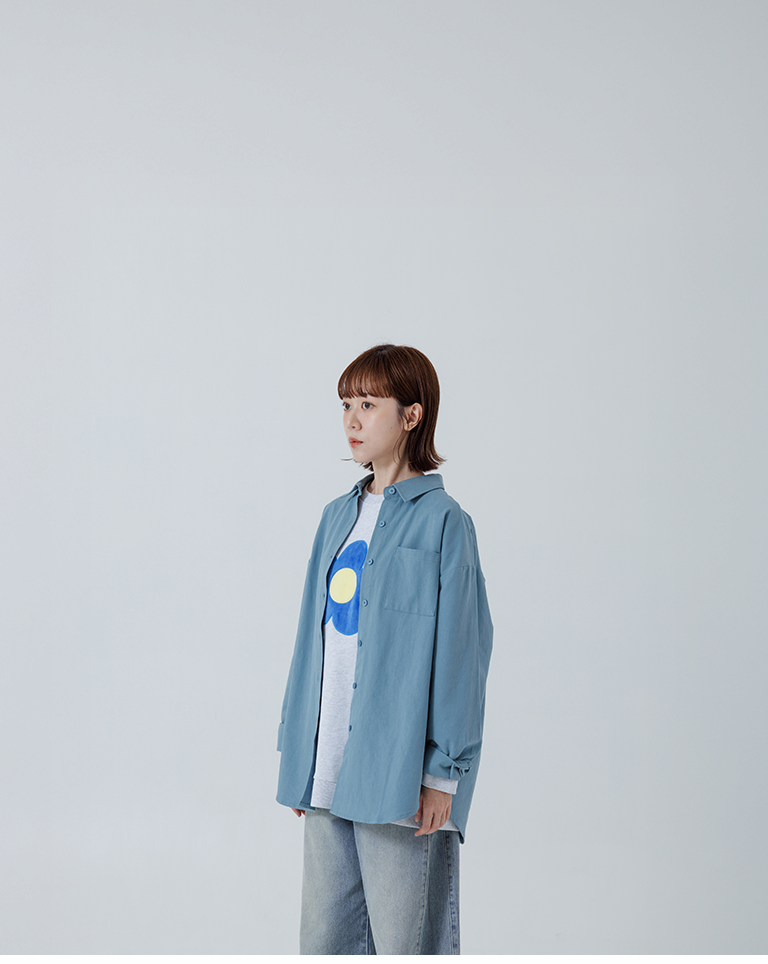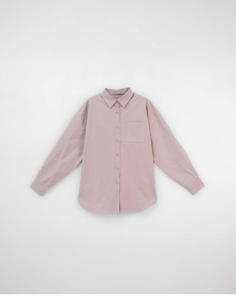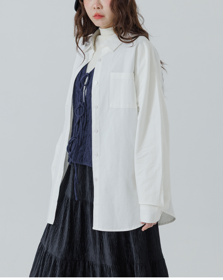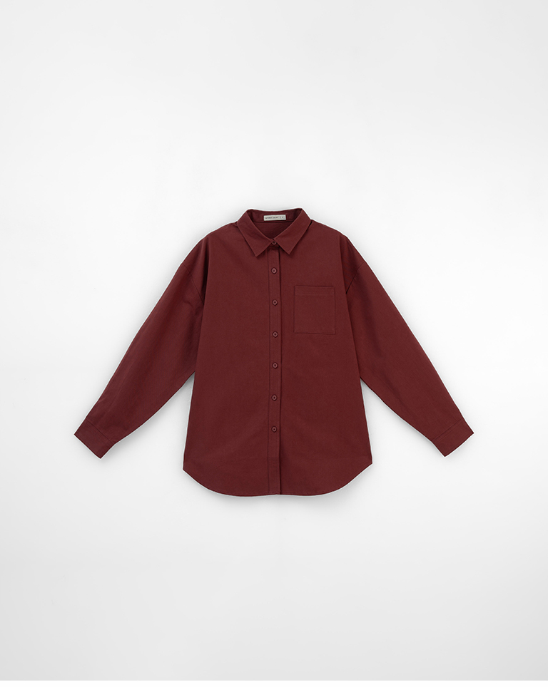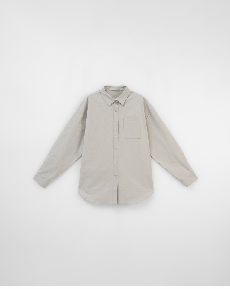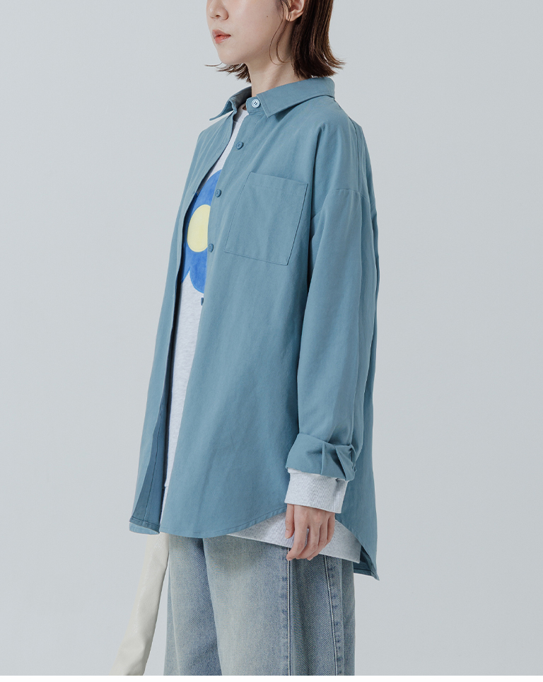 素面單口袋厚棉寬版長袖襯衫
