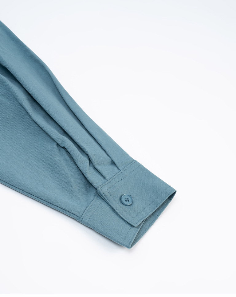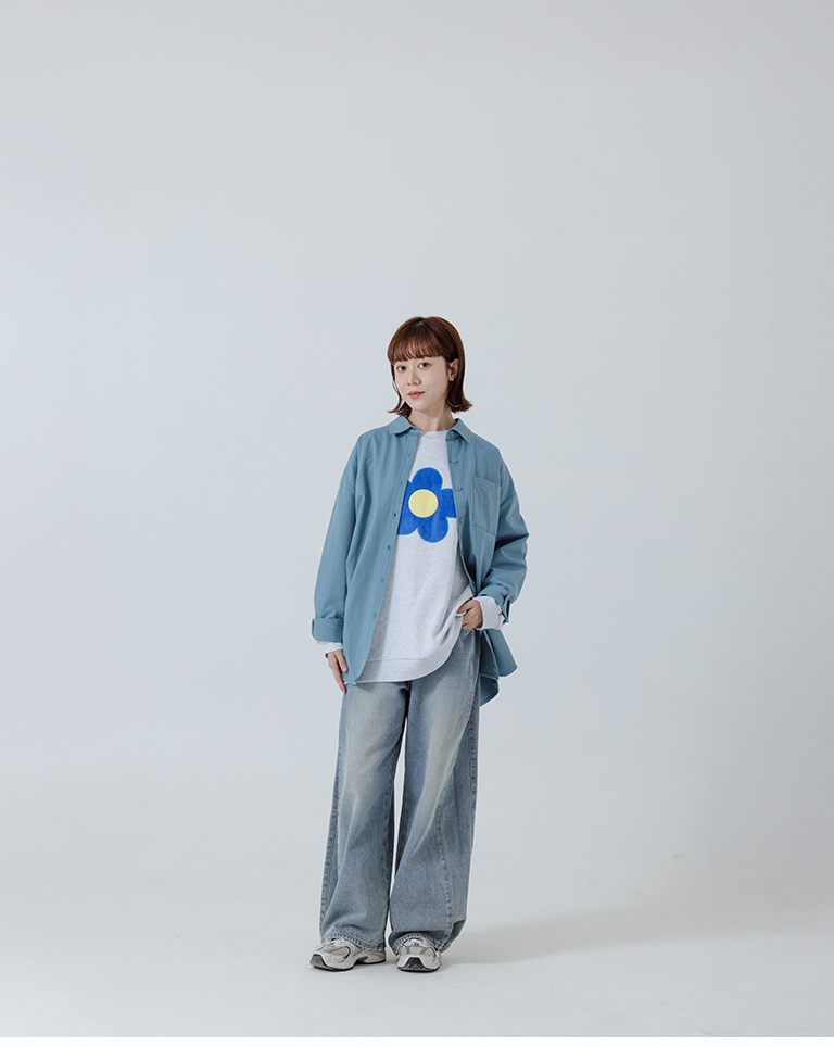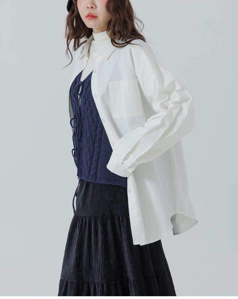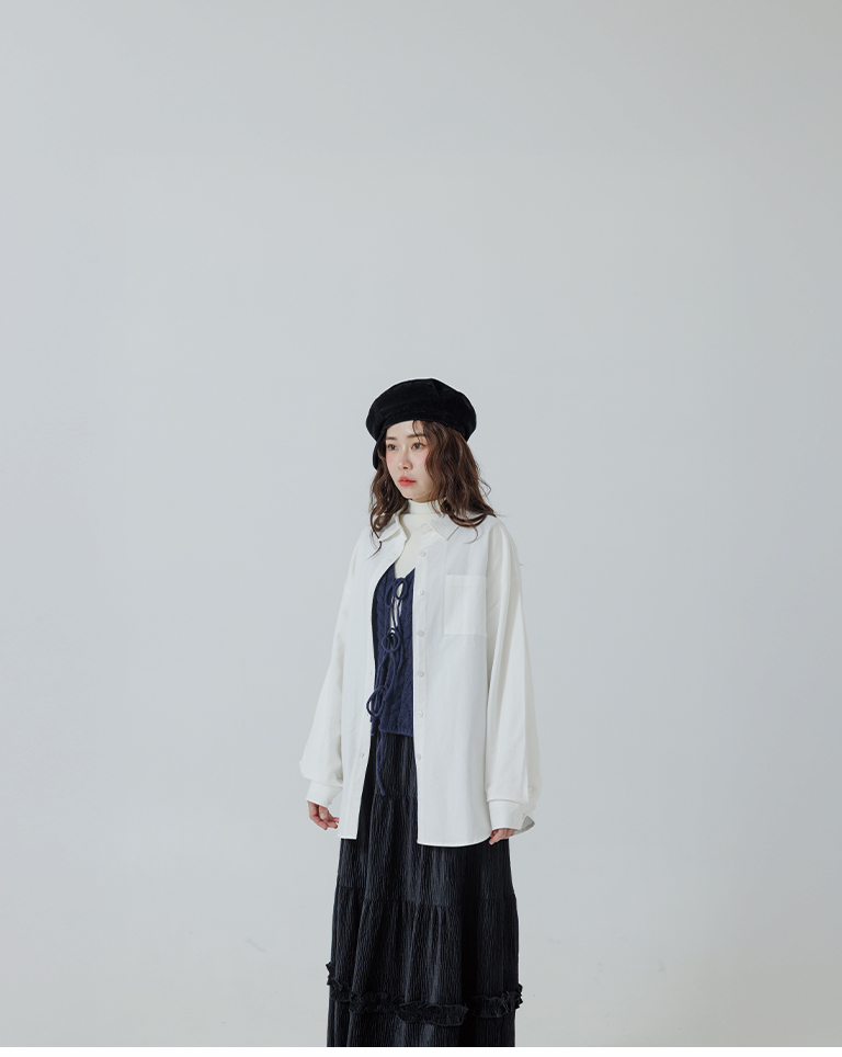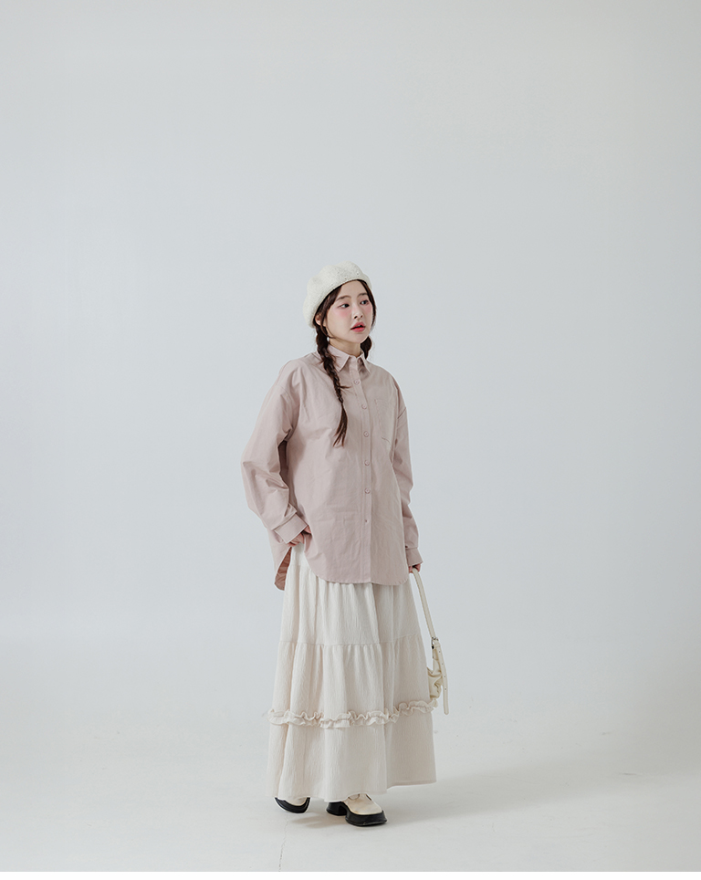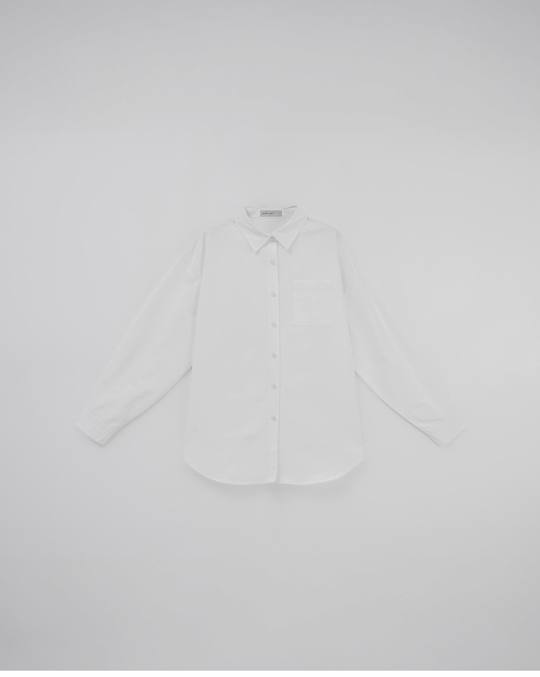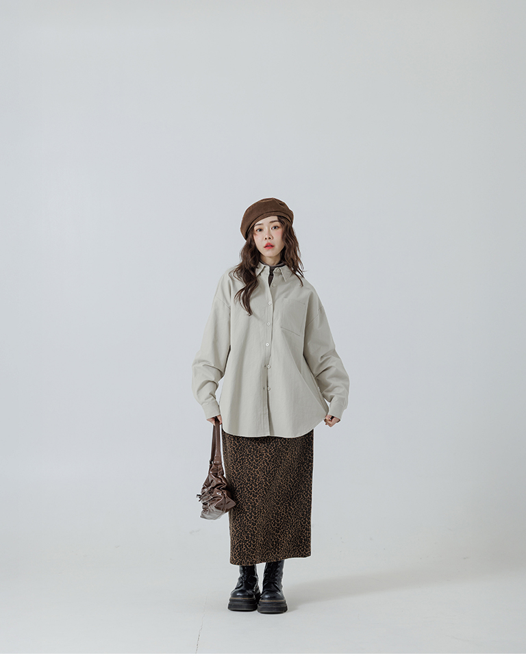 素面單口袋厚棉寬版長袖襯衫