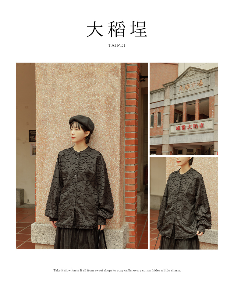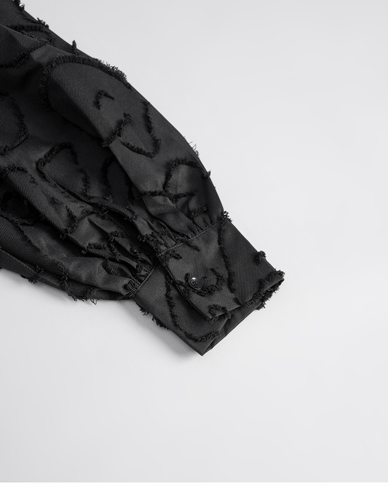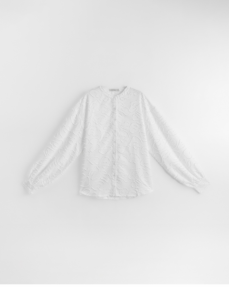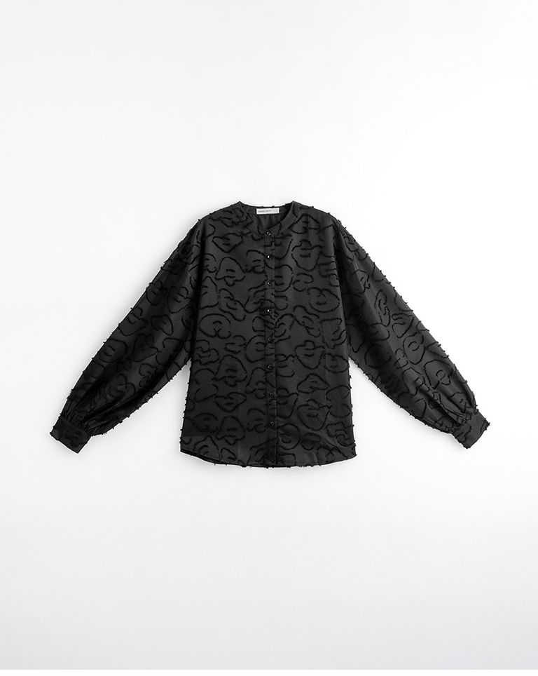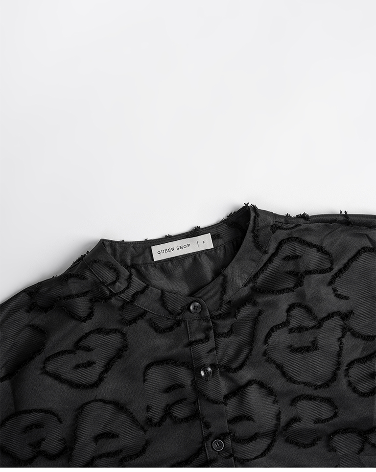 絨毛花朵緹花中山領寬版襯衫