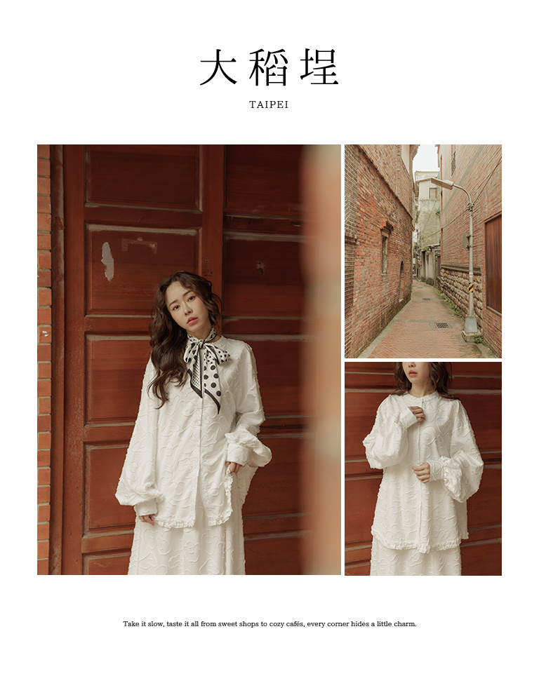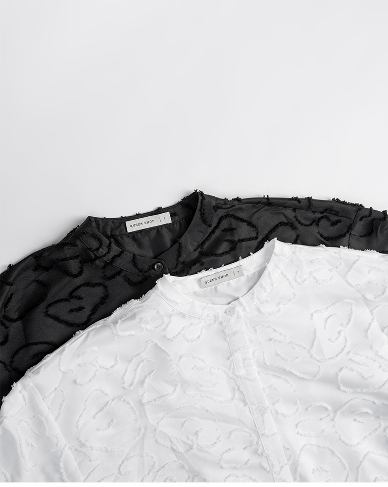絨毛花朵緹花中山領寬版襯衫 兩色售
