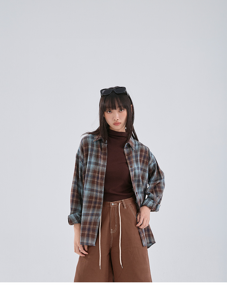 S~L身形實測!分尺寸皺皺木耳邊透膚高領長袖上衣