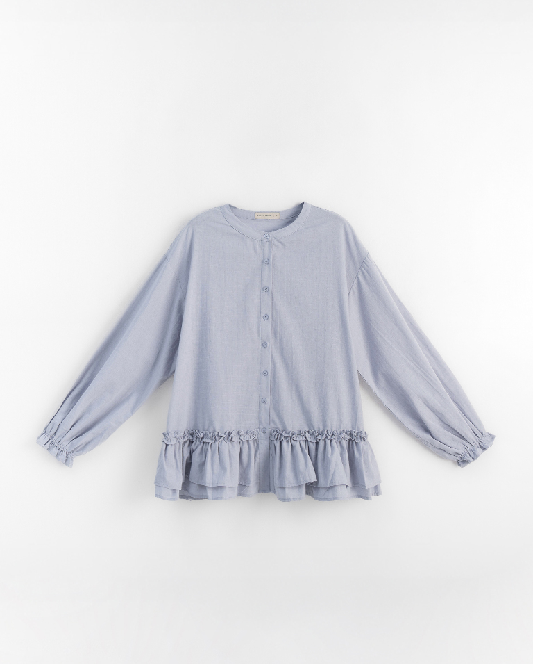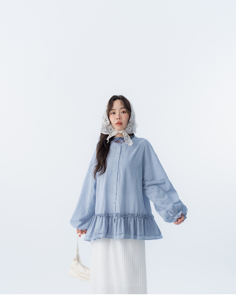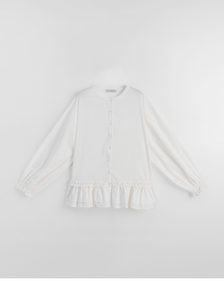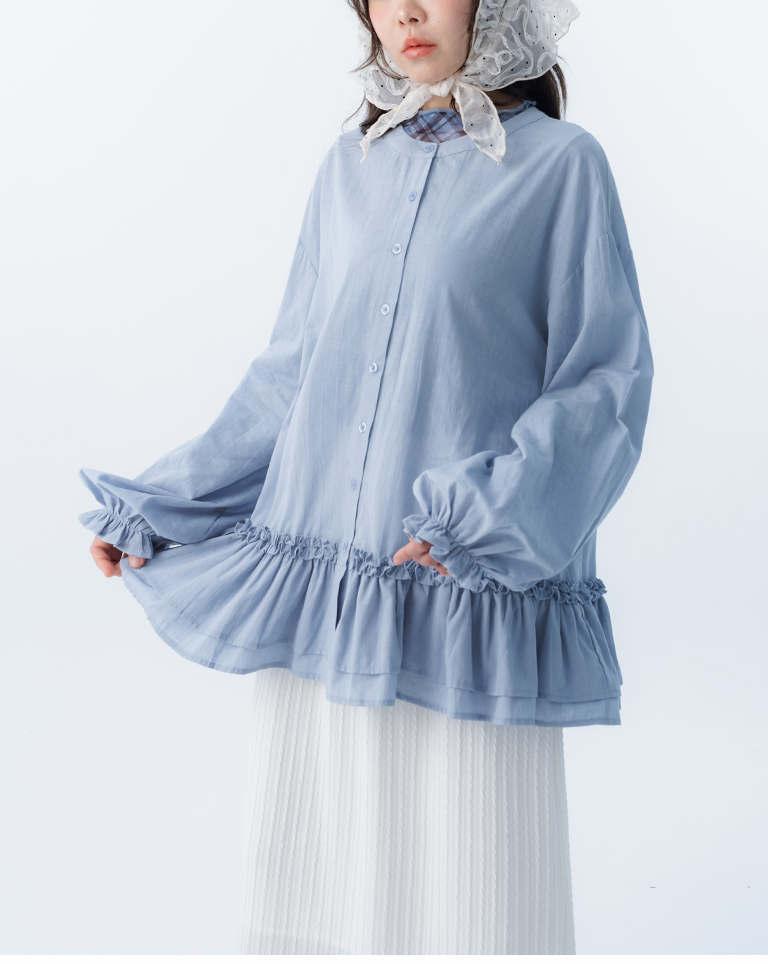 荷葉下襬中山領緹花襯衫