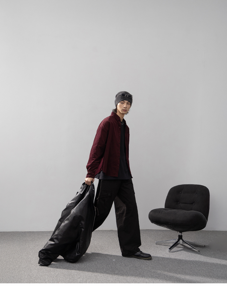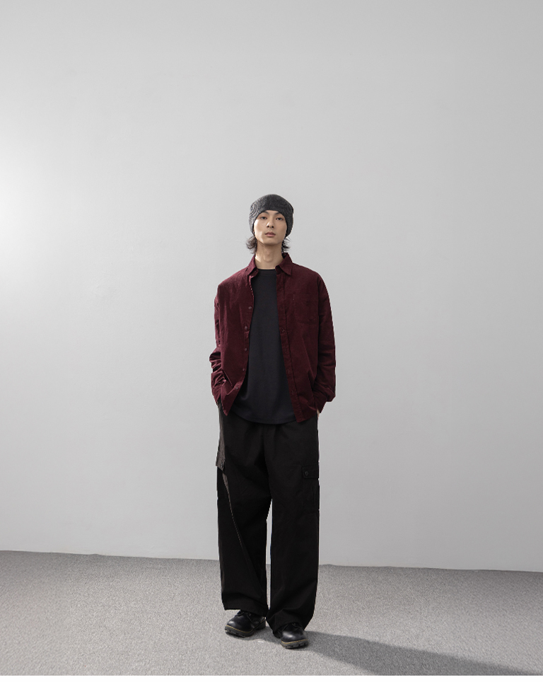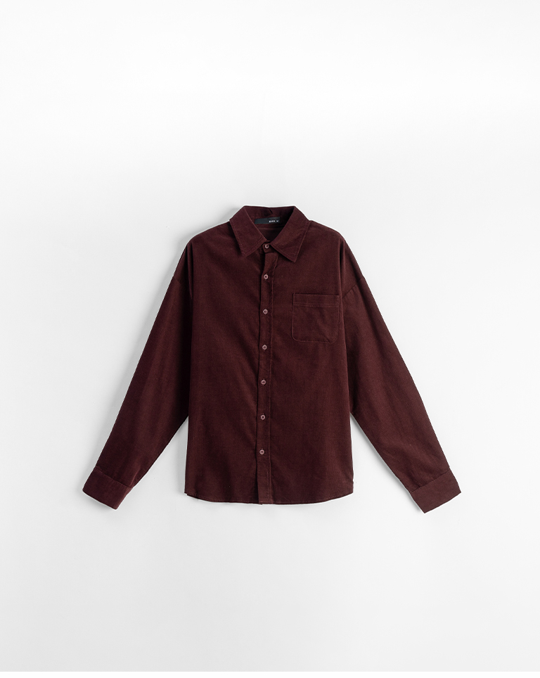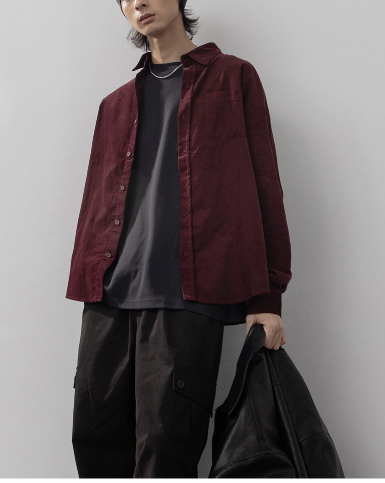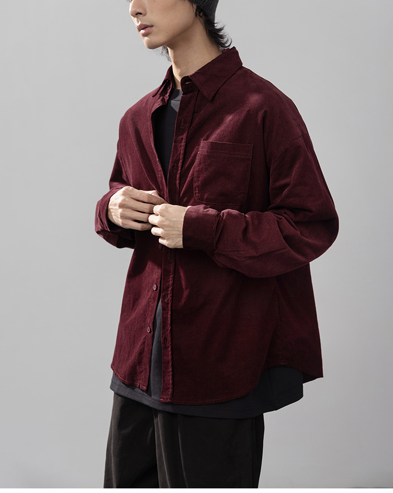 男裝 質感燈芯絨單口袋寬版襯衫-酒紅 S-XL