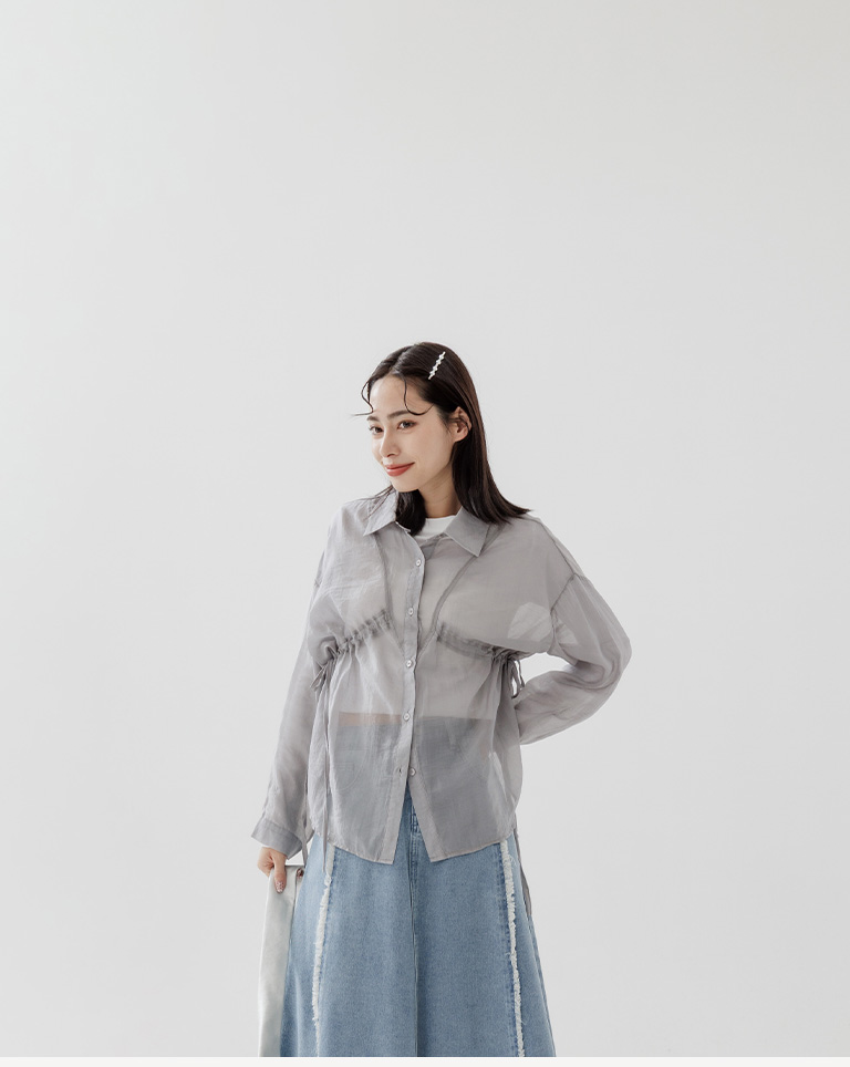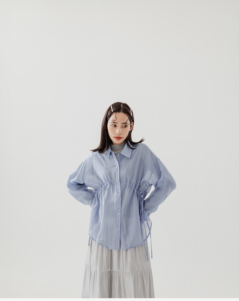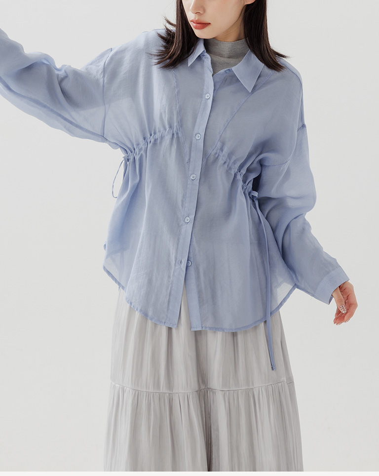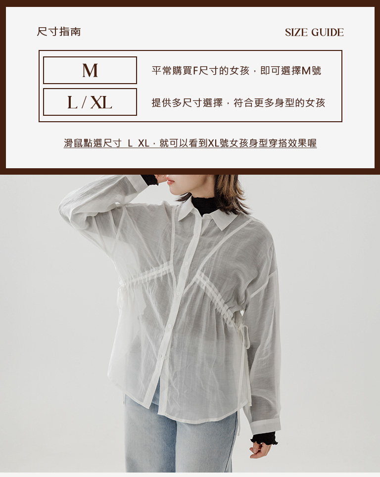 棉花糖 兩側抽皺設計透膚襯衫 三色售M/L/XL