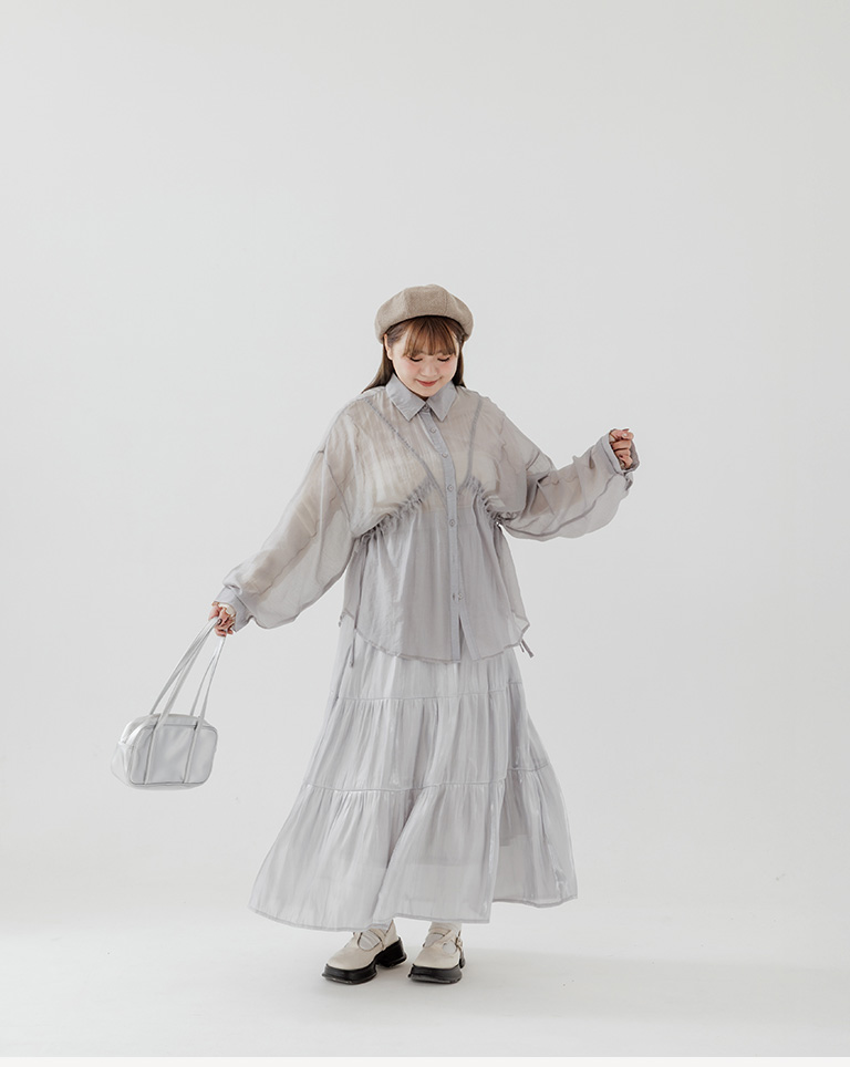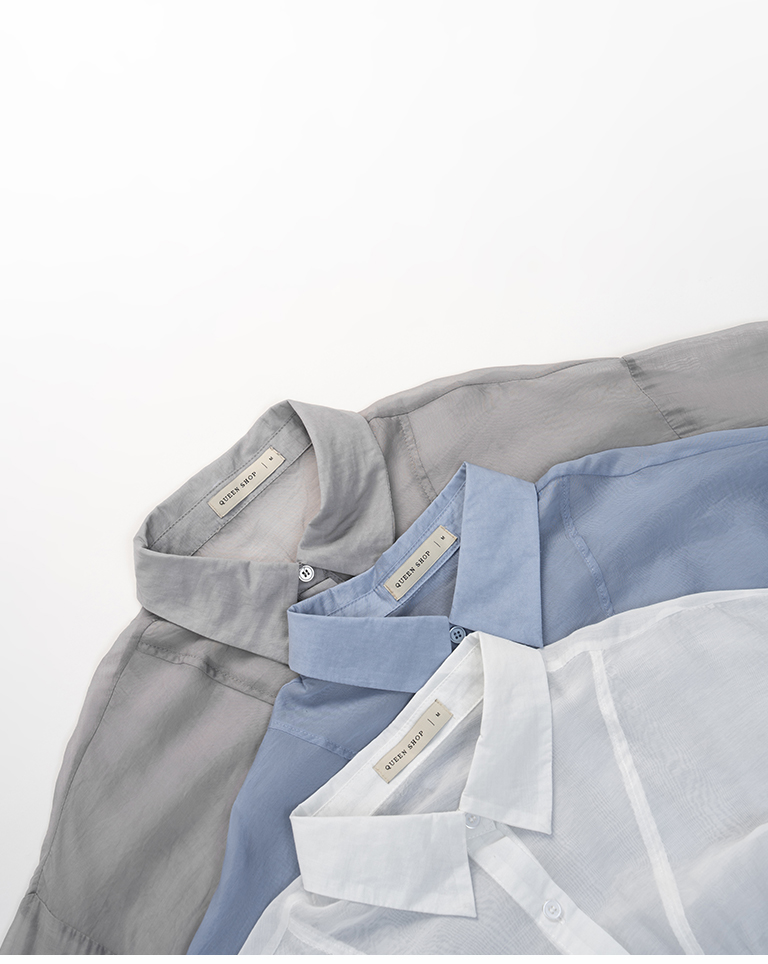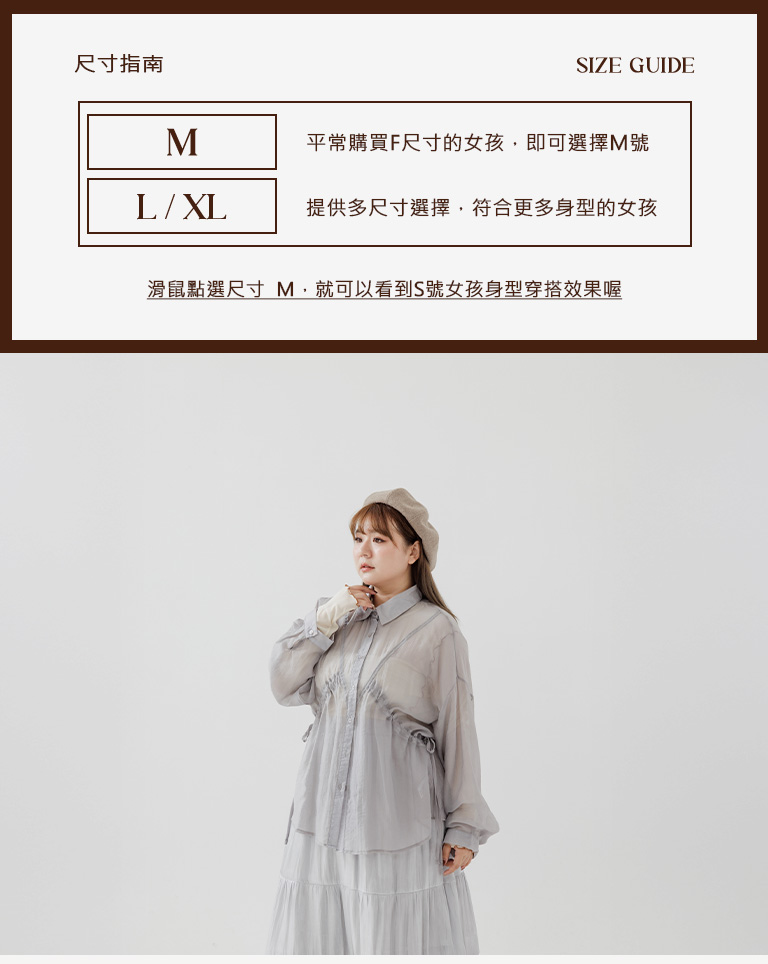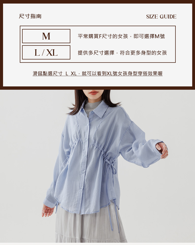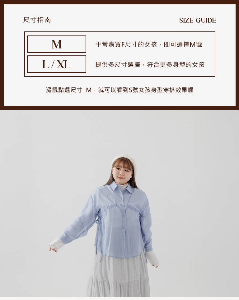 棉花糖 兩側抽皺設計透膚襯衫 三色售M/L/XL