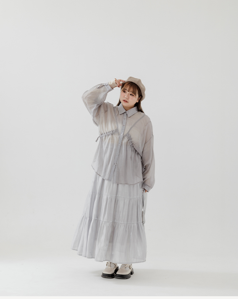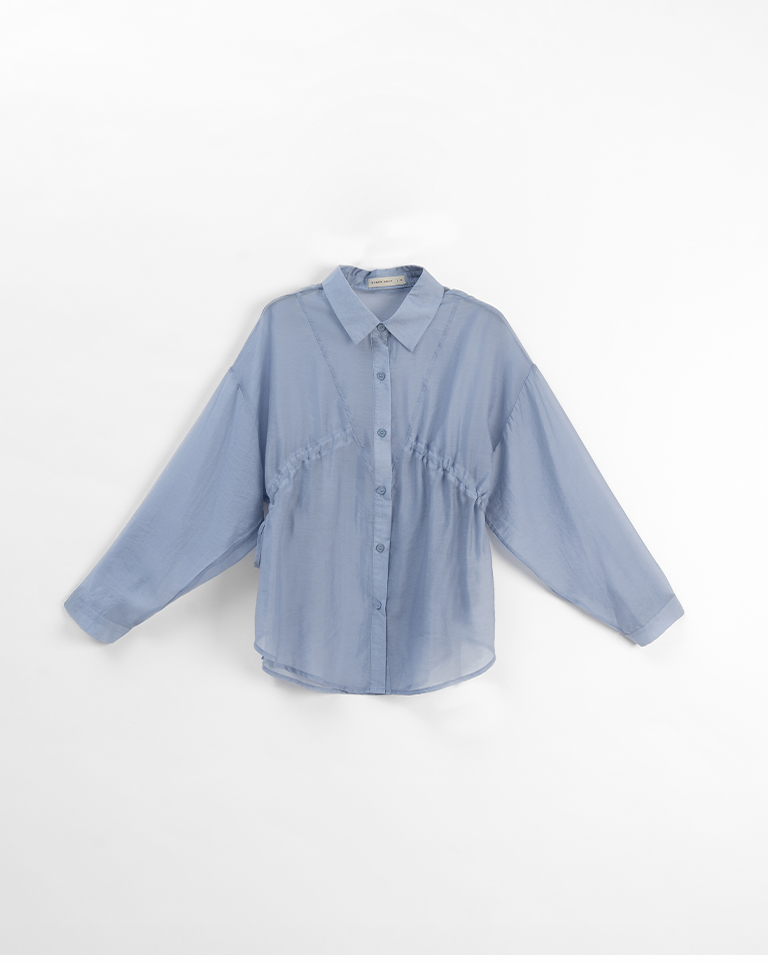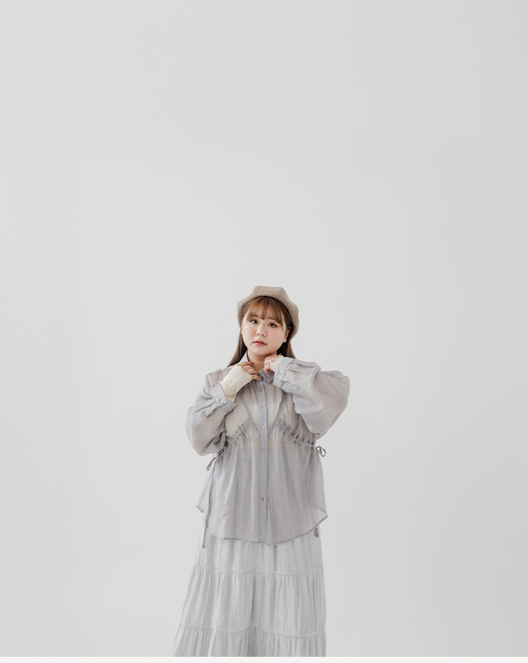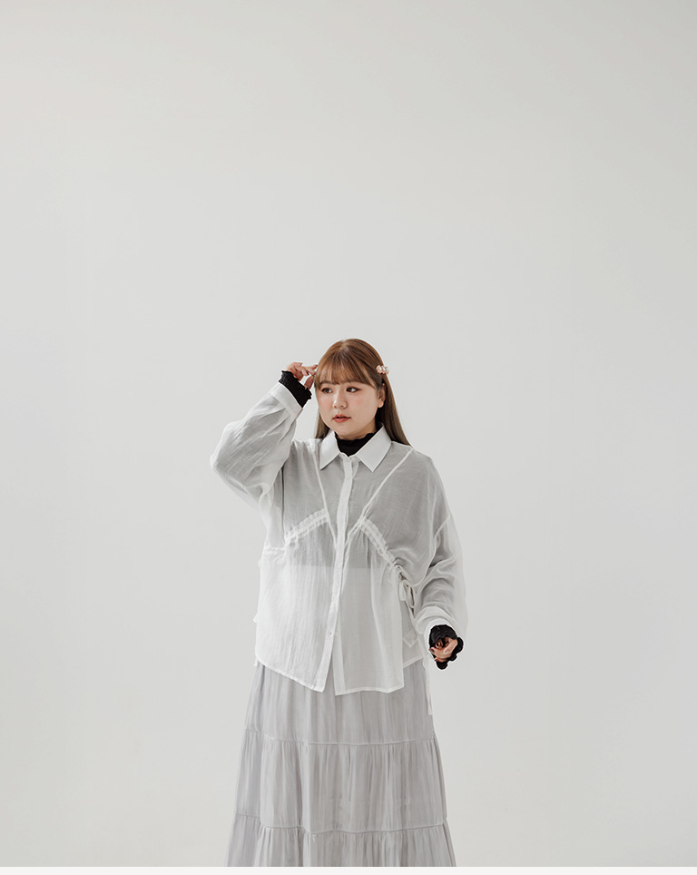 棉花糖 兩側抽皺設計透膚襯衫