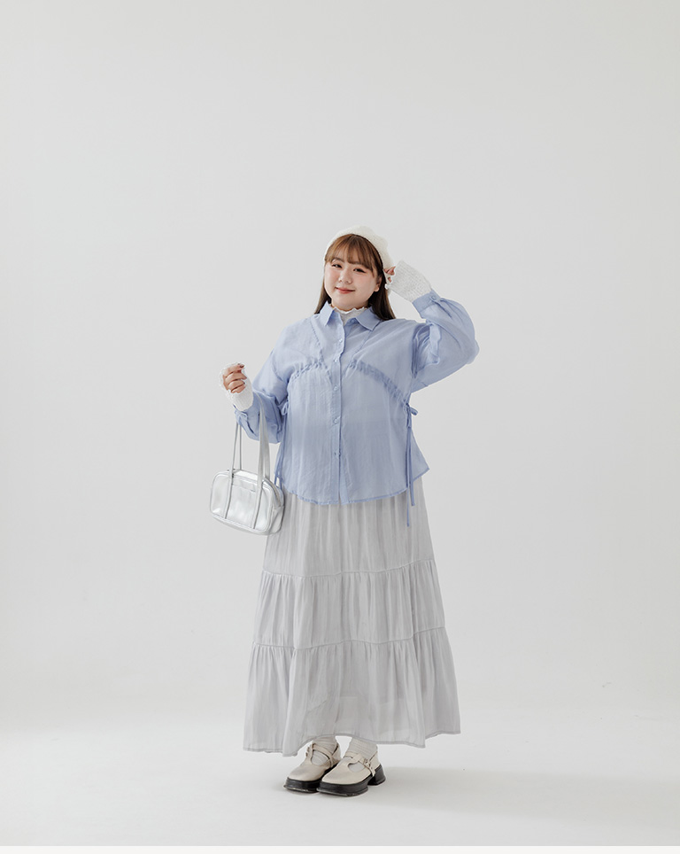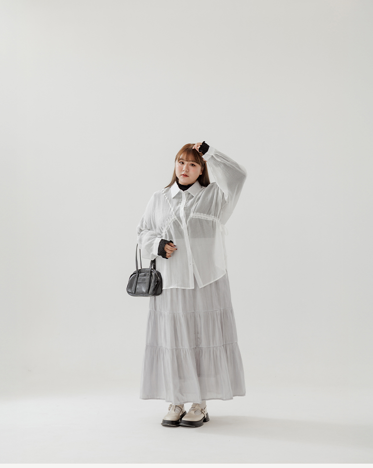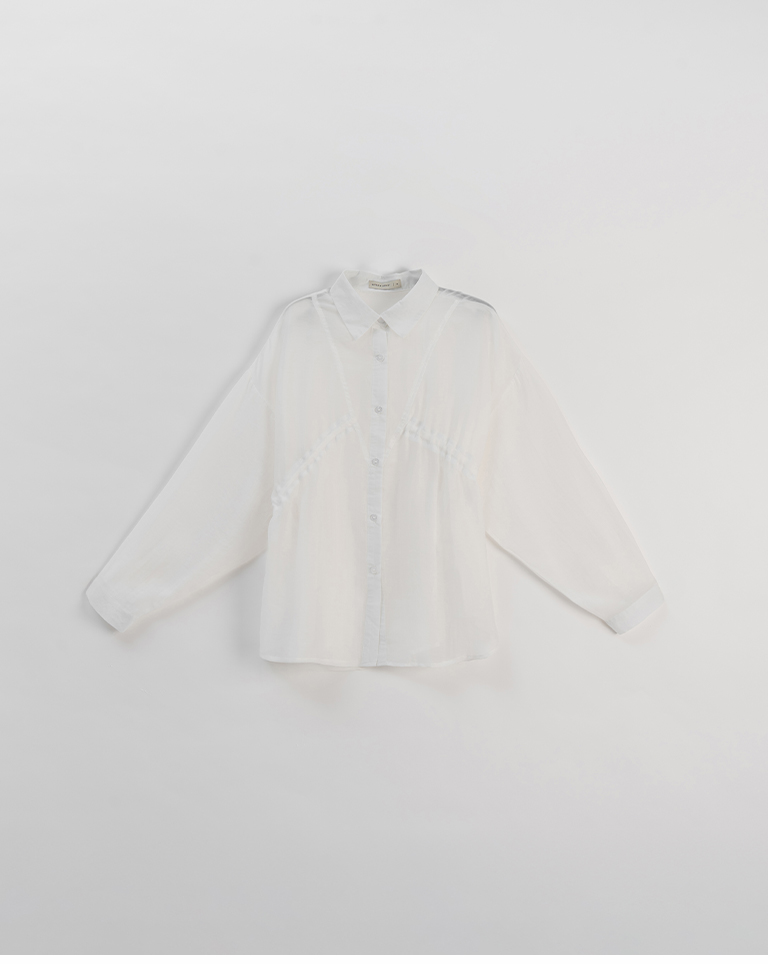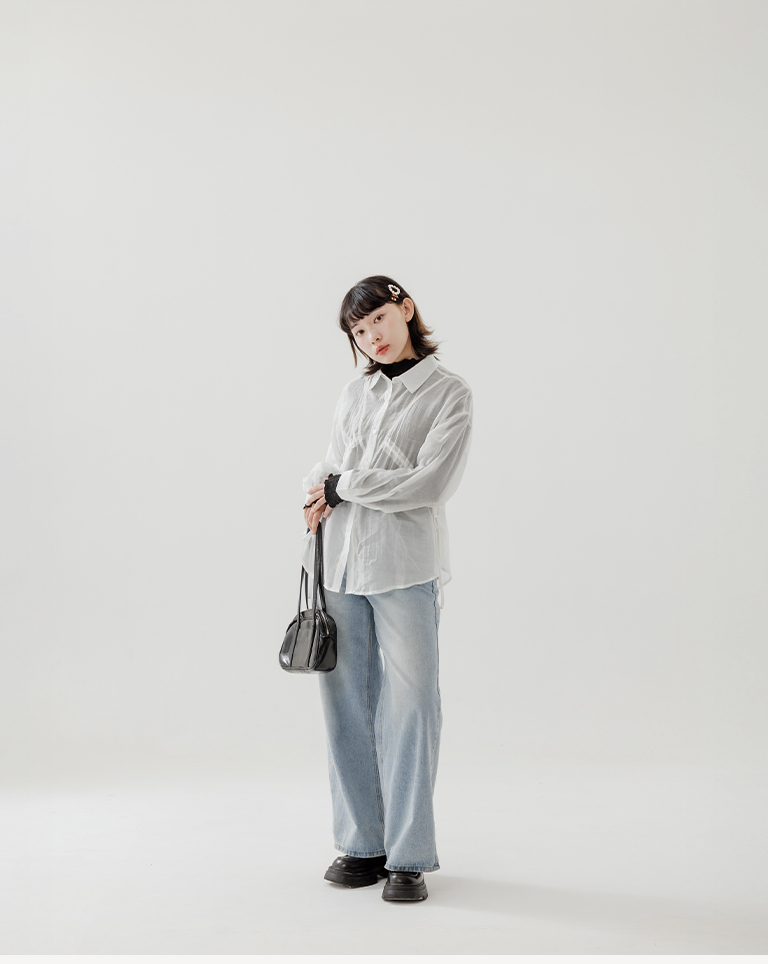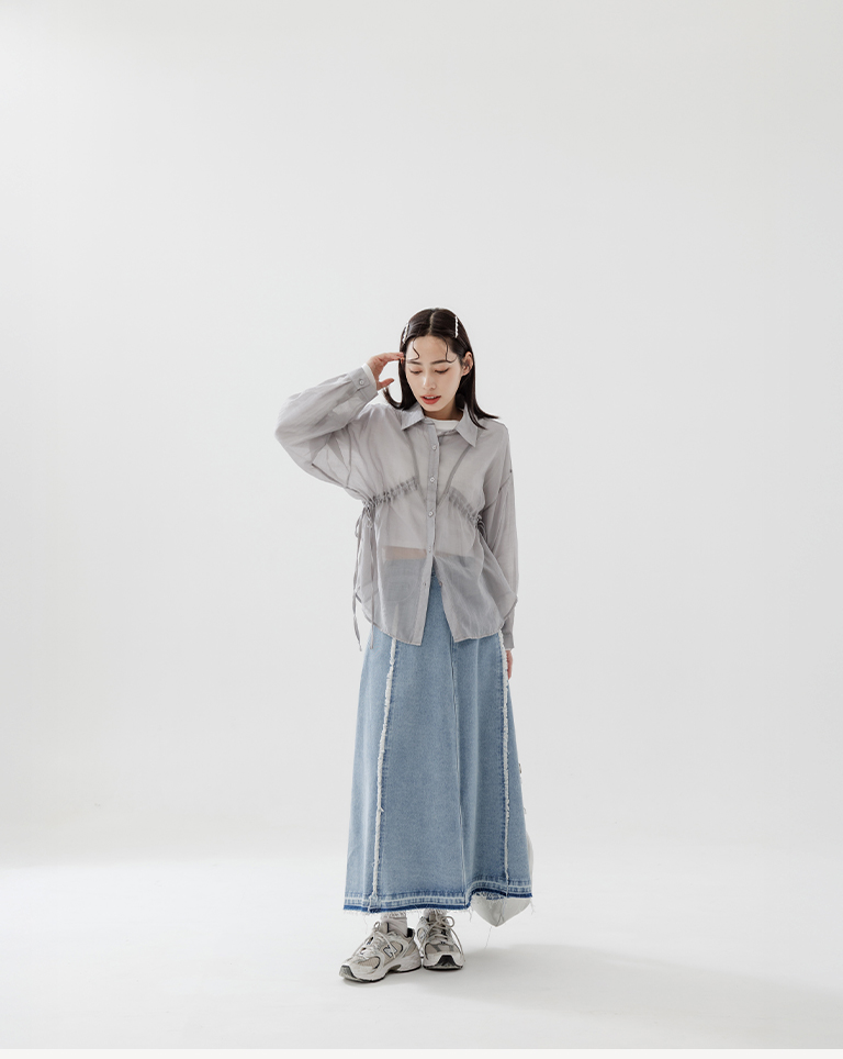 棉花糖 兩側抽皺設計透膚襯衫