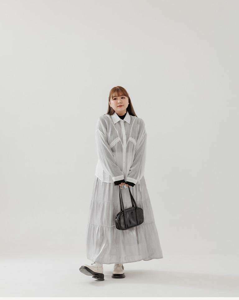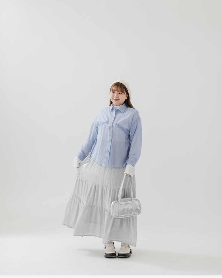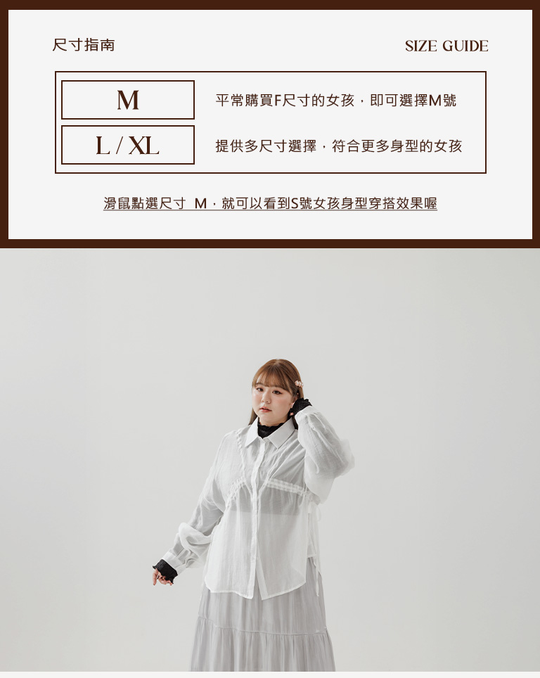 S~L身形實測!分尺寸皺皺木耳邊透膚高領長袖上衣