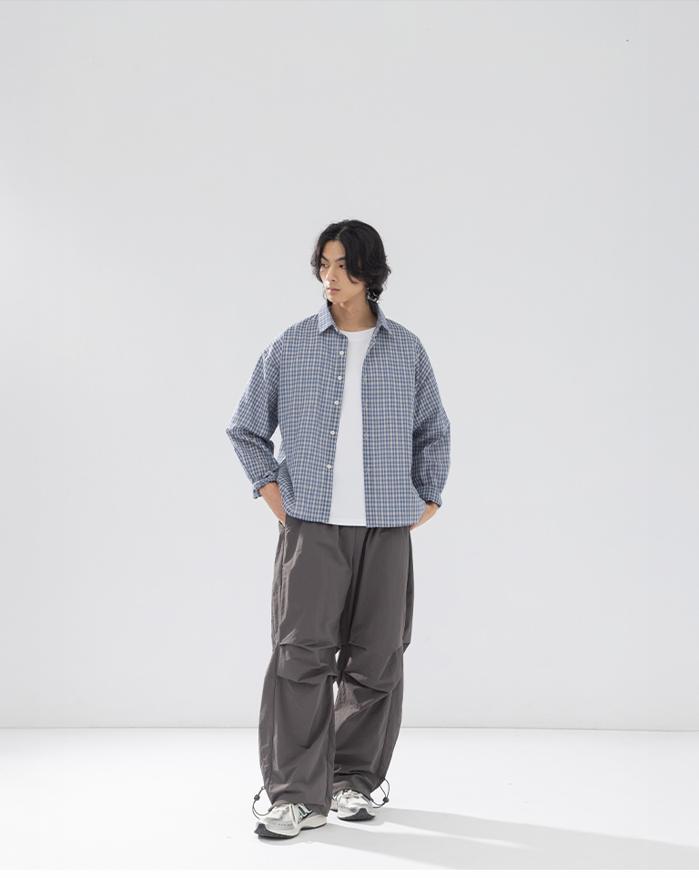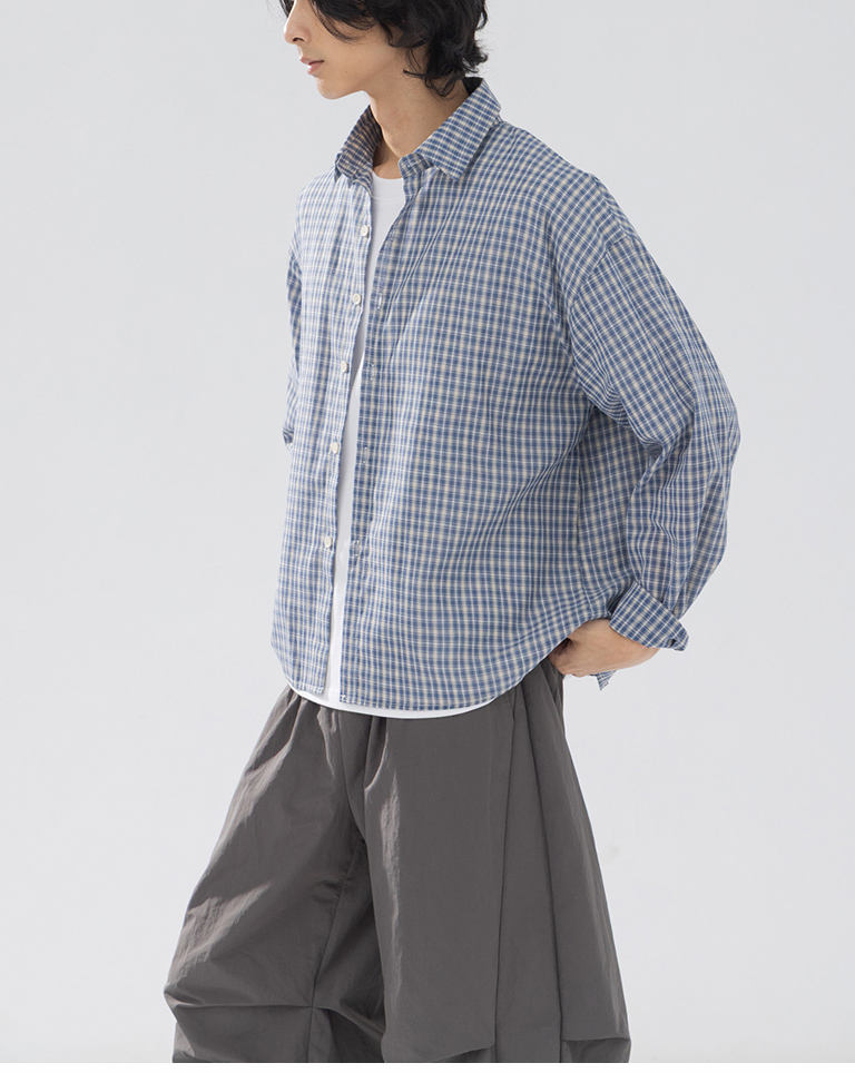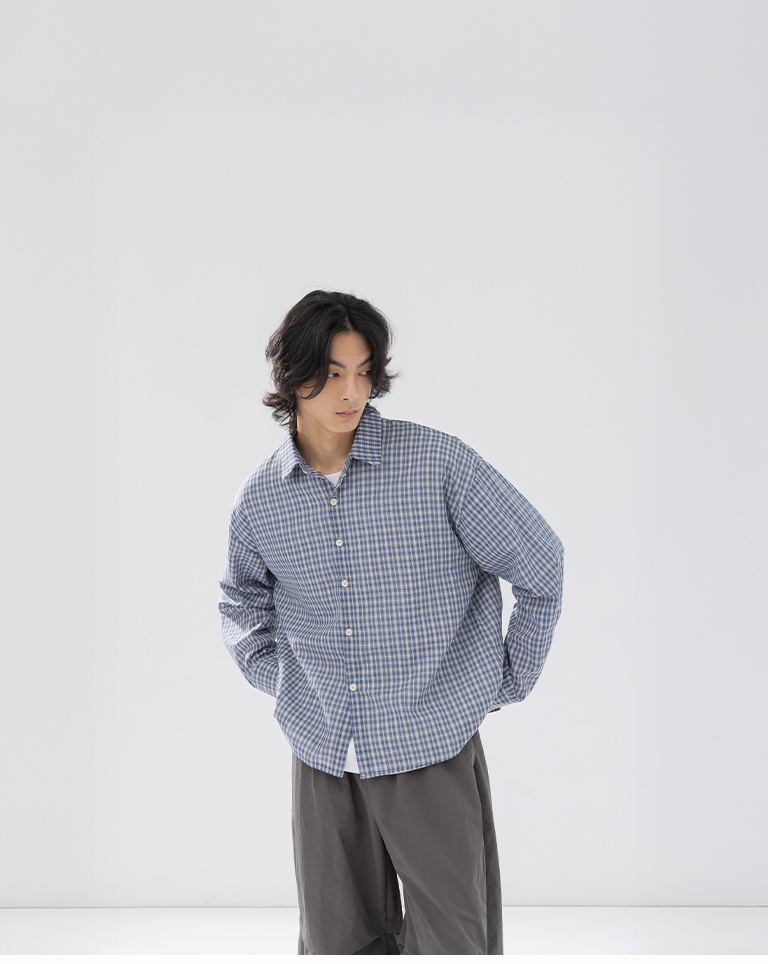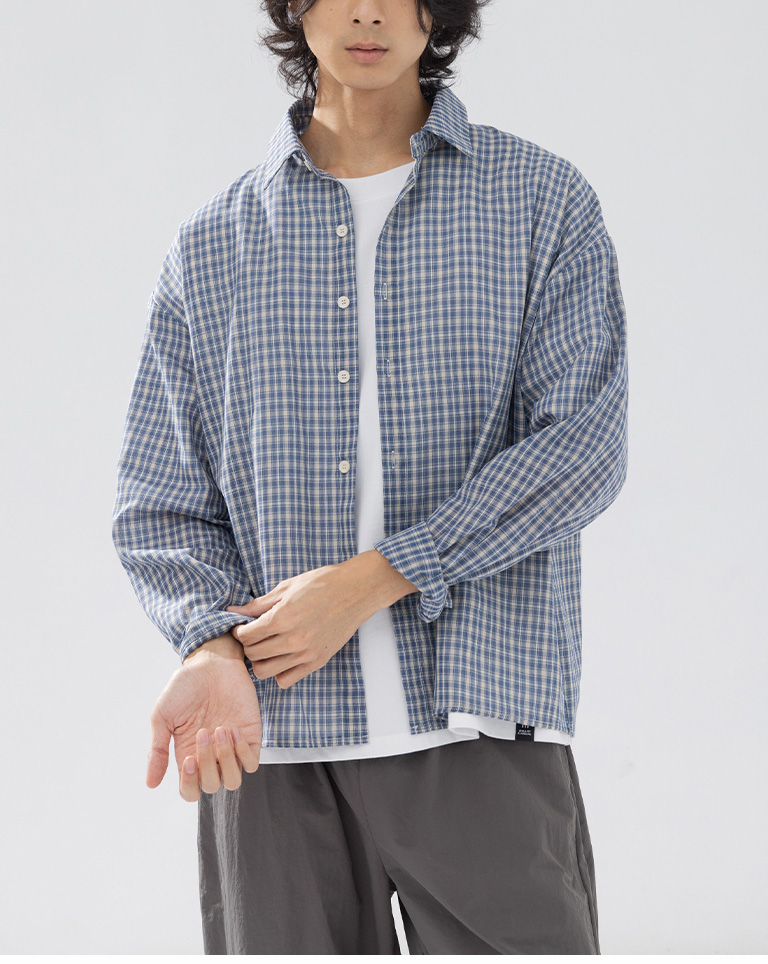 男裝 復古配色格紋設計長袖襯衫 M/L/XL