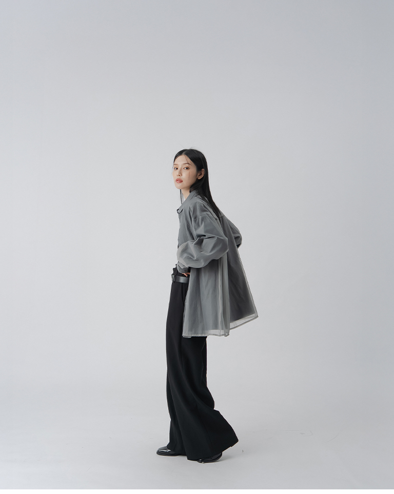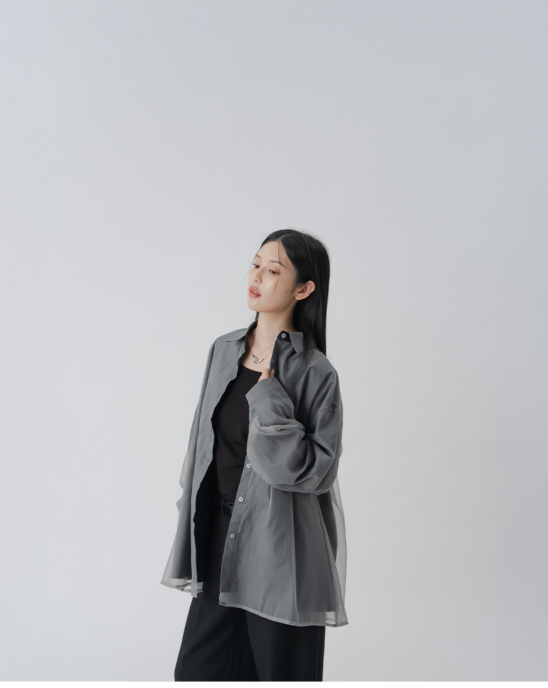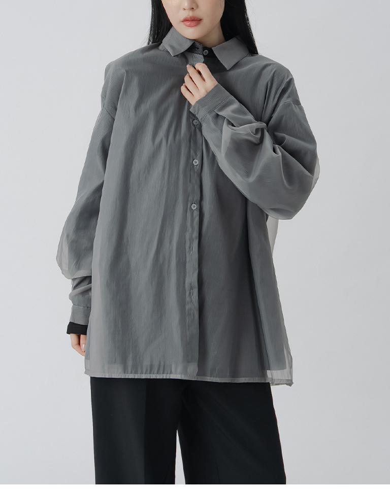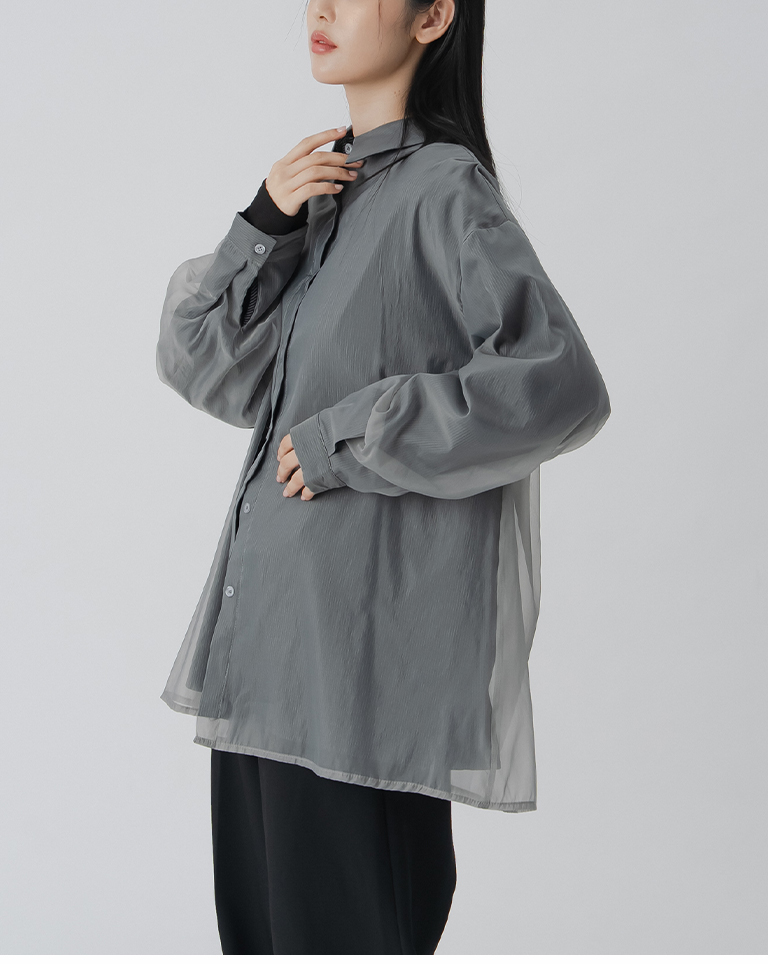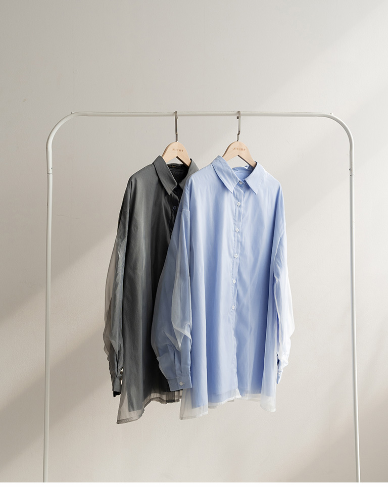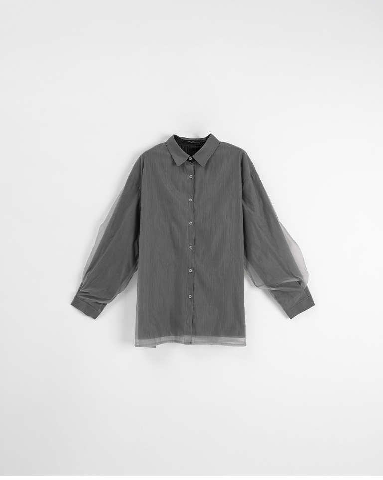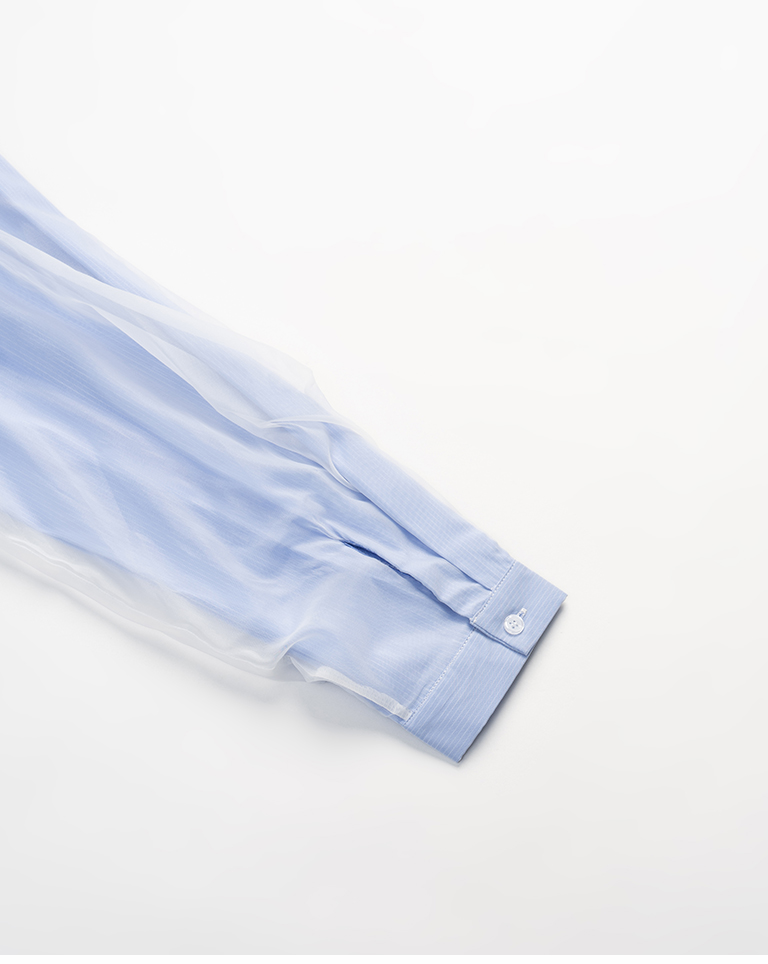 雙層透紗條紋設計襯衫