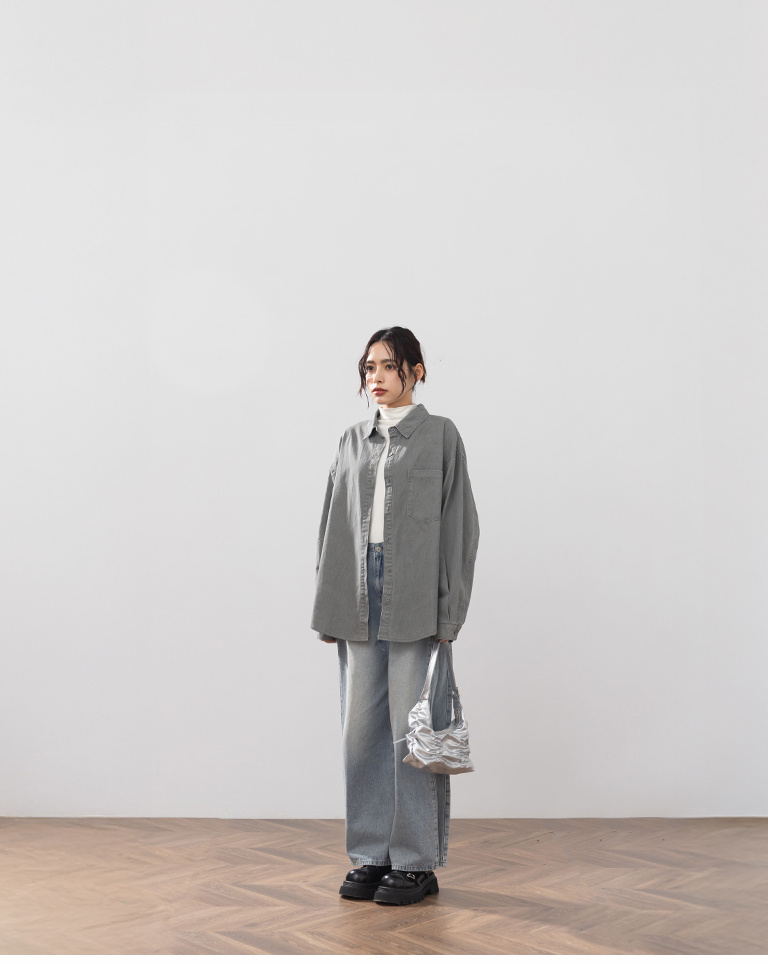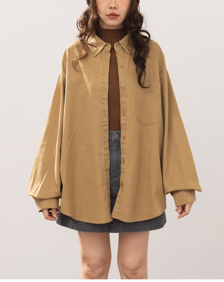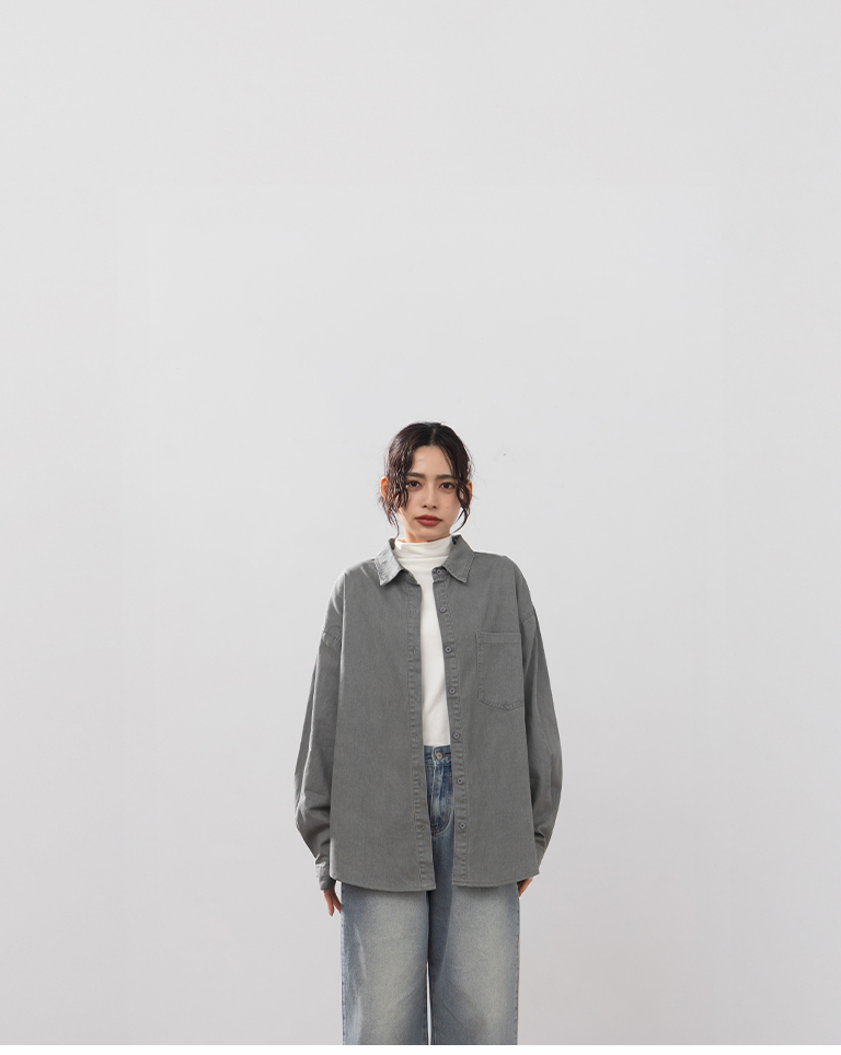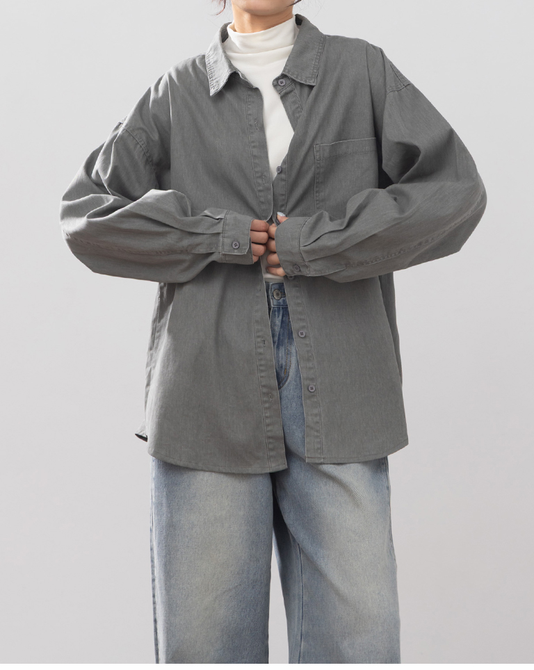 洗水刷色設計長袖襯衫