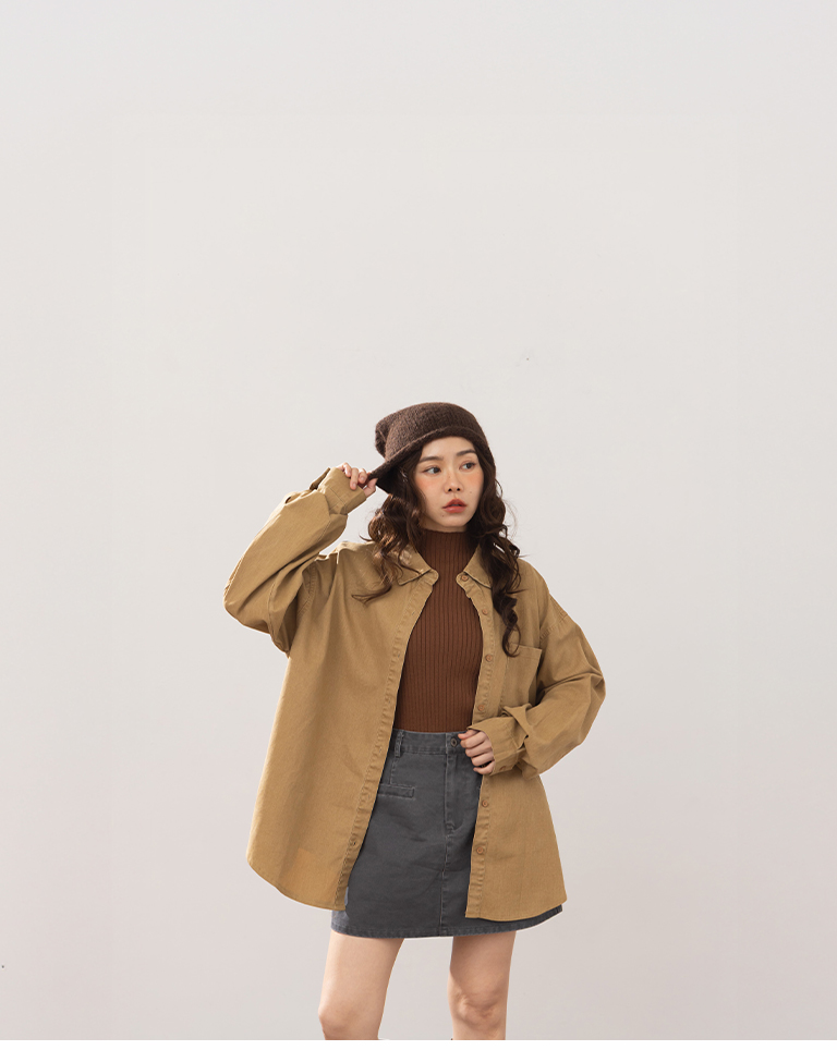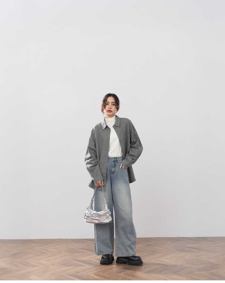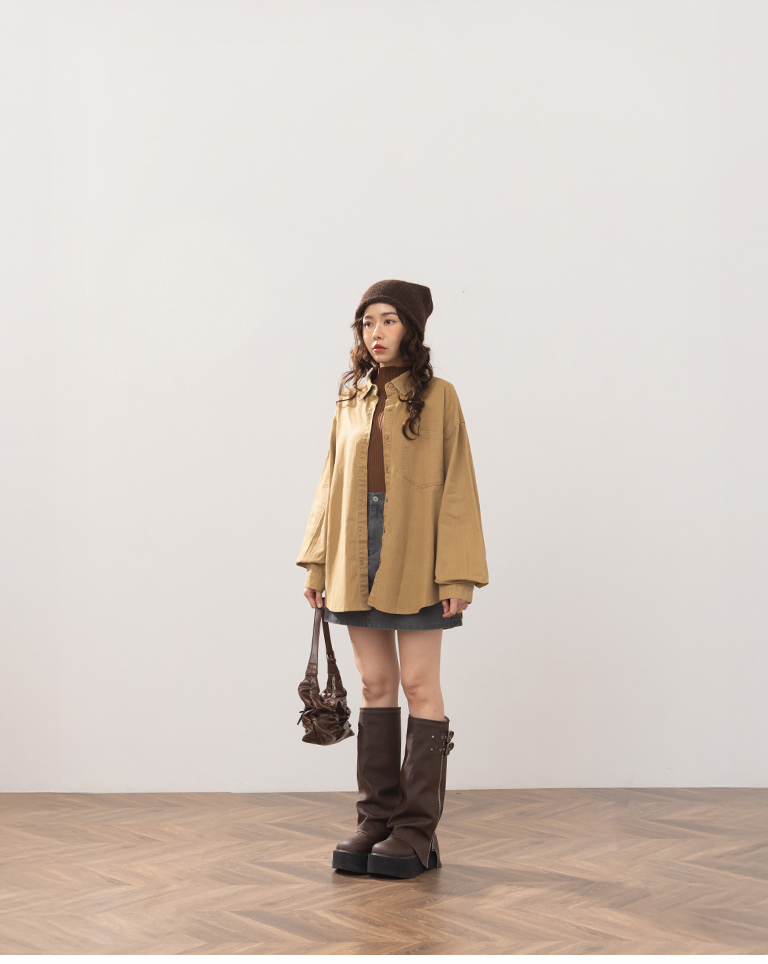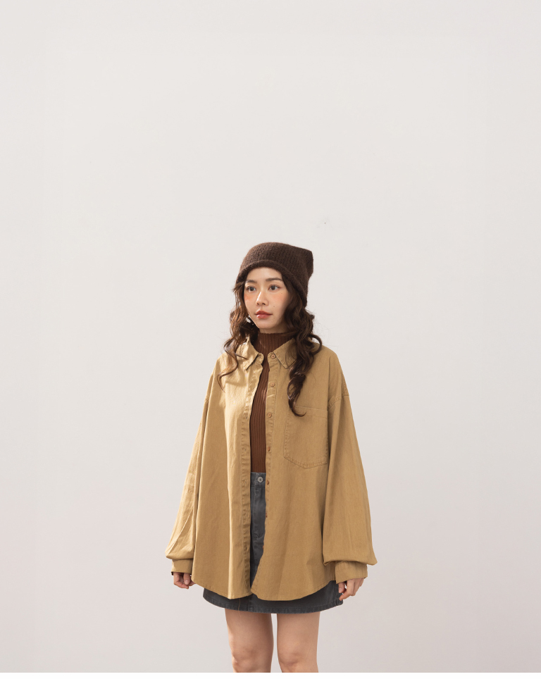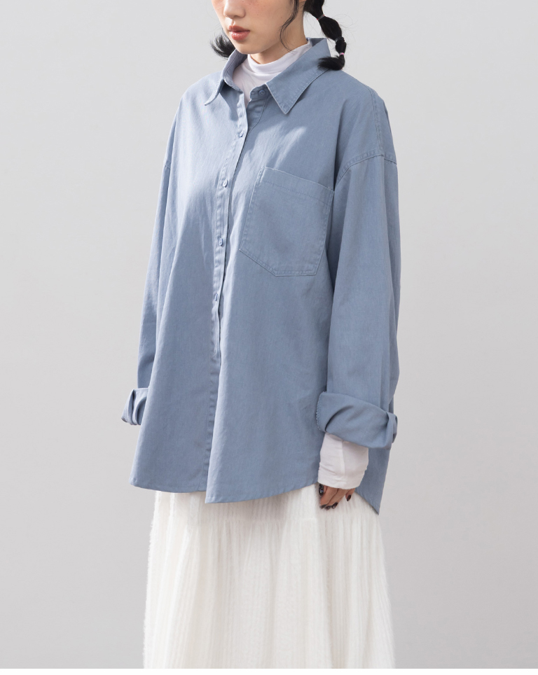 洗水刷色設計長袖襯衫