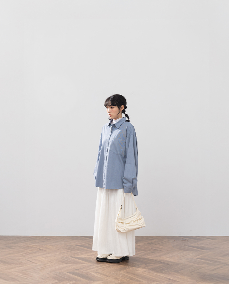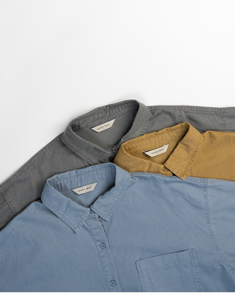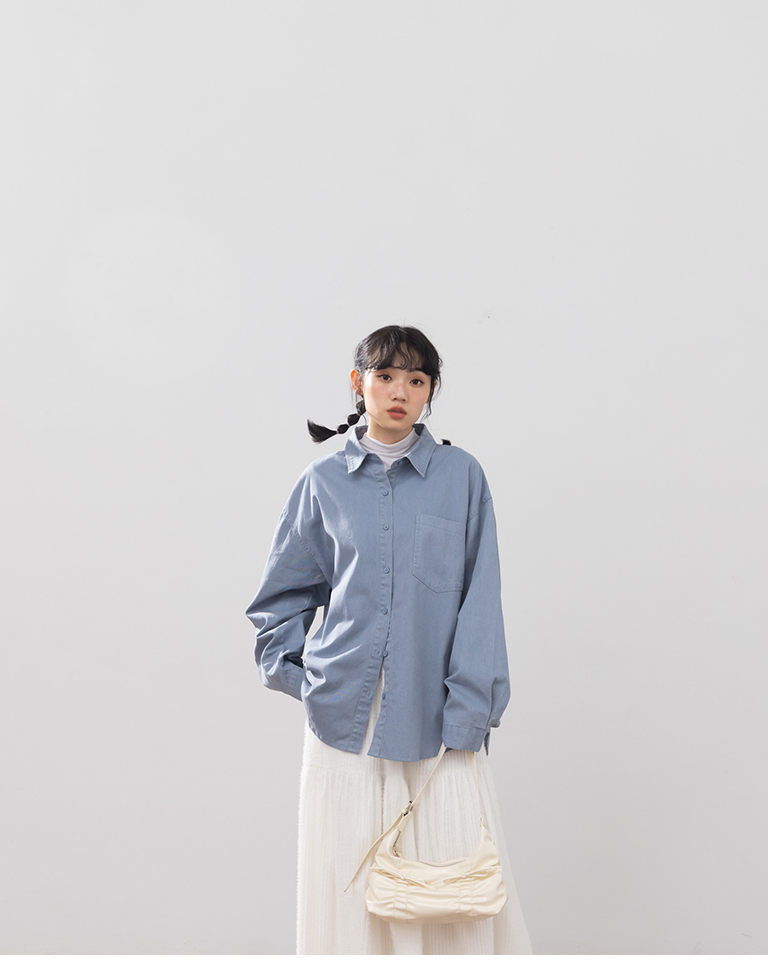 洗水刷色設計長袖襯衫 三色售