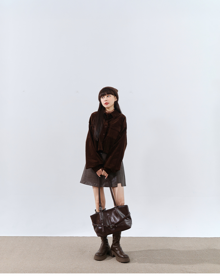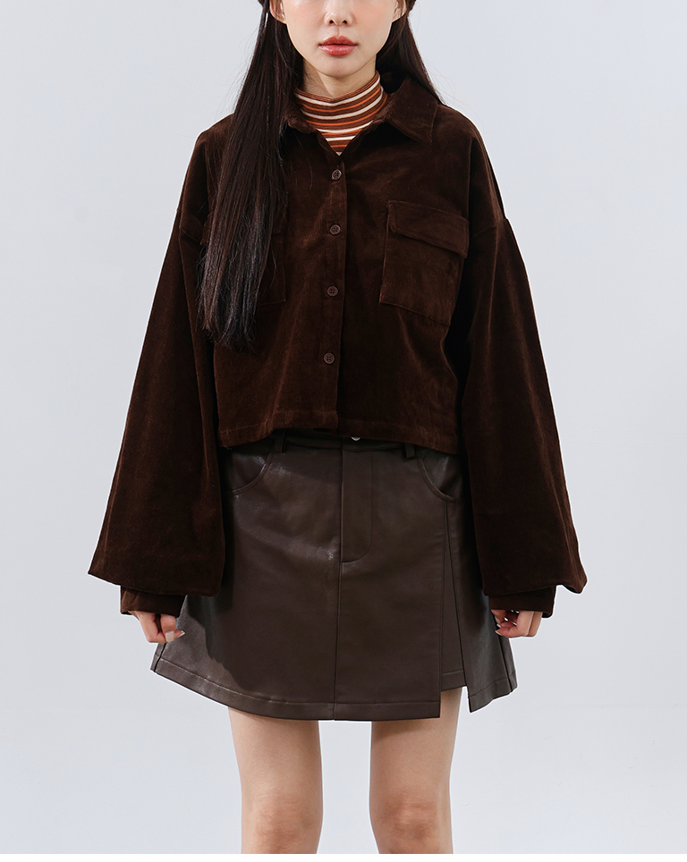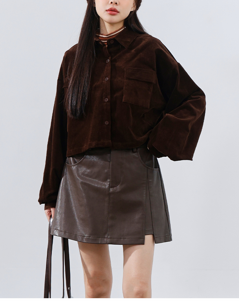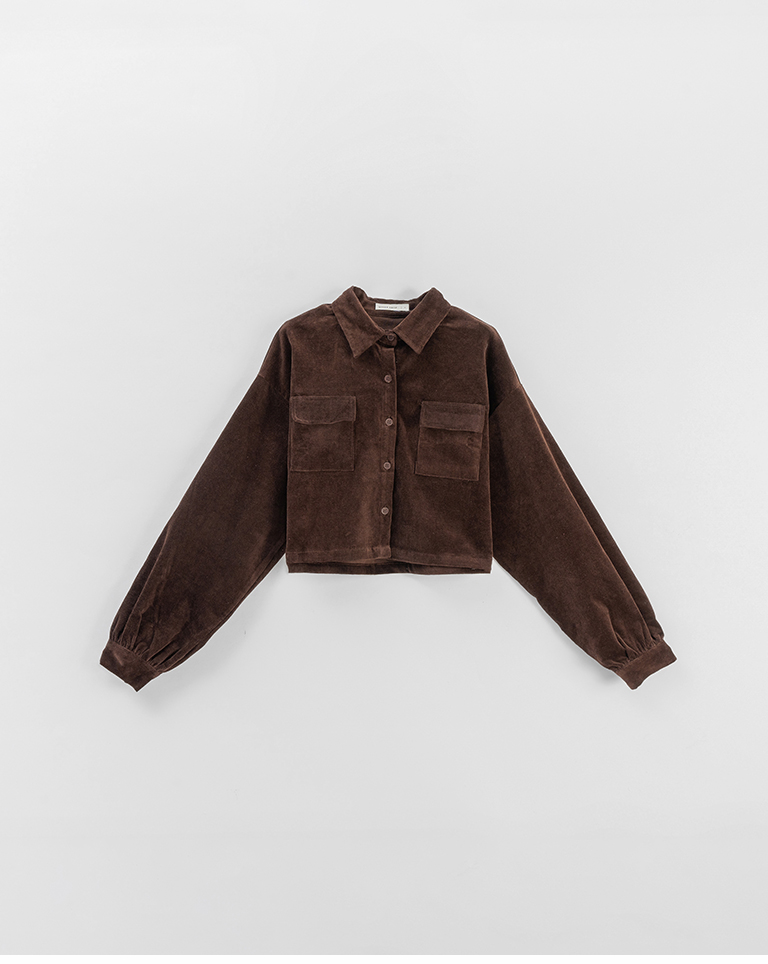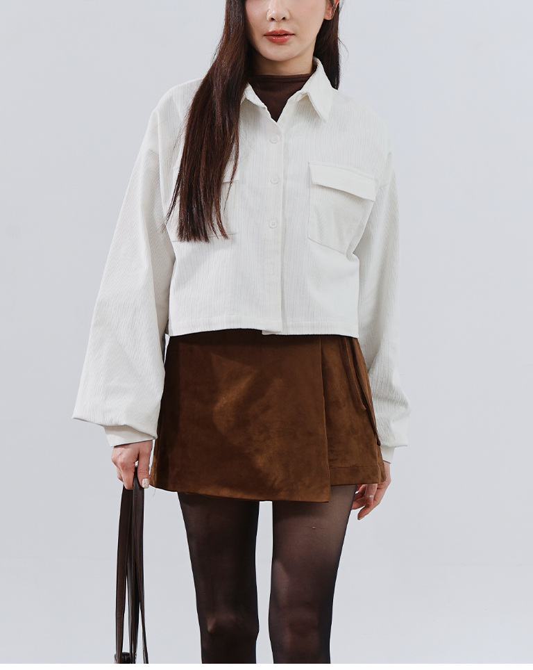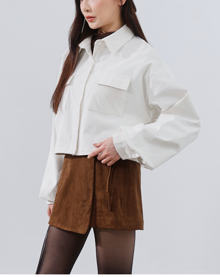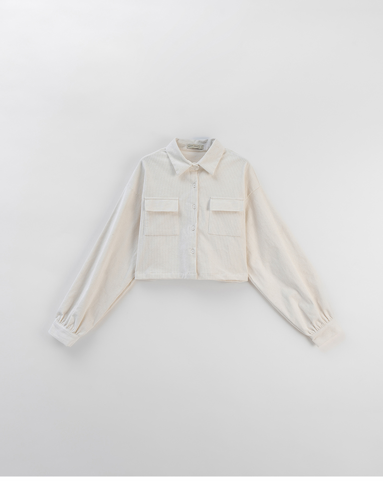 燈芯絨雙口袋短版長袖襯衫