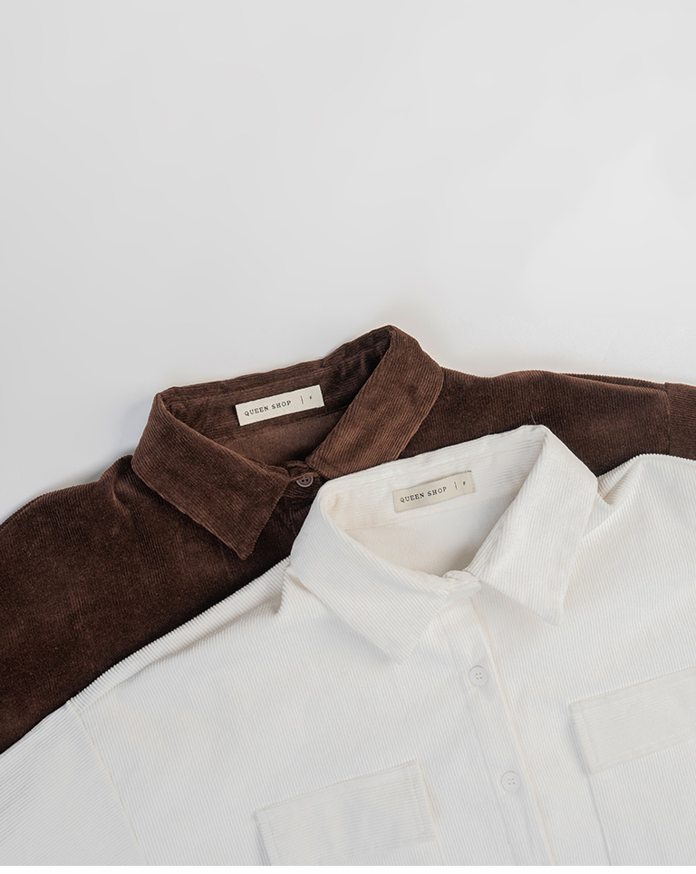 燈芯絨雙口袋短版長袖襯衫 兩色售