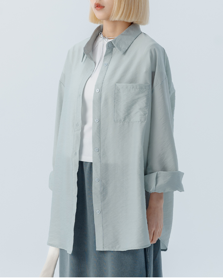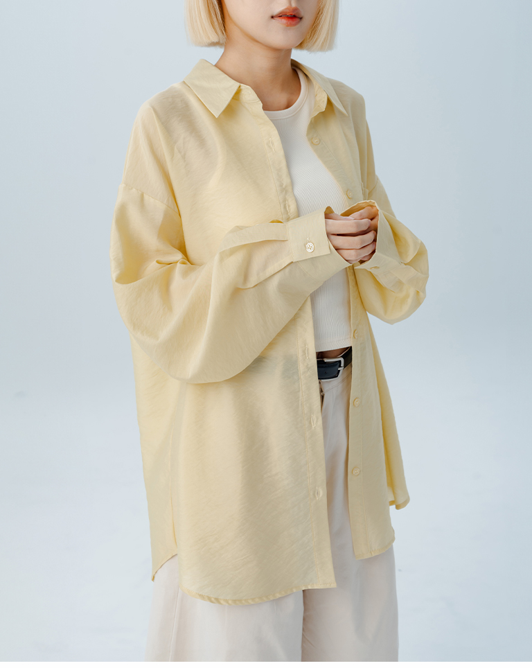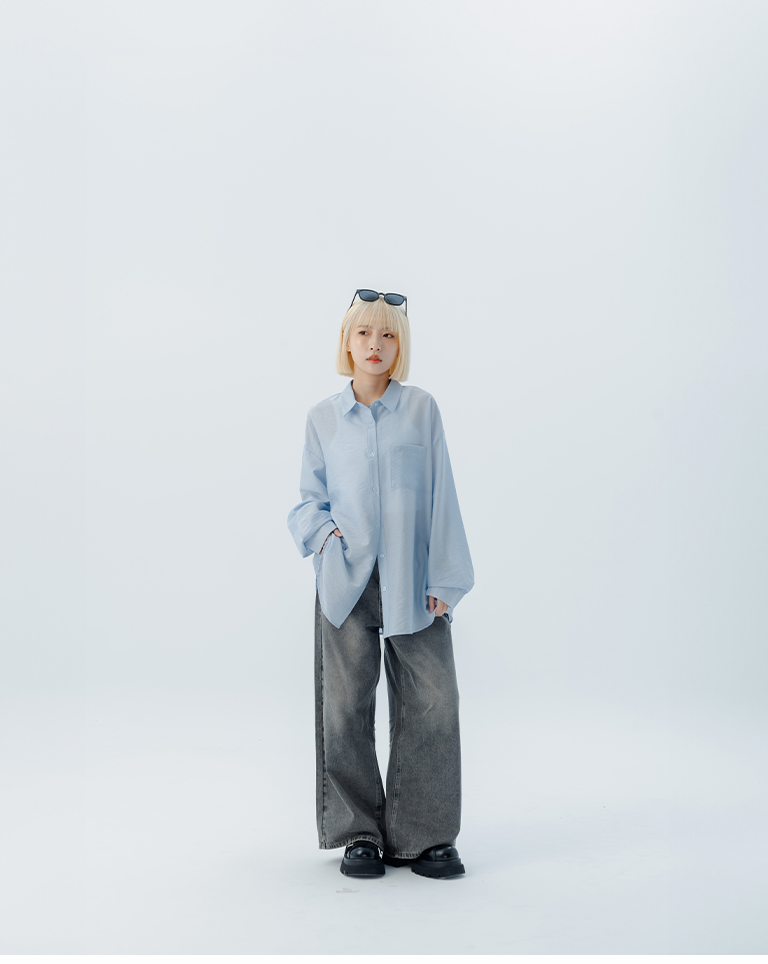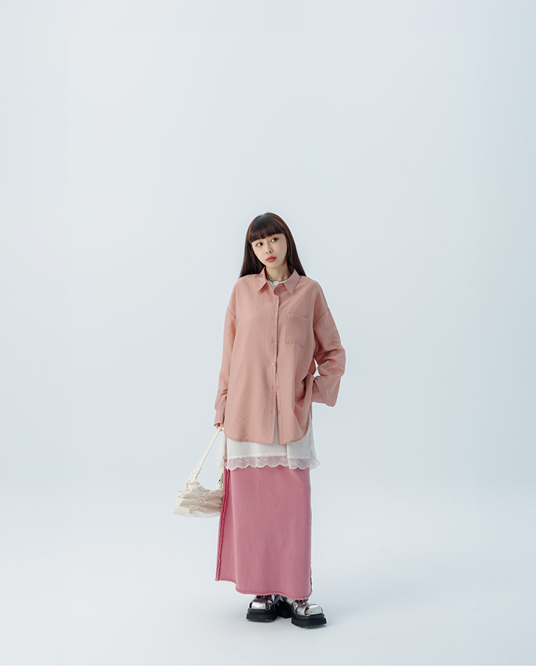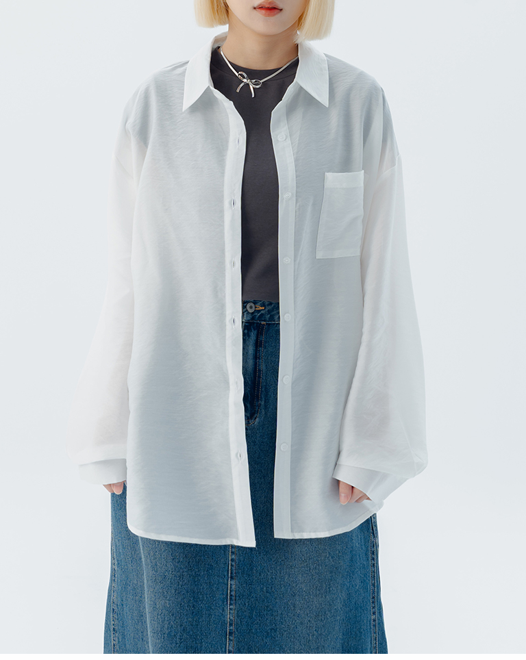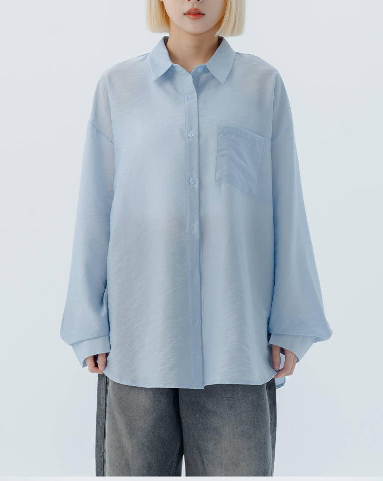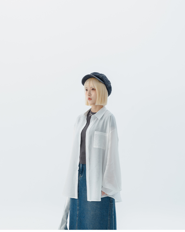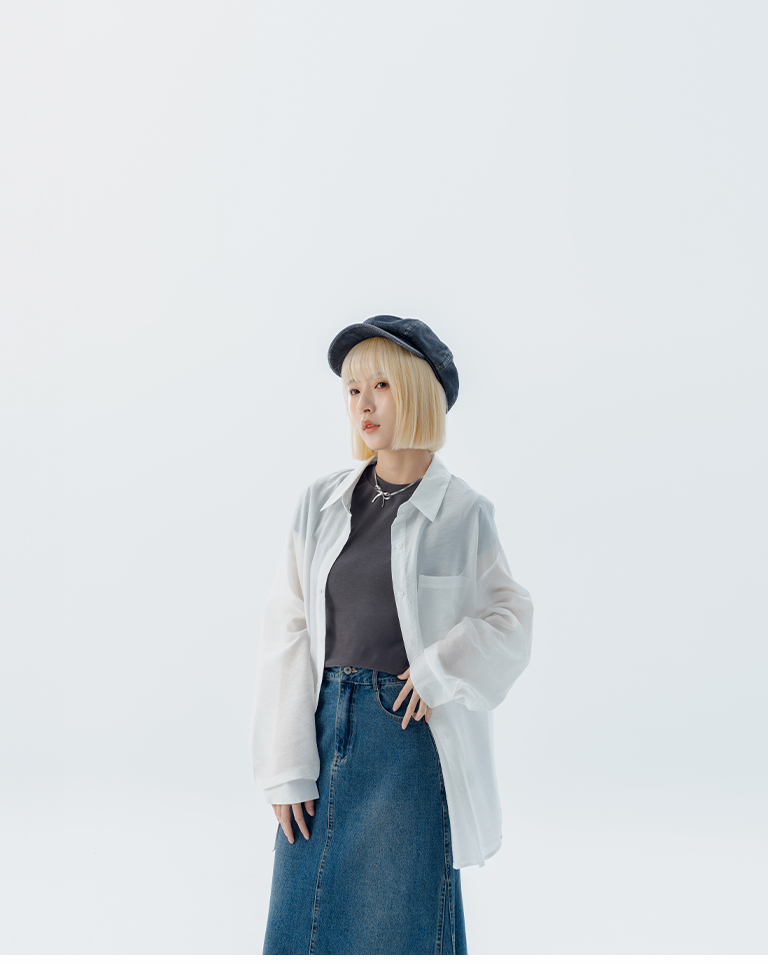 S~L身形實測!分尺寸皺皺木耳邊透膚高領長袖上衣