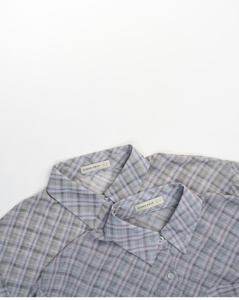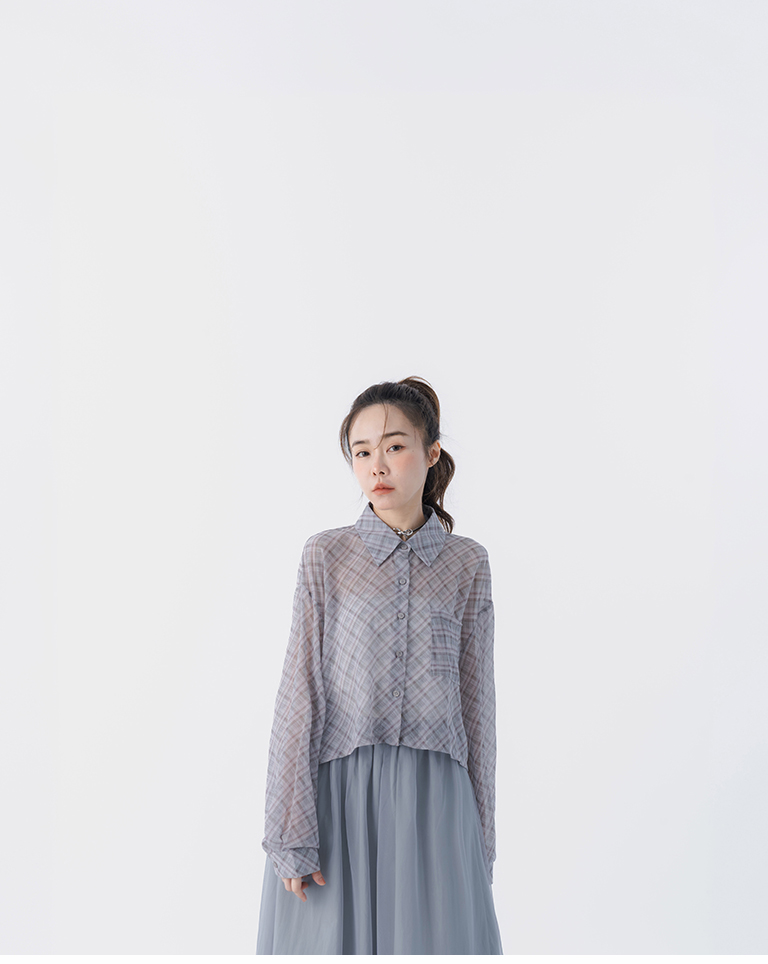 格紋透膚長袖短版襯衫 兩色售