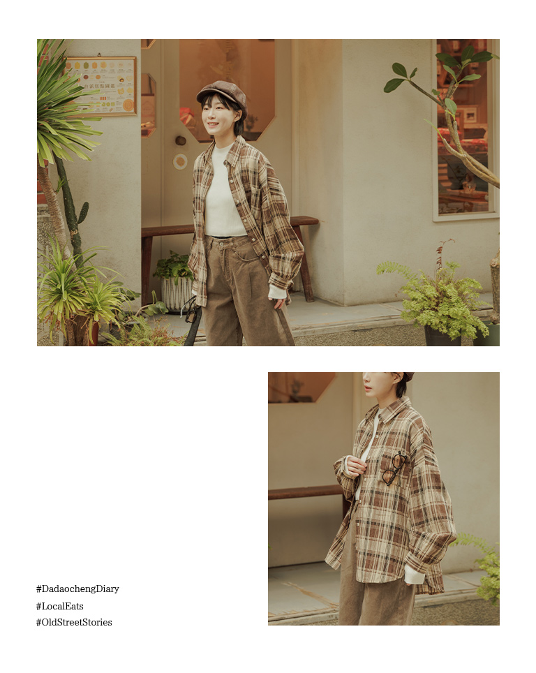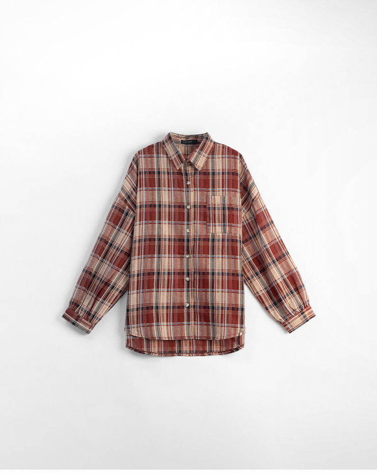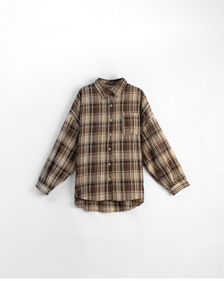 經典配色格紋寬版長袖襯衫
