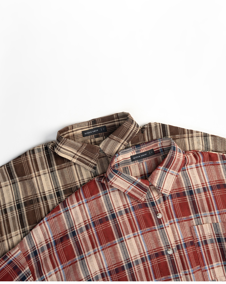 經典配色格紋寬版長袖襯衫 兩色售