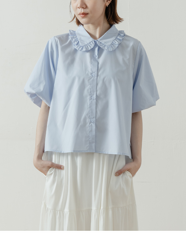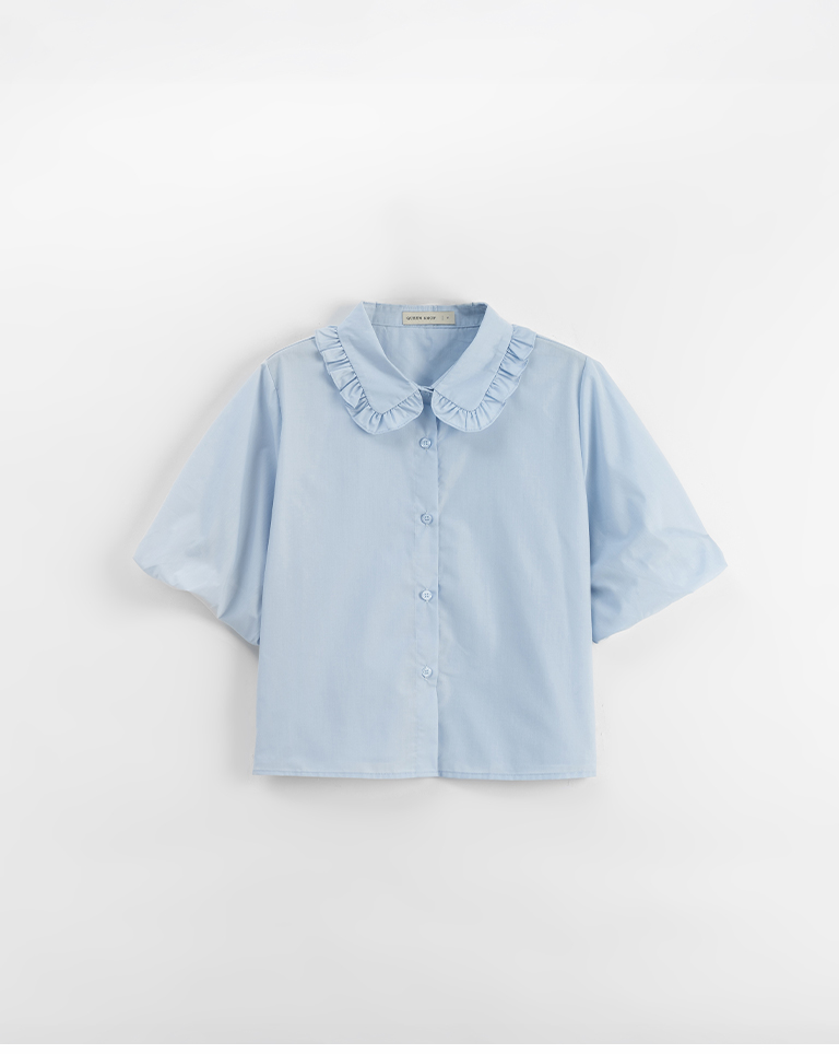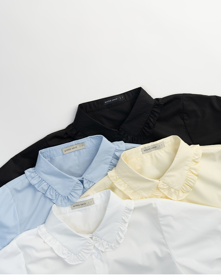 S~L身形實測!分尺寸皺皺木耳邊透膚高領長袖上衣