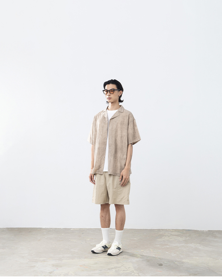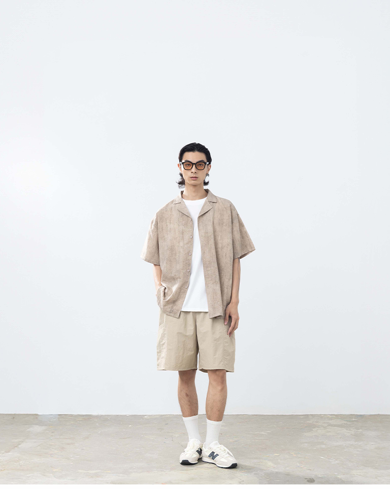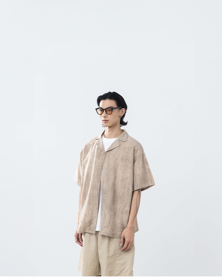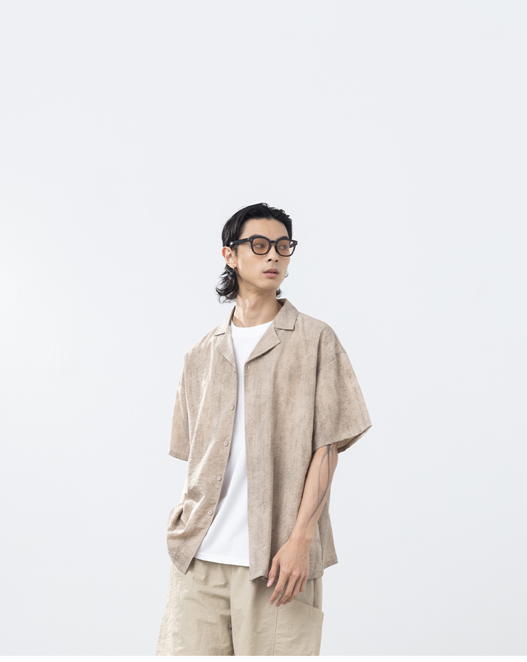男裝 古巴領暈染設計短袖襯衫-卡其S/M/L/XL