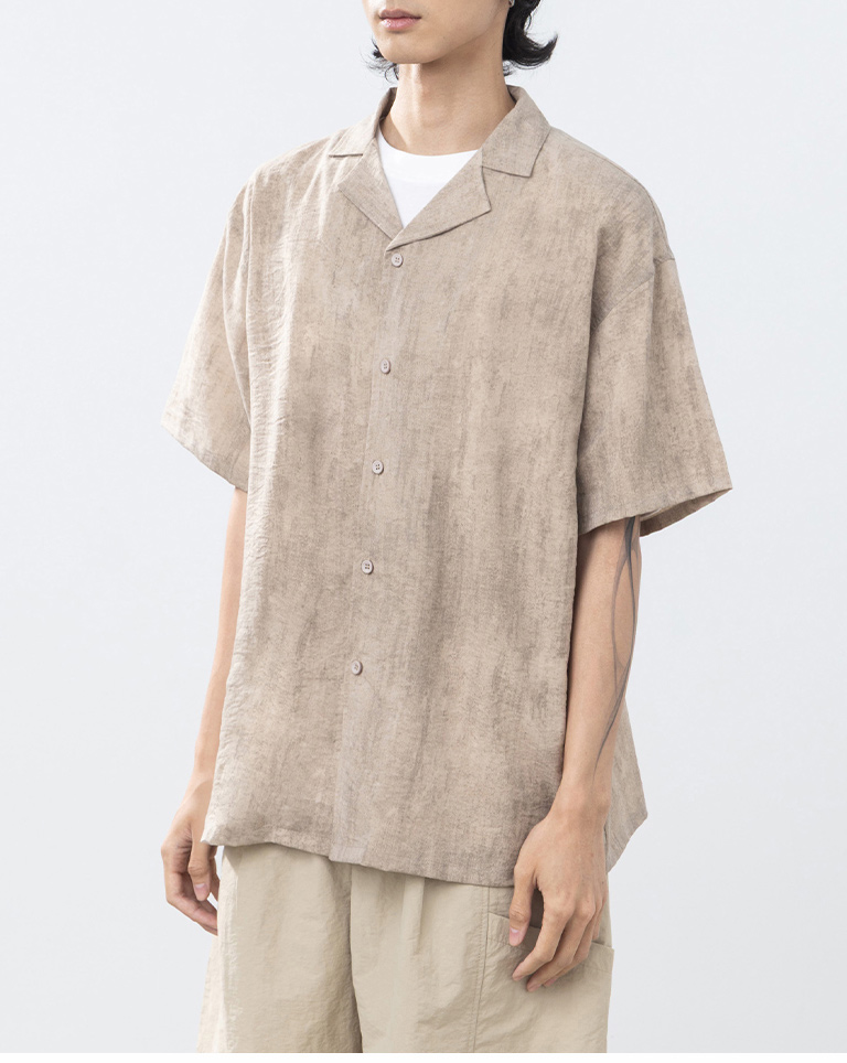 男裝 古巴領暈染設計短袖襯衫