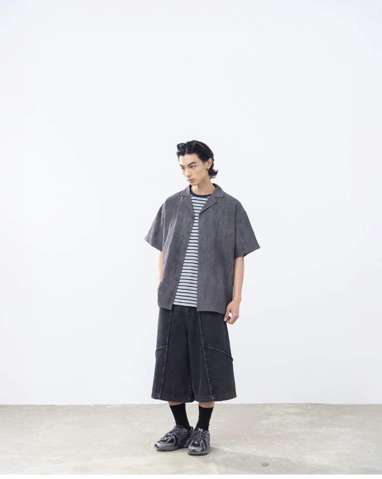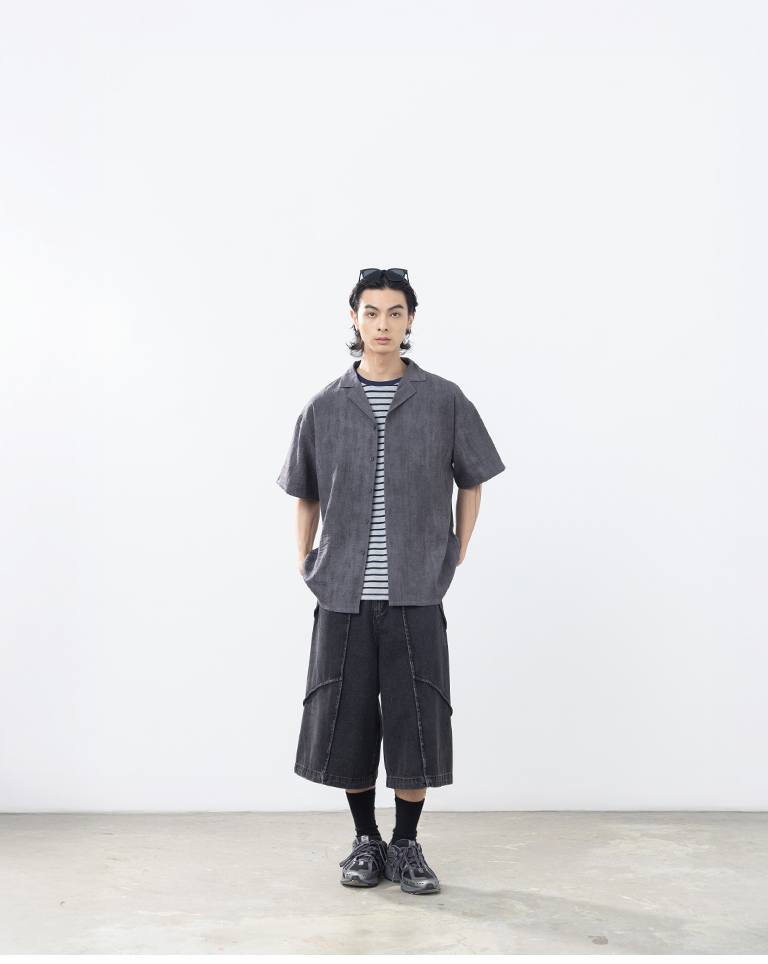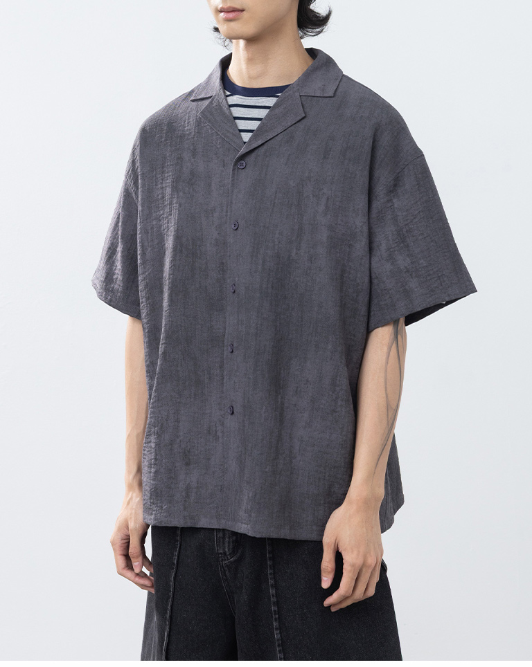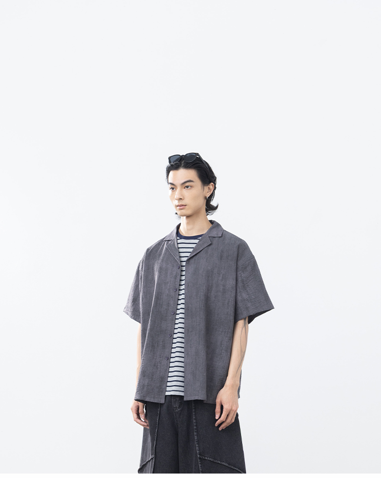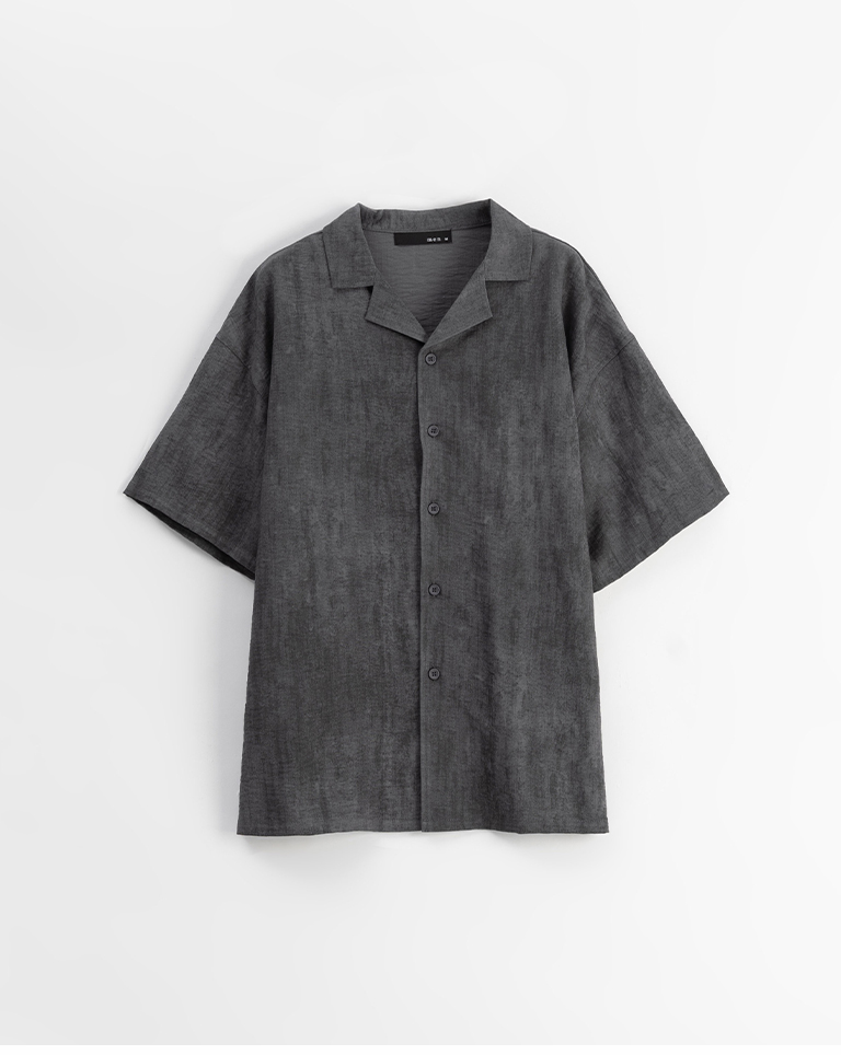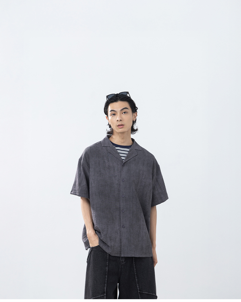 男裝 古巴領暈染設計短袖襯衫-灰S/M/L/XL