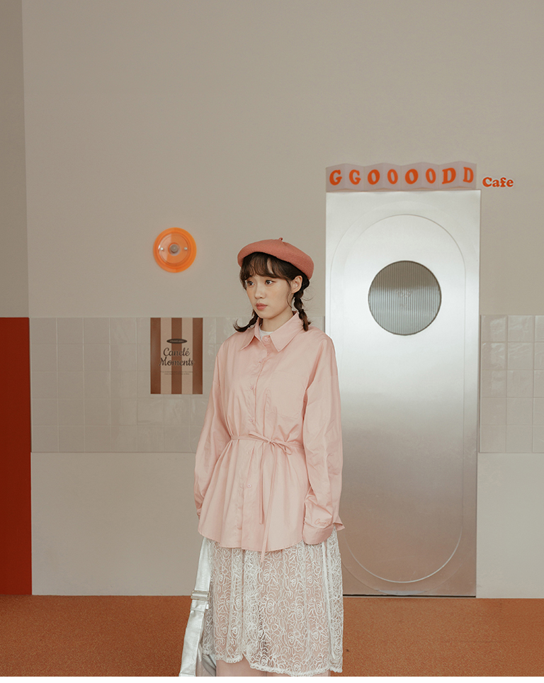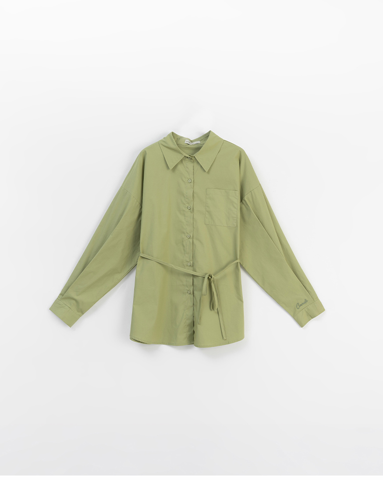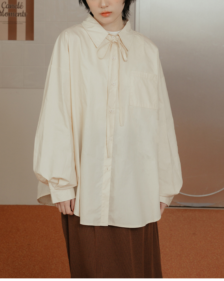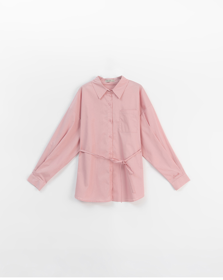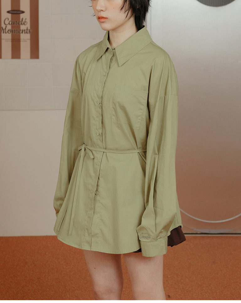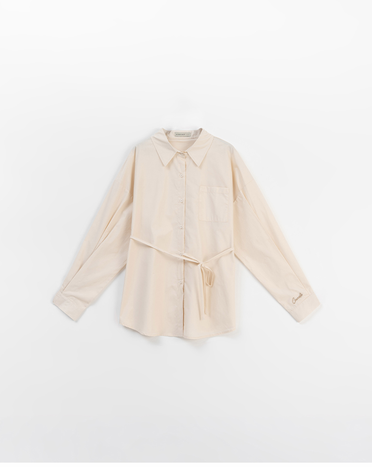Canele刺繡設計寬版長袖襯衫附綁帶 三色售