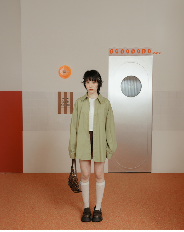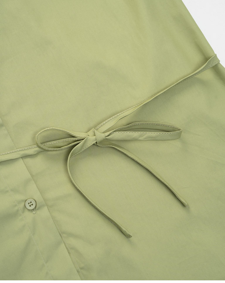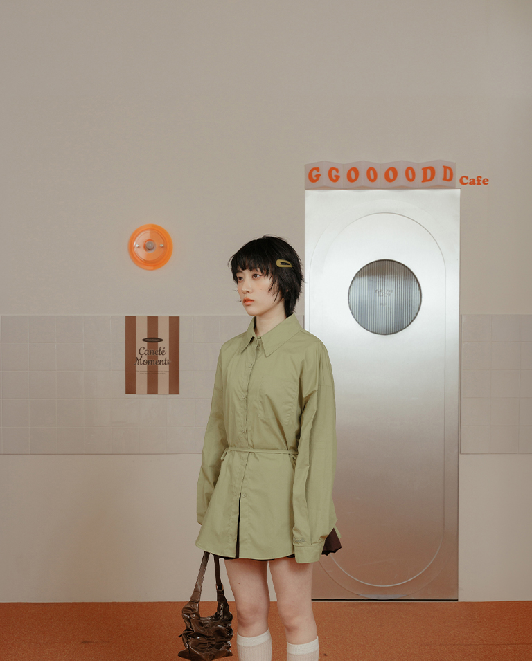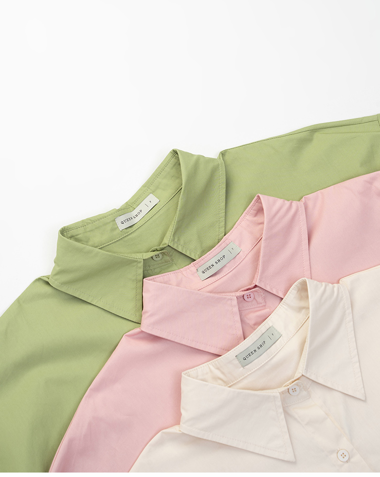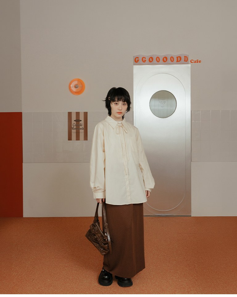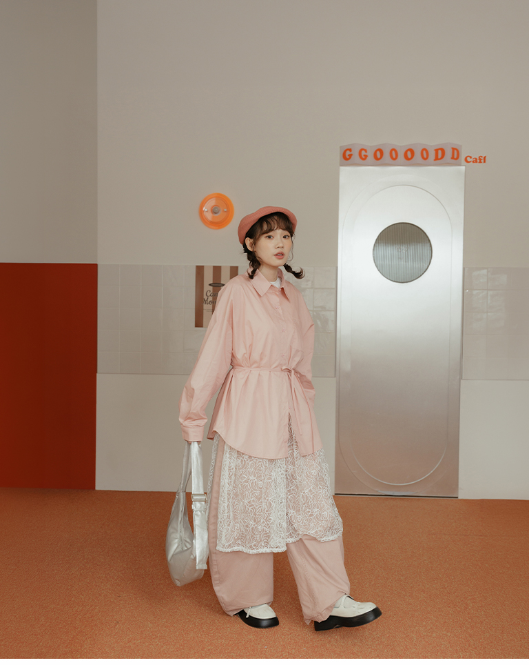Canele刺繡設計寬版長袖襯衫附綁帶 三色售