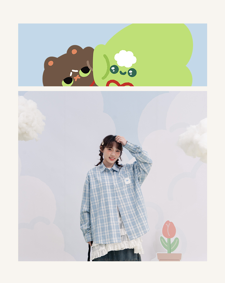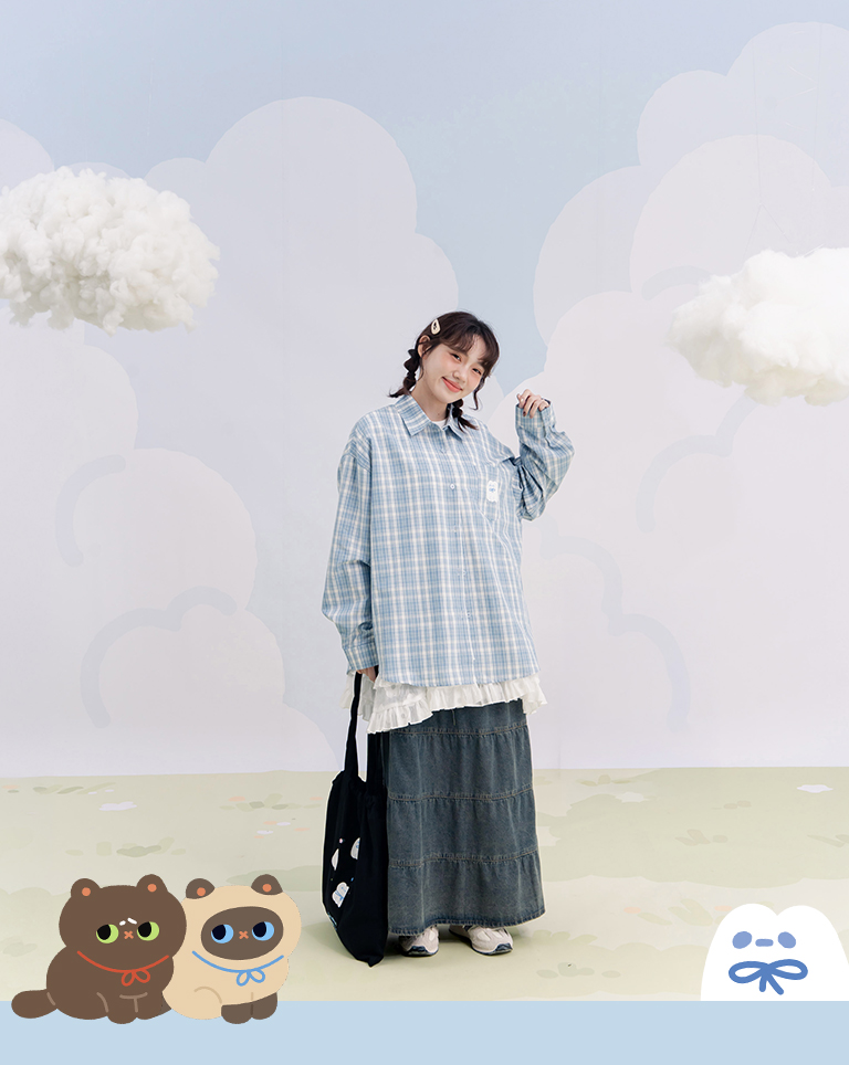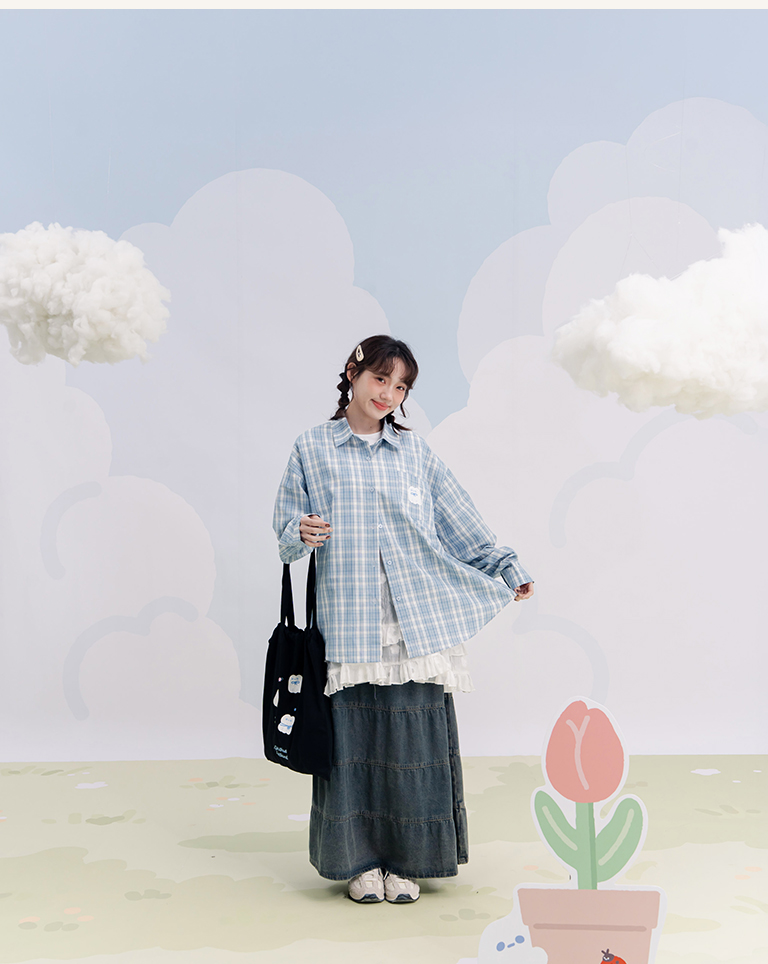 阿說不想說 SNUGGLE刺繡格紋長袖襯衫