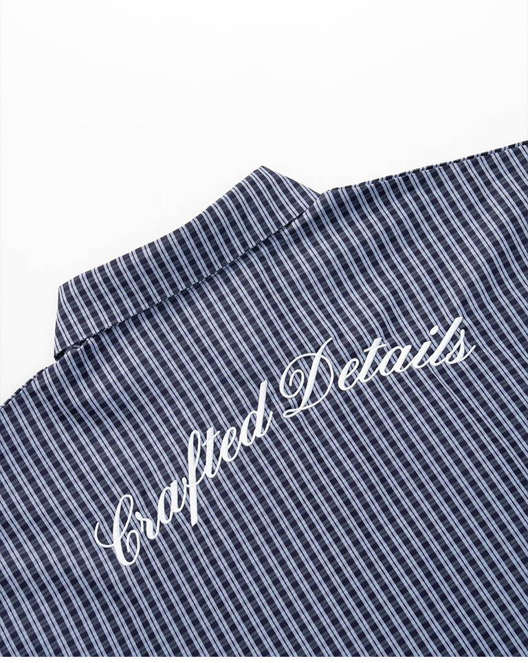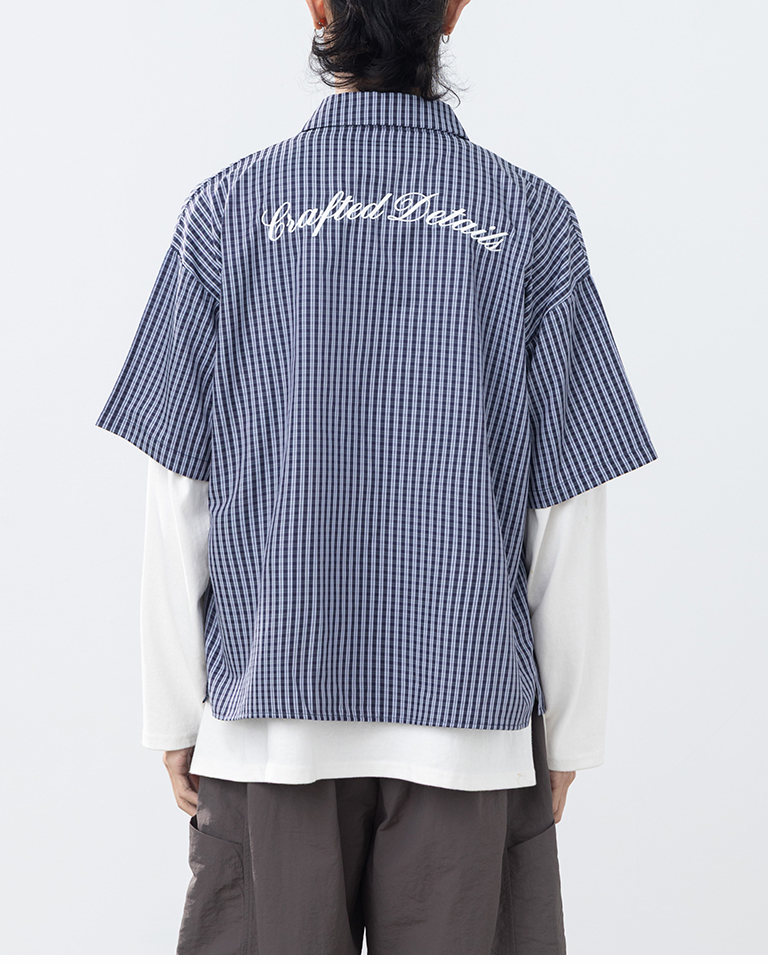 男裝 經典格紋刺繡字短袖襯衫